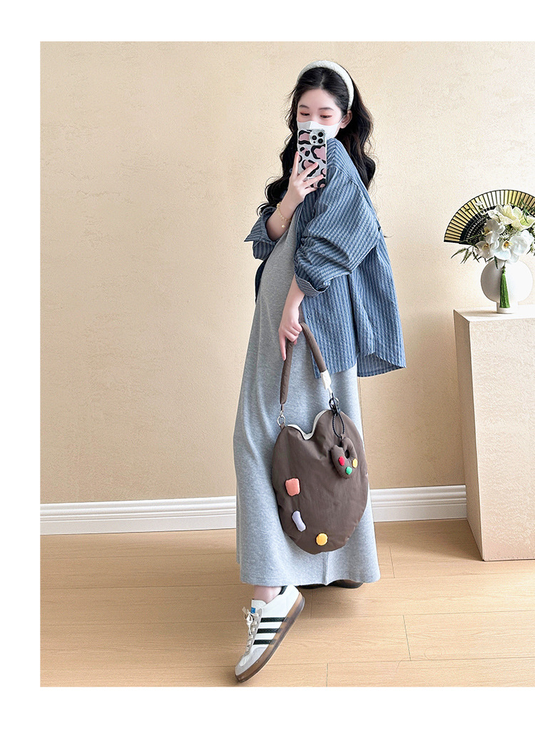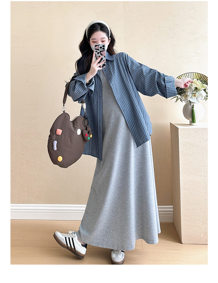 Модное раннее осеннее новое платье для беременных, корейская версия, простое свободное повседневное базовое платье-майка + модная полосатая куртка-рубашка
