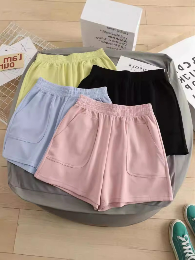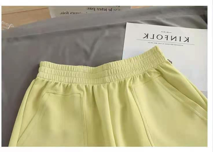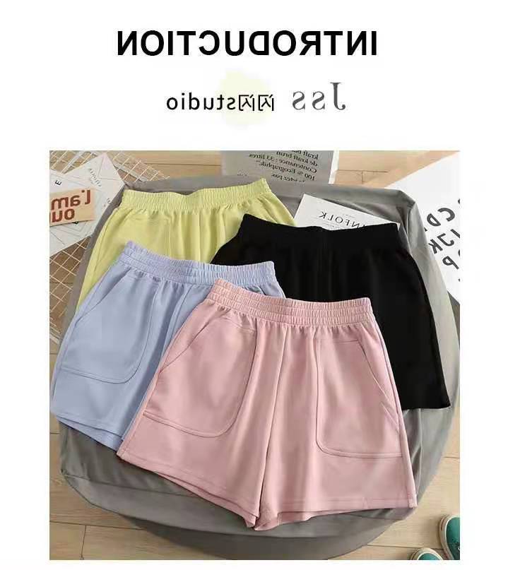 Летние тонкие корейские спортивные шорты женские с высокой талией, свободные, тонкие широкие брюки, трехочковые брюки с хлопчатобумажными повседневными брюками