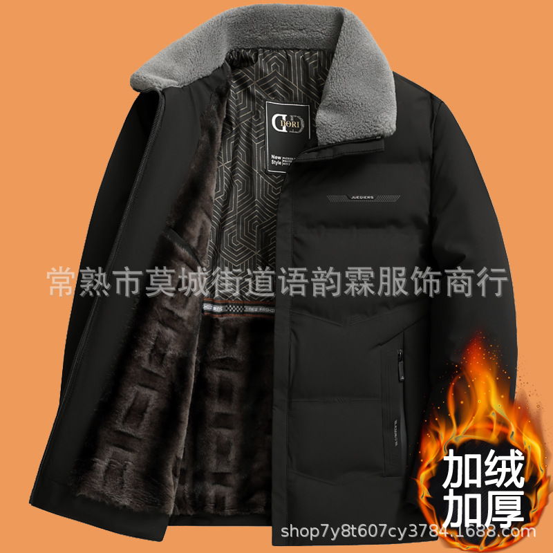 Папа с бархатом и утолщением хлопчатобумажная зимняя мужская короткая теплая куртка среднего и пожилого возраста лацкана повседневная новая хлопчатобумажная одежда