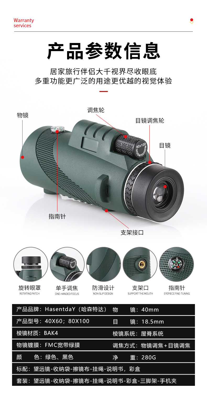 Трансграничная оптовая продажа монокуляра 80 × 100 высокой высокой четкости микро-ночного видения можно сфотографировать портативные очки