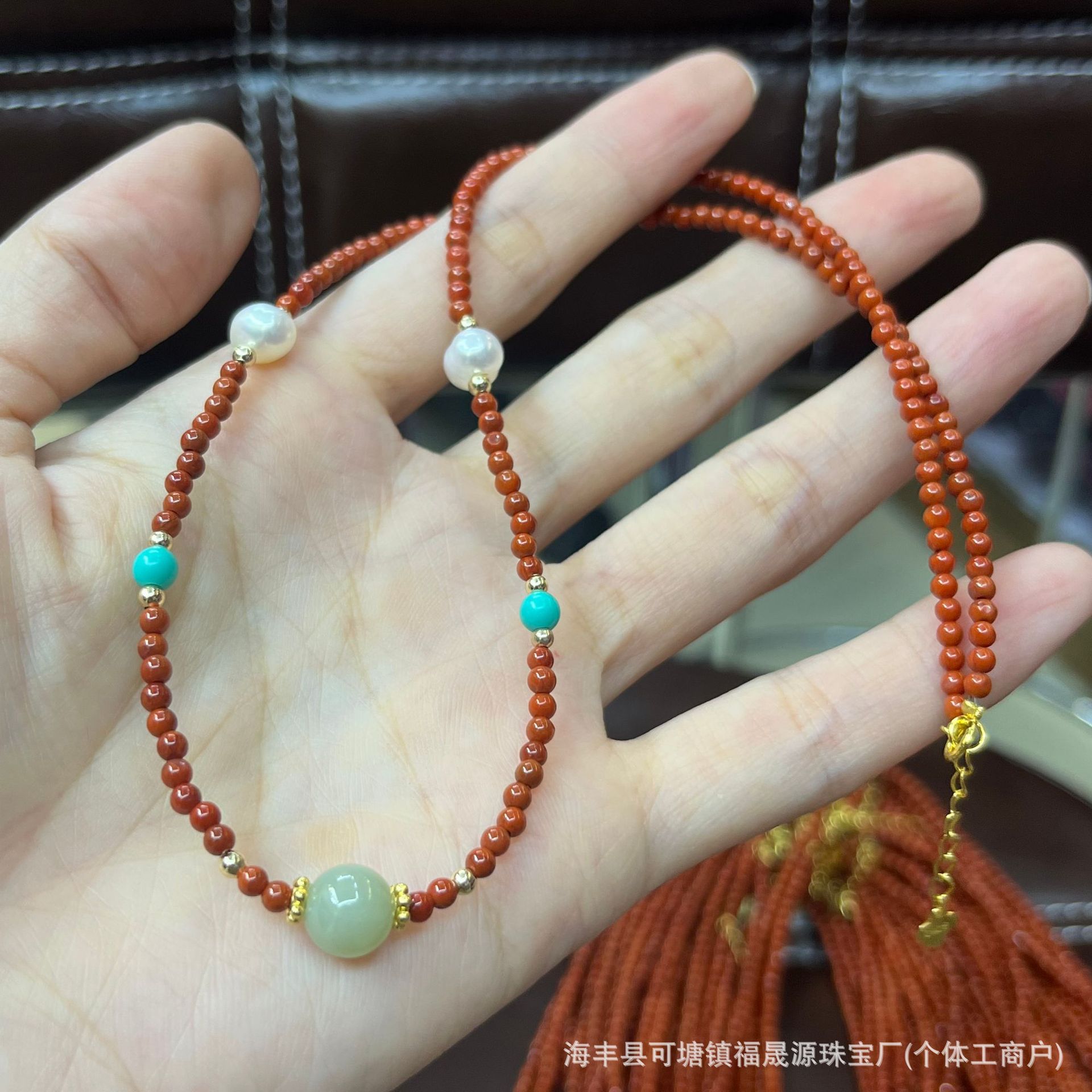 原创设计天然保山南红玛瑙项链单珠和田玉珍珠锁骨链夏天直播福利 批发量越大价格越低,可供直播间长期合作,欢迎来电私聊