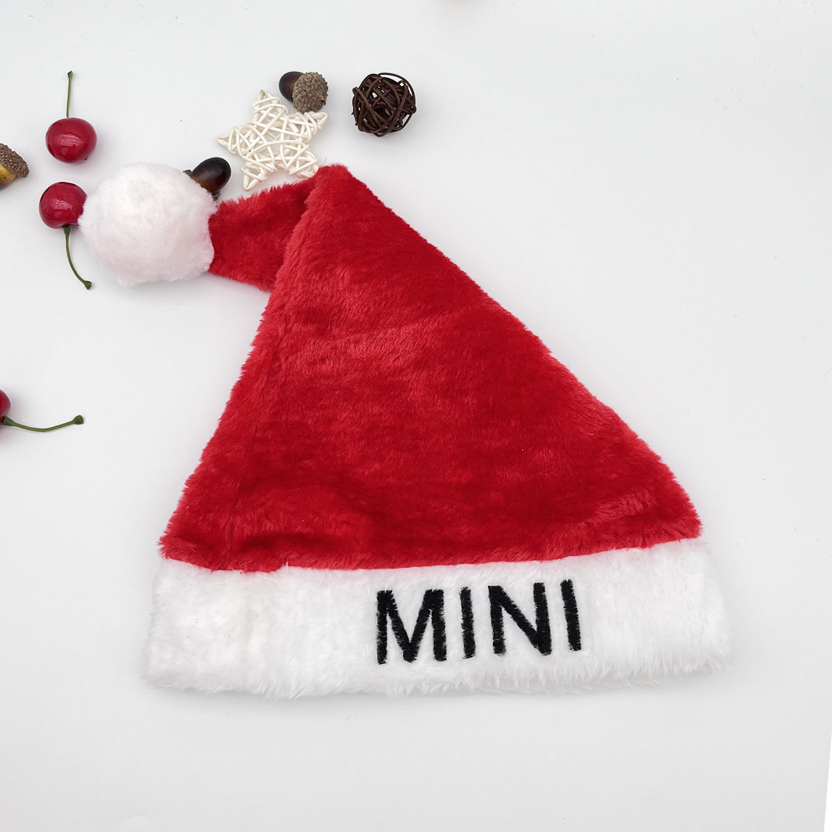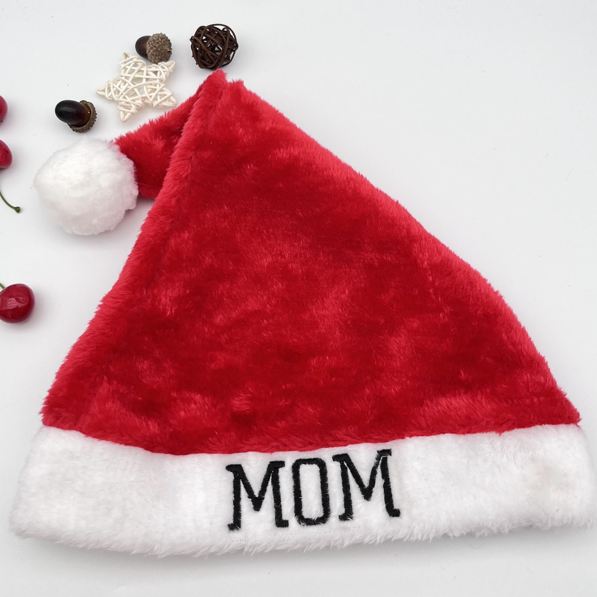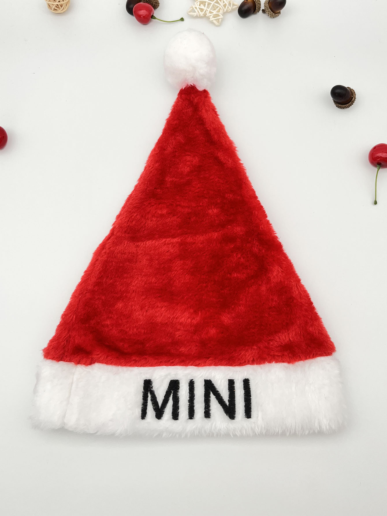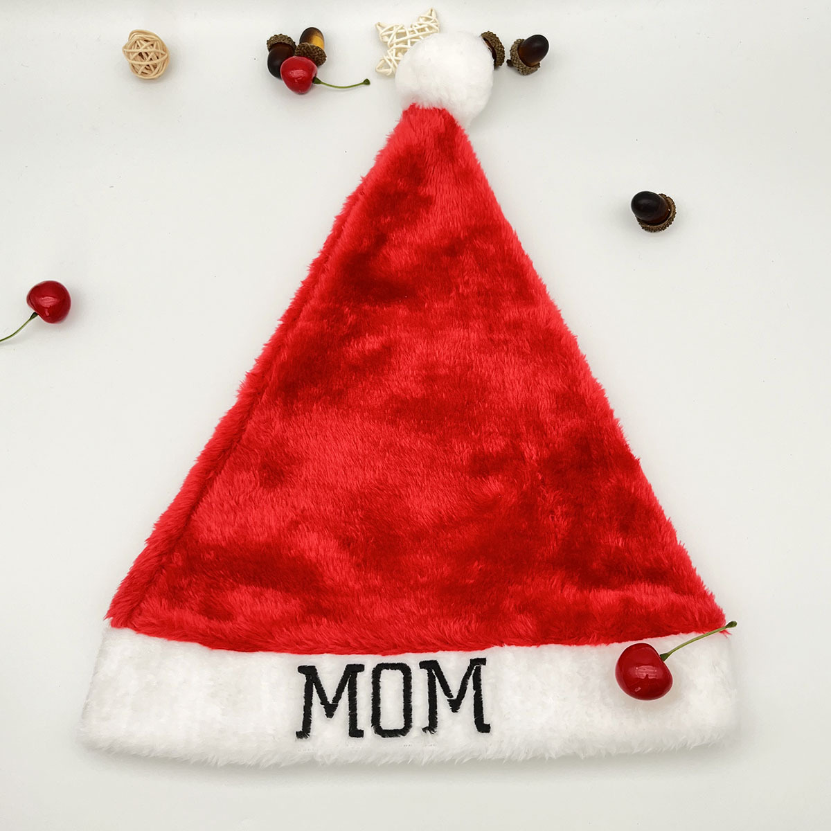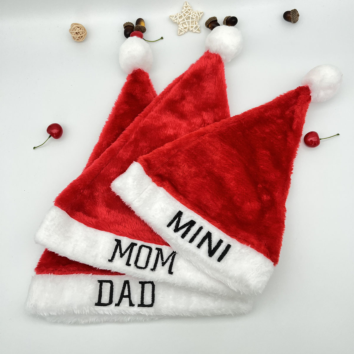 Популярная трансграничная новогодняя шапка TEMU с вышивкой, утепленная флисом, из плотного короткого плюша, для взрослых и детей.