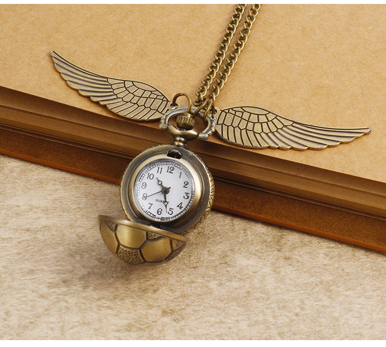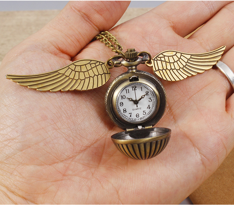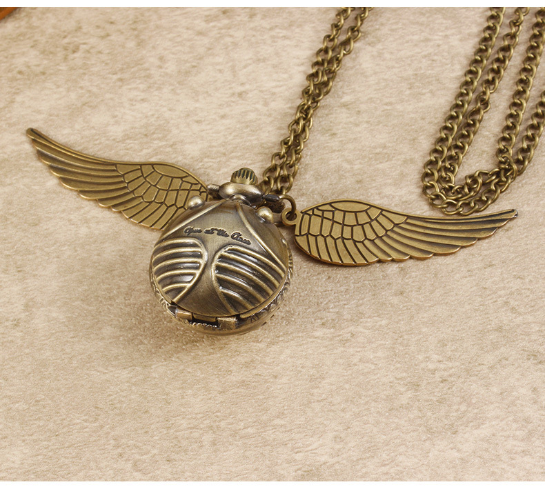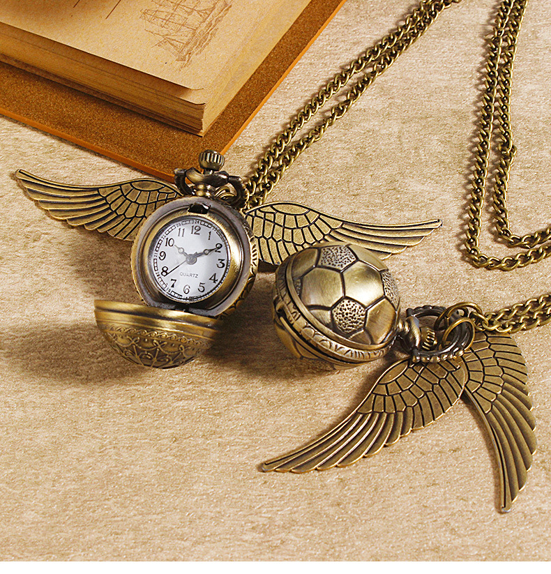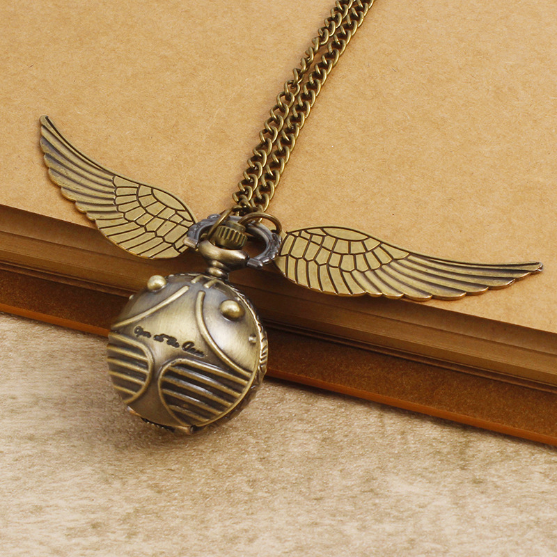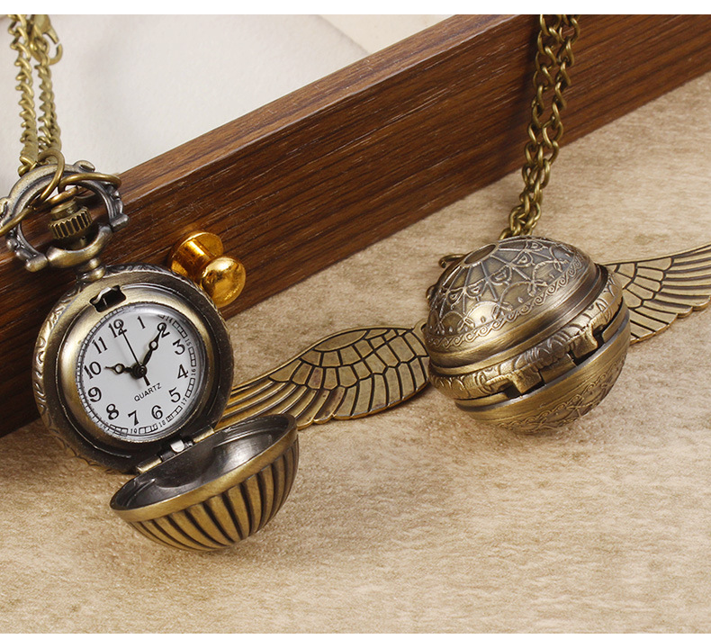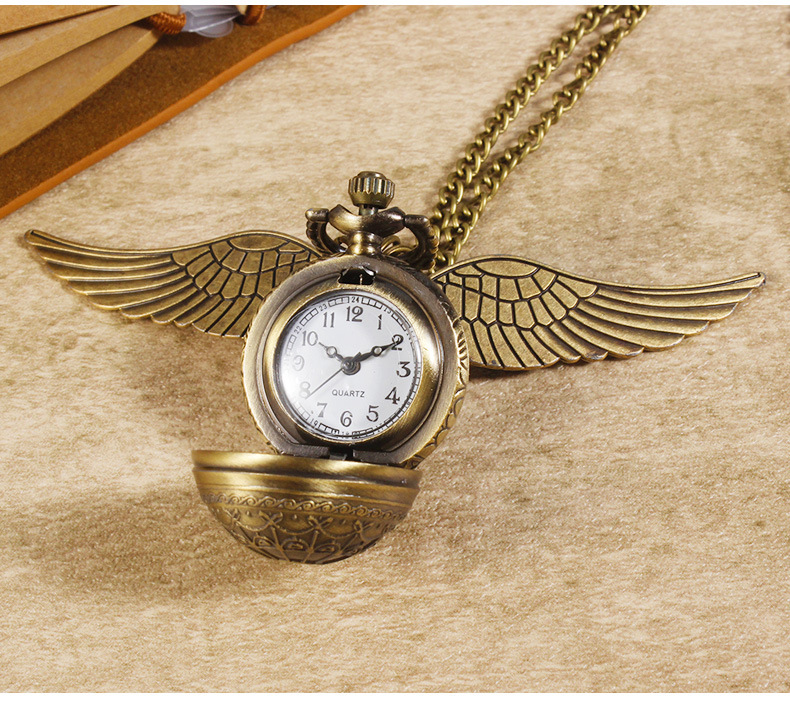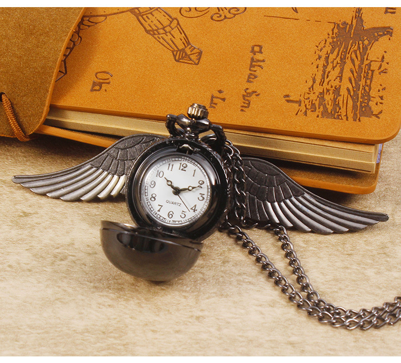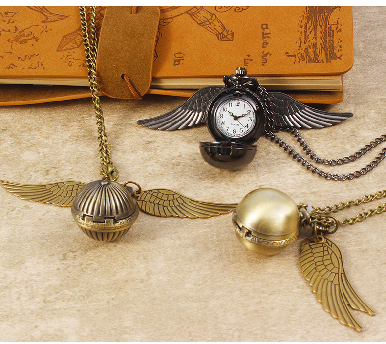 Гарри Поттер периферийные карманные часы Золотой летающий шарик ретро ожерелье часы раскройте большие крылья подвески памятные часы