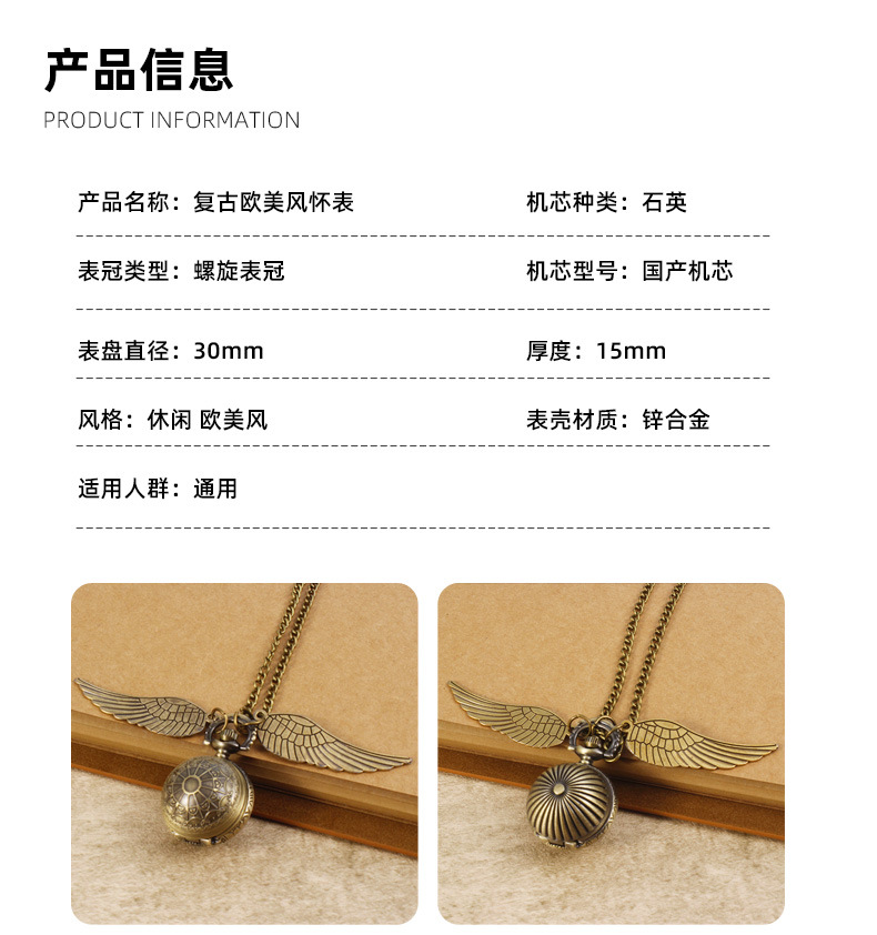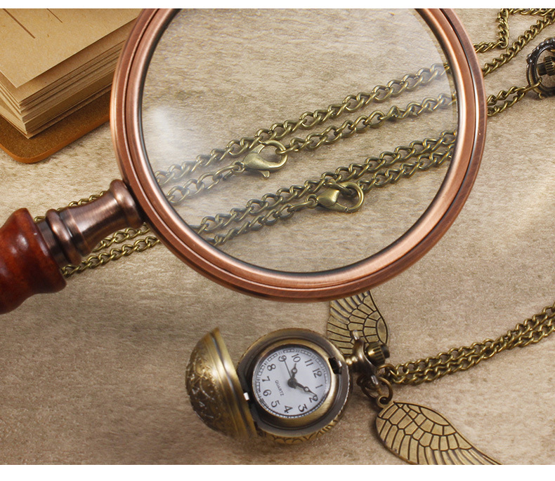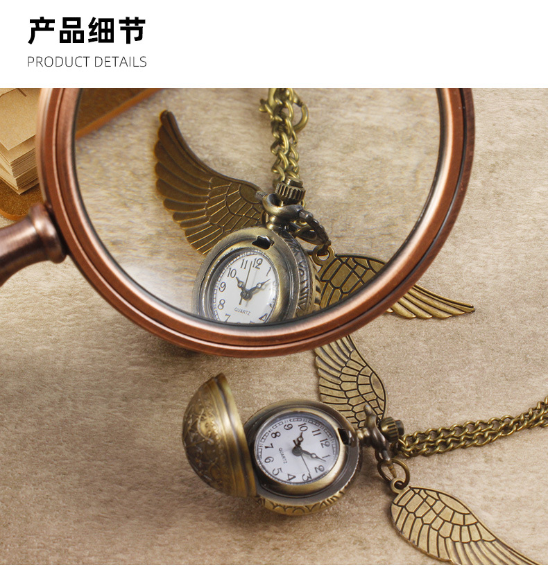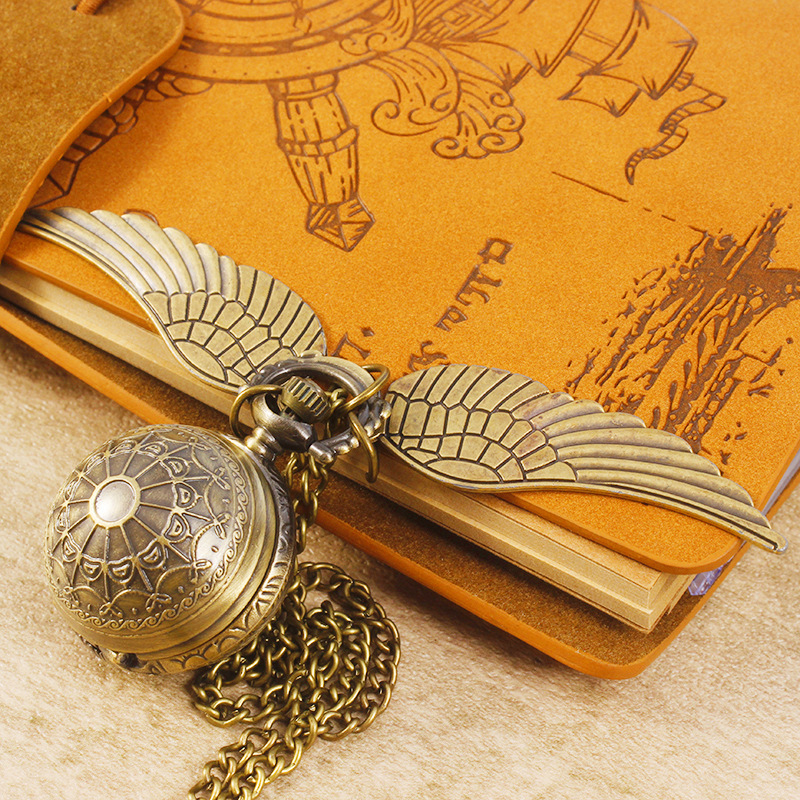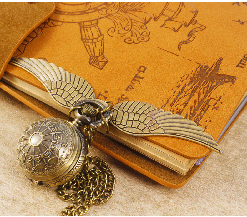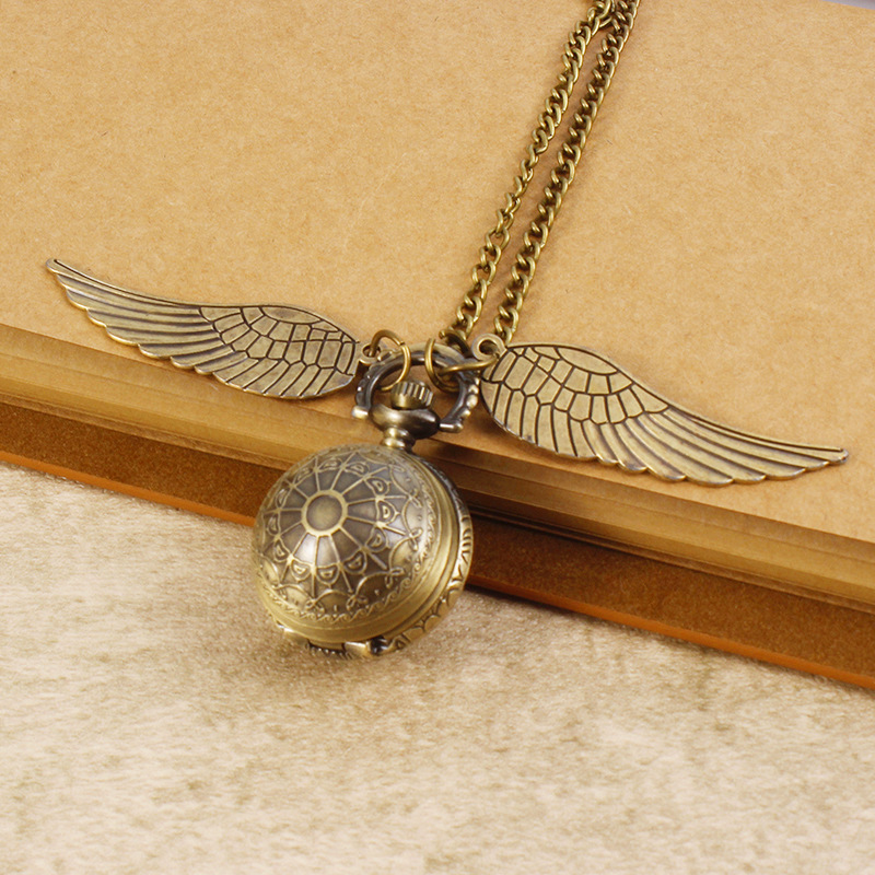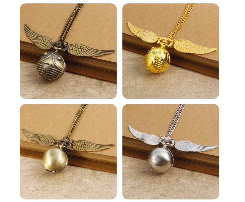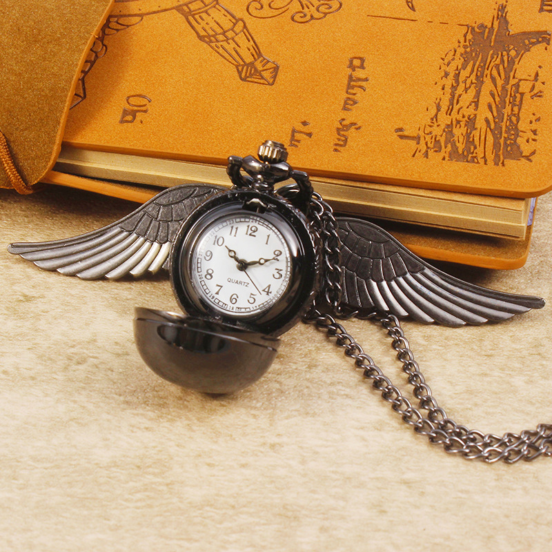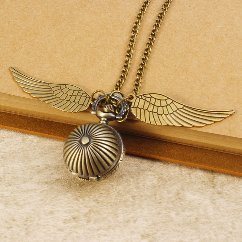 Гарри Поттер периферийные карманные часы Золотой летающий шарик ретро ожерелье часы раскройте большие крылья подвески памятные часы