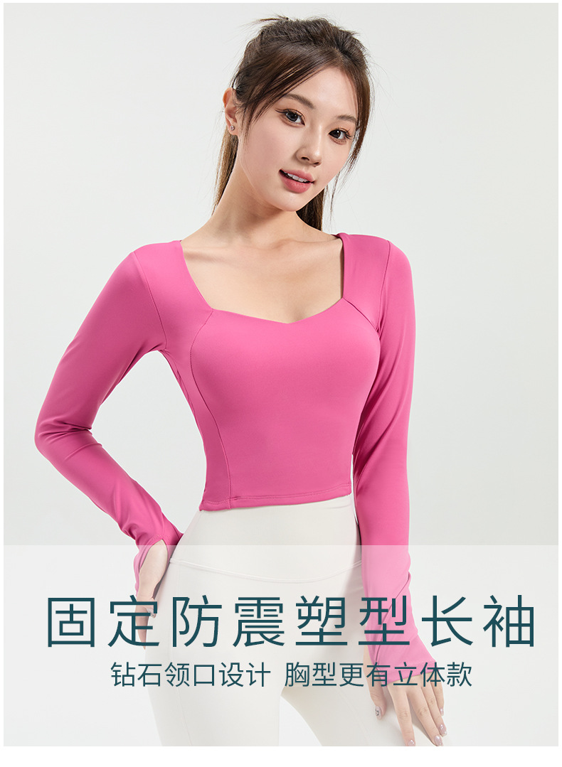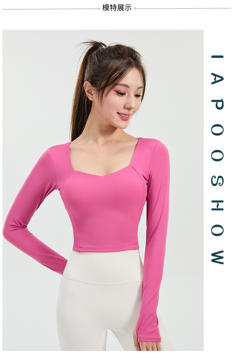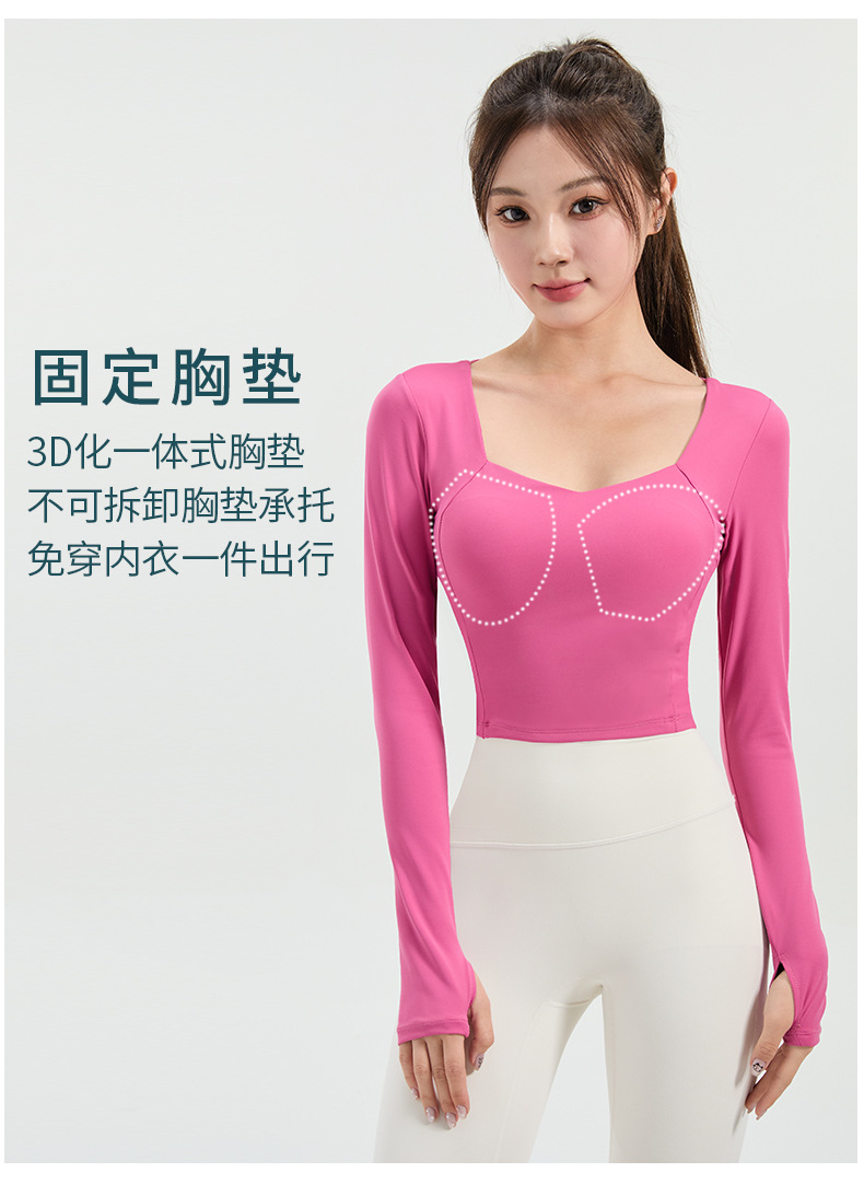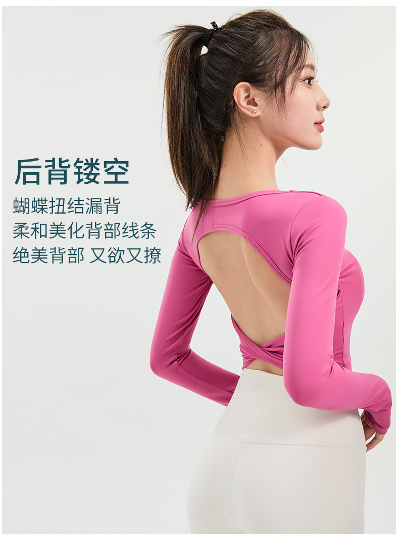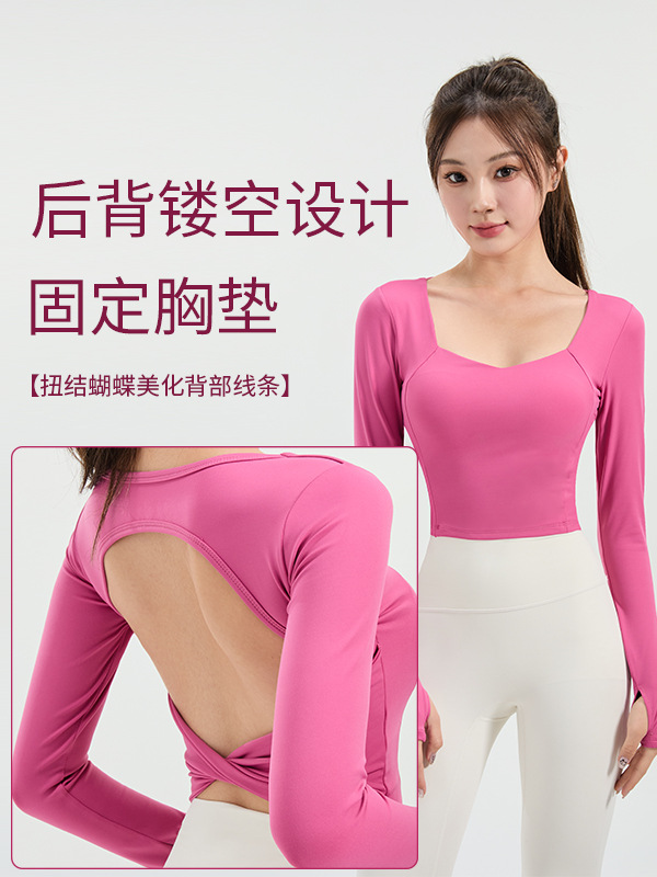 Задняя полая йога топ женский фиксированный нагрудный коврик для фитнеса с длинными рукавами тонкая быстрая тренировочная одежда для осеннего пилатеса
