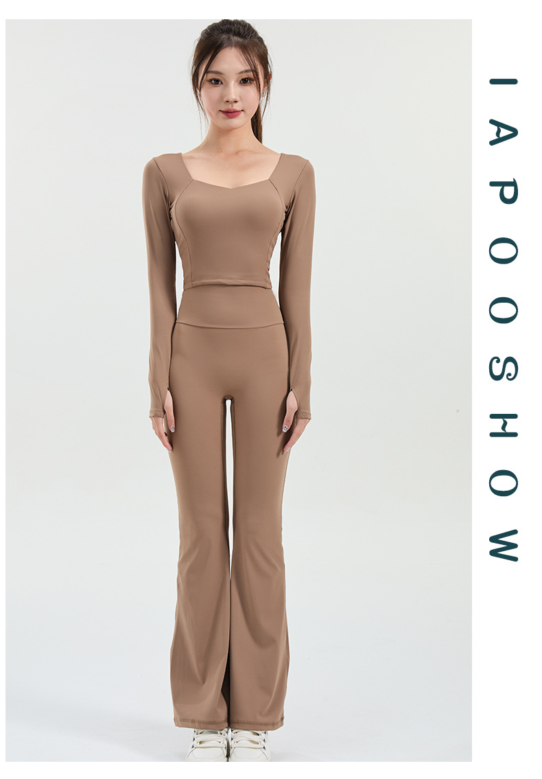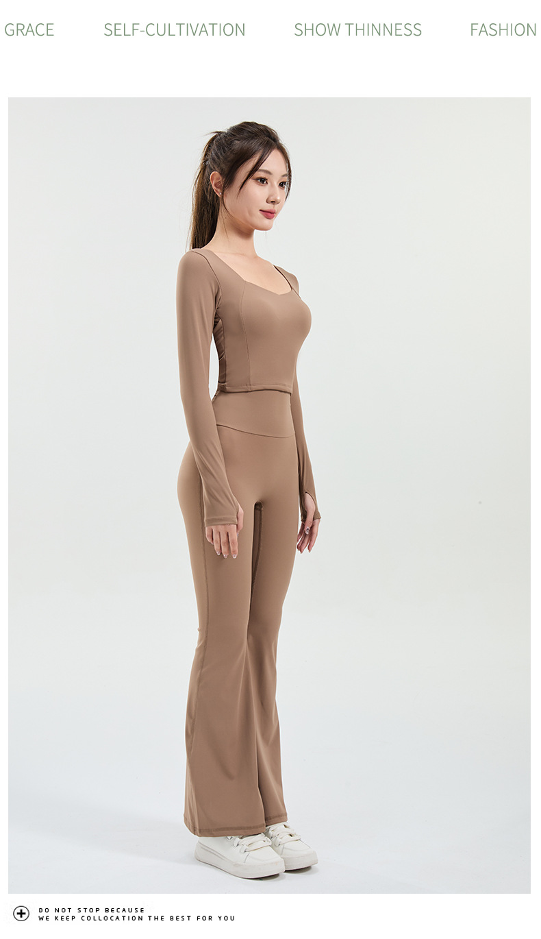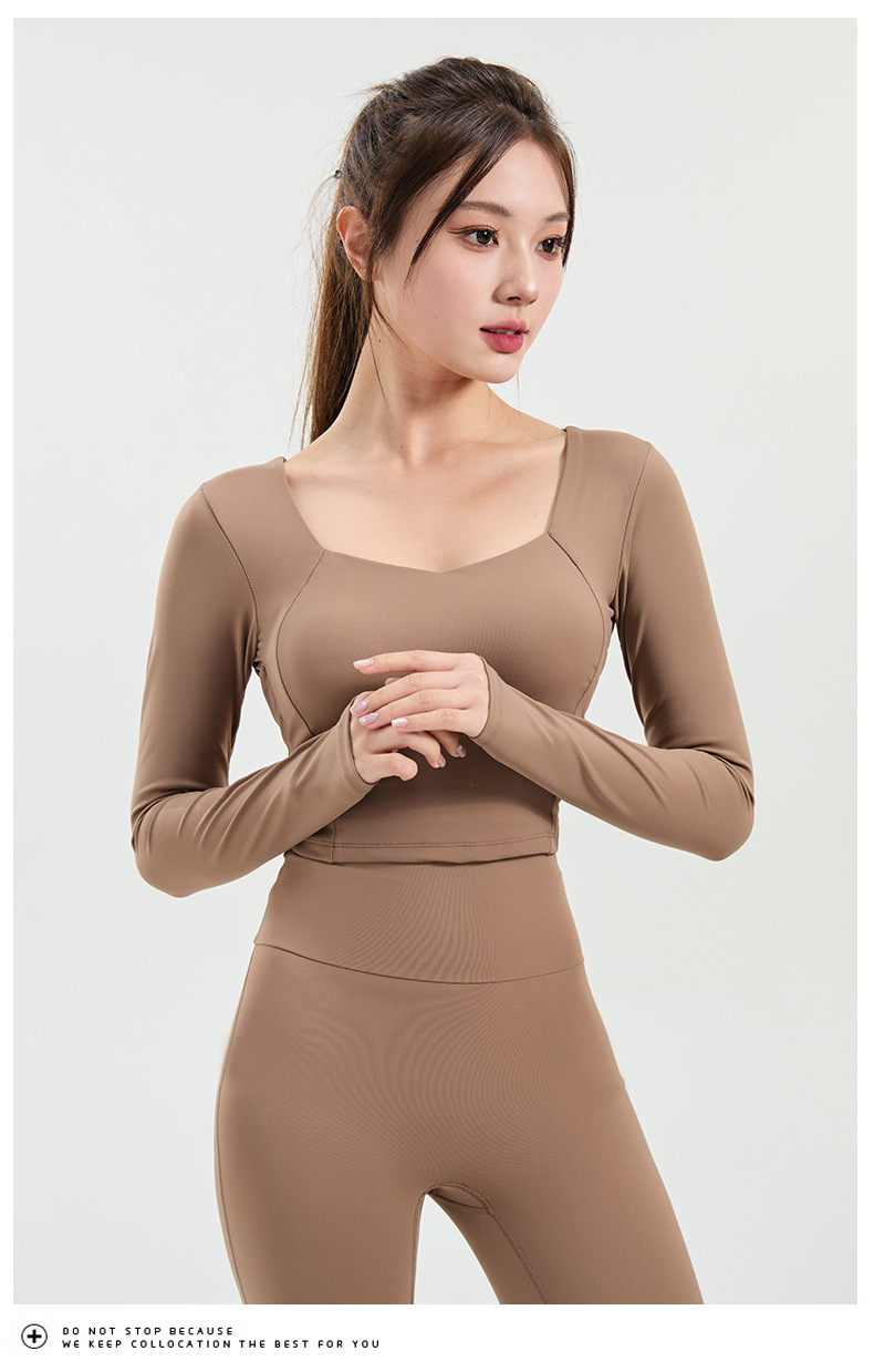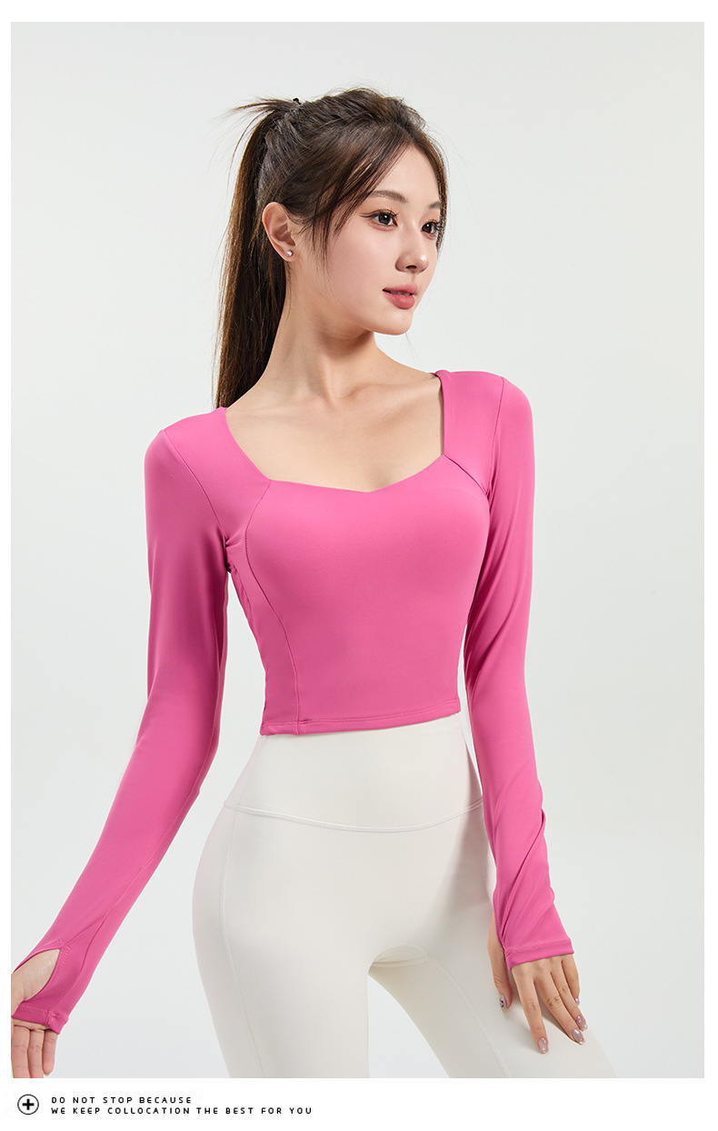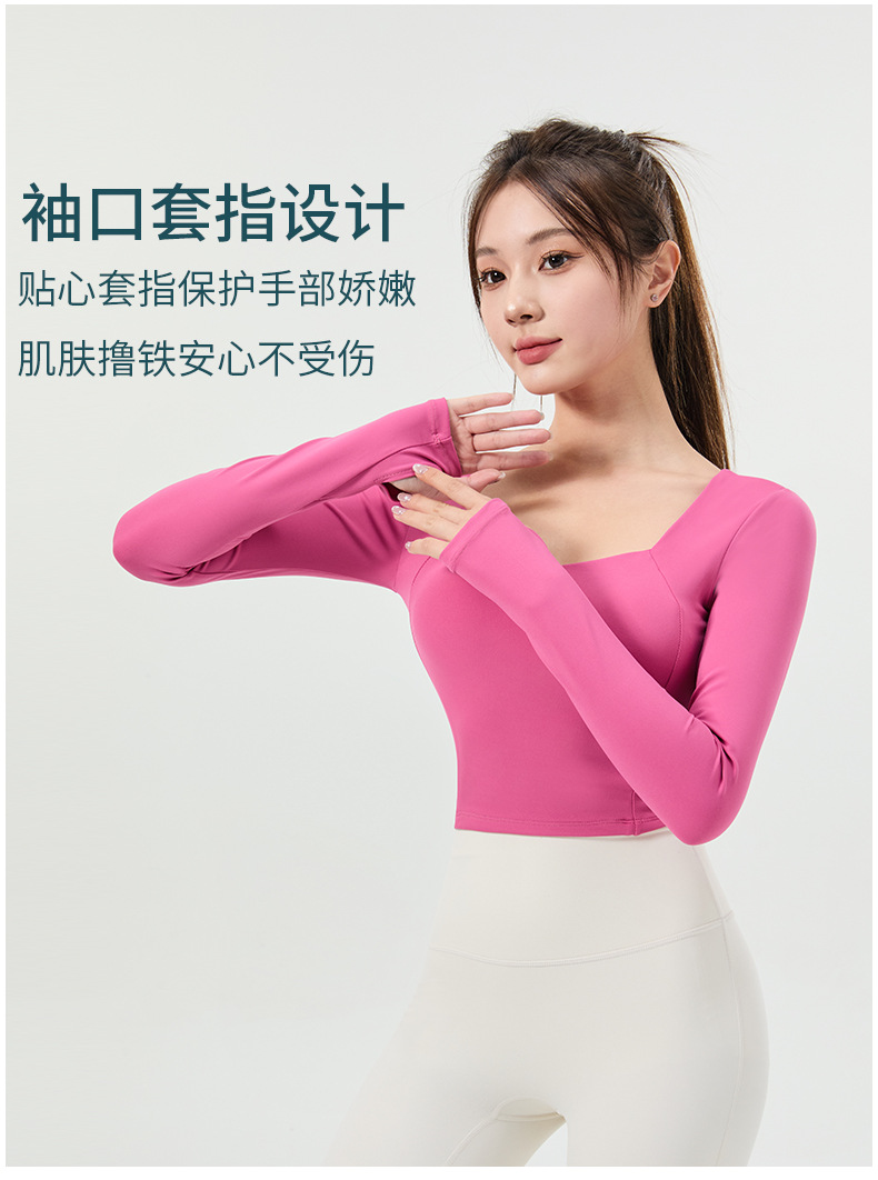 Задняя полая йога топ женский фиксированный нагрудный коврик для фитнеса с длинными рукавами тонкая быстрая тренировочная одежда для осеннего пилатеса