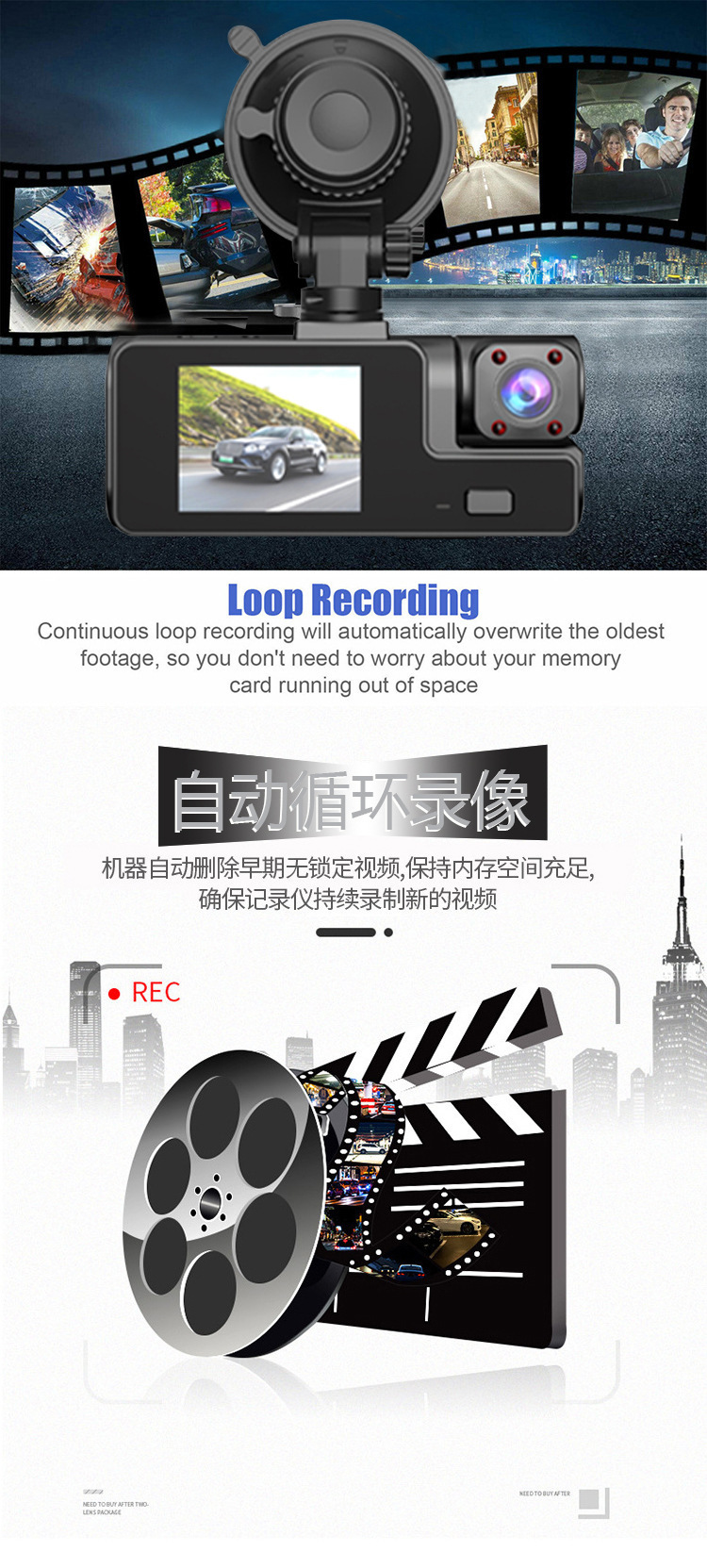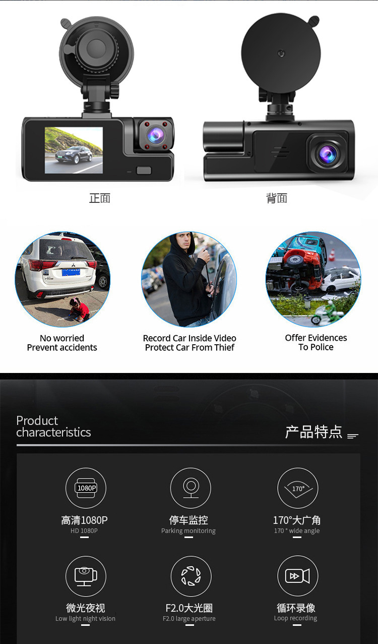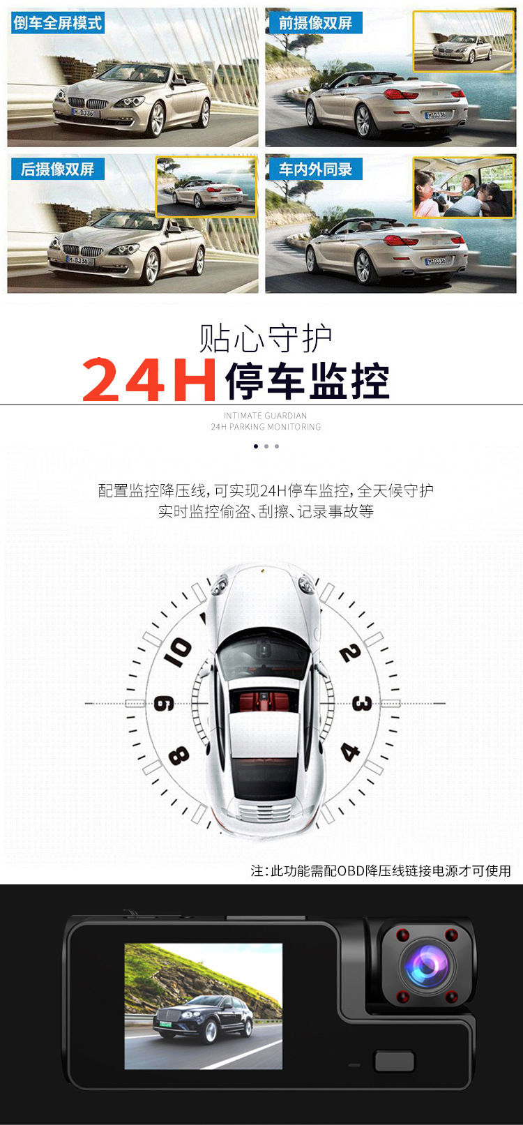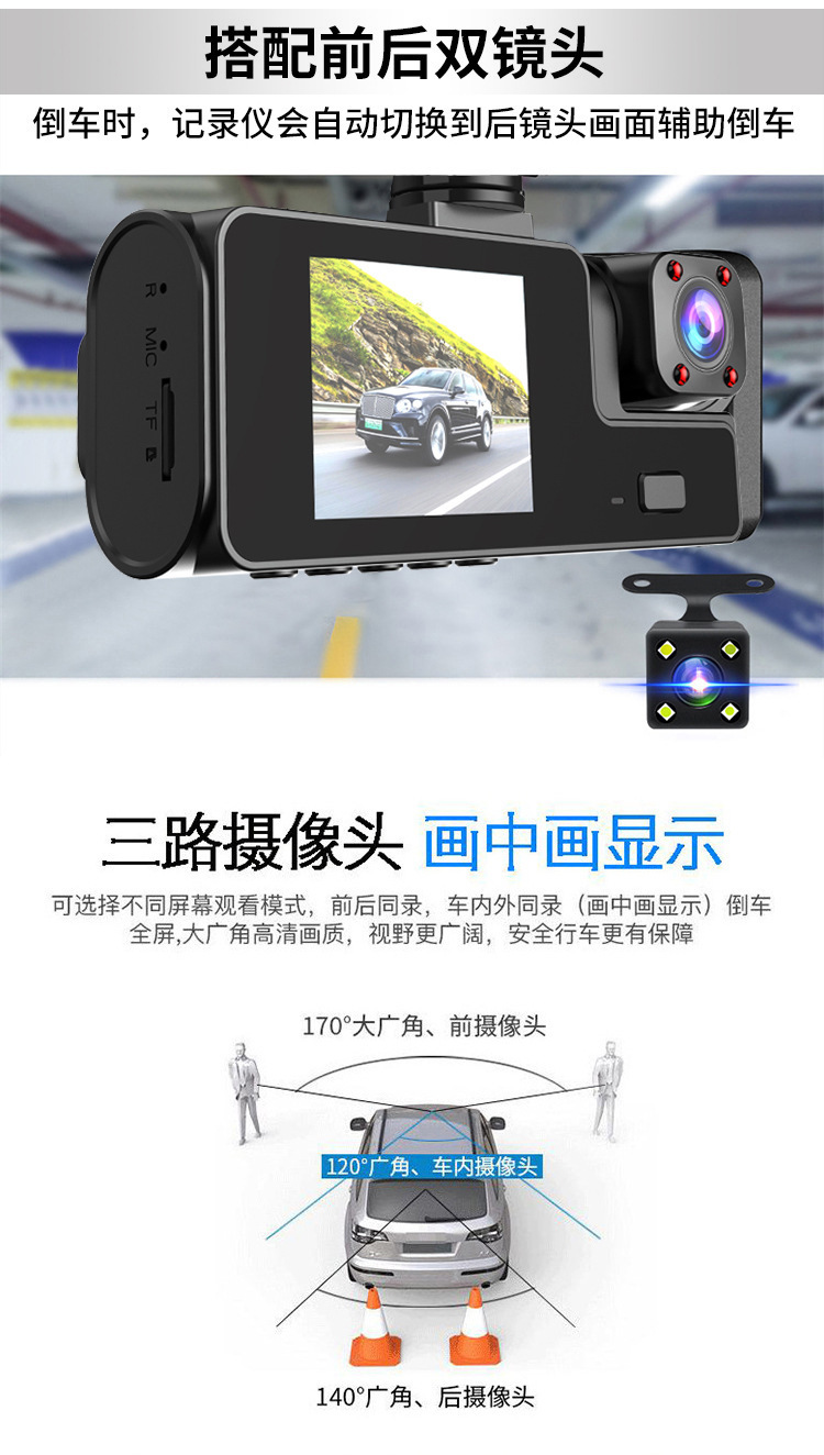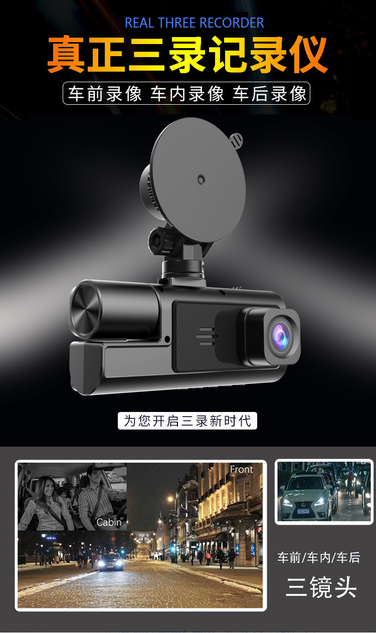 产品名称:wifi三录行车记录仪1080P大广角 三镜头倒车可视车前车内车后