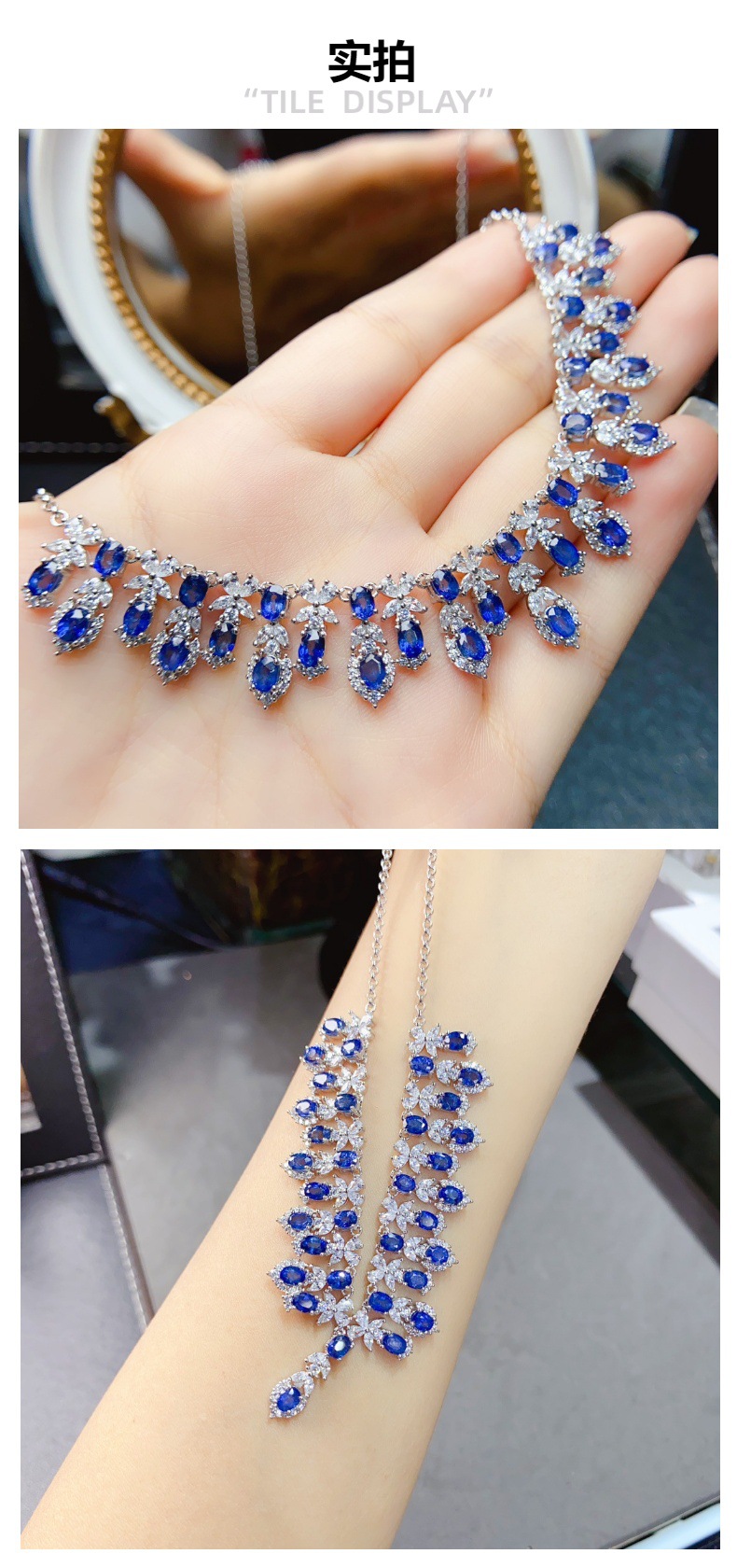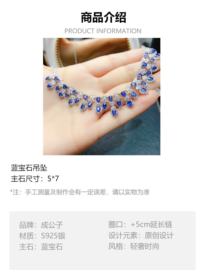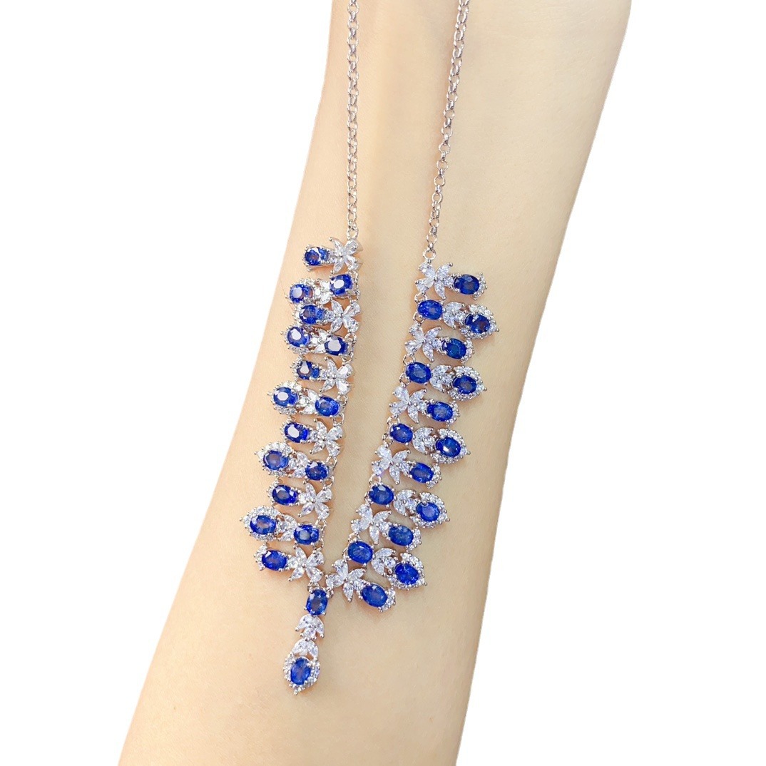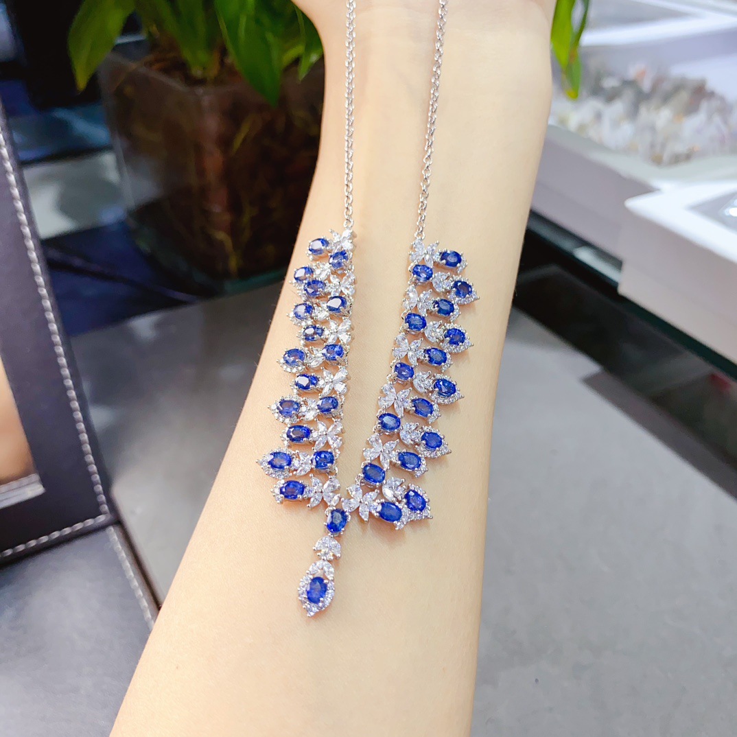 Заводская оптовая продажа натурального сапфирового ожерелья S925 Серебряная инкрустация основного камня 3*4 Горячие продажи в Европе и Америке