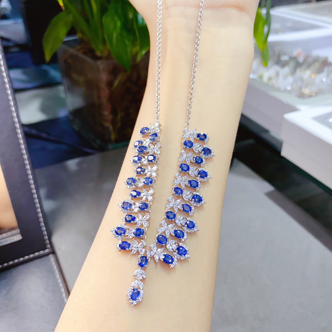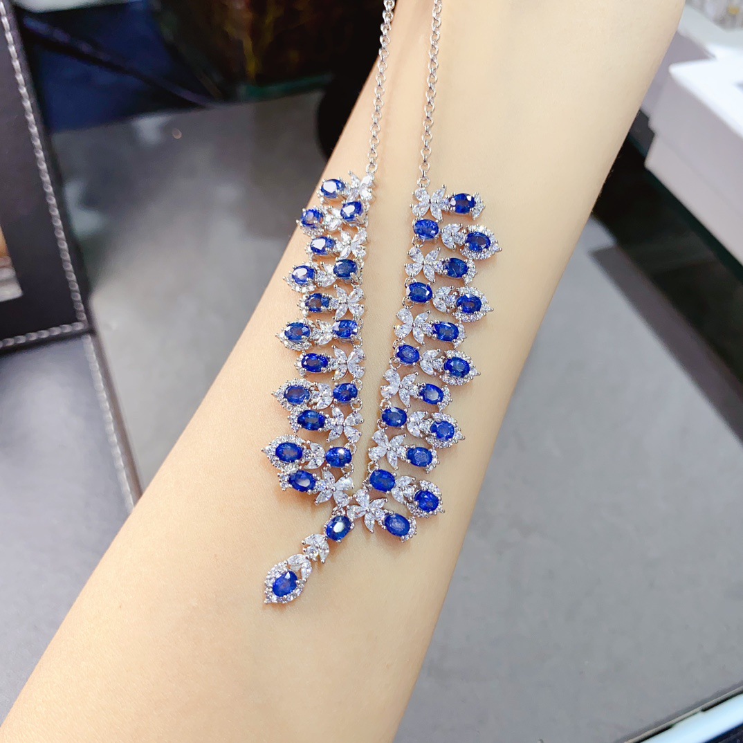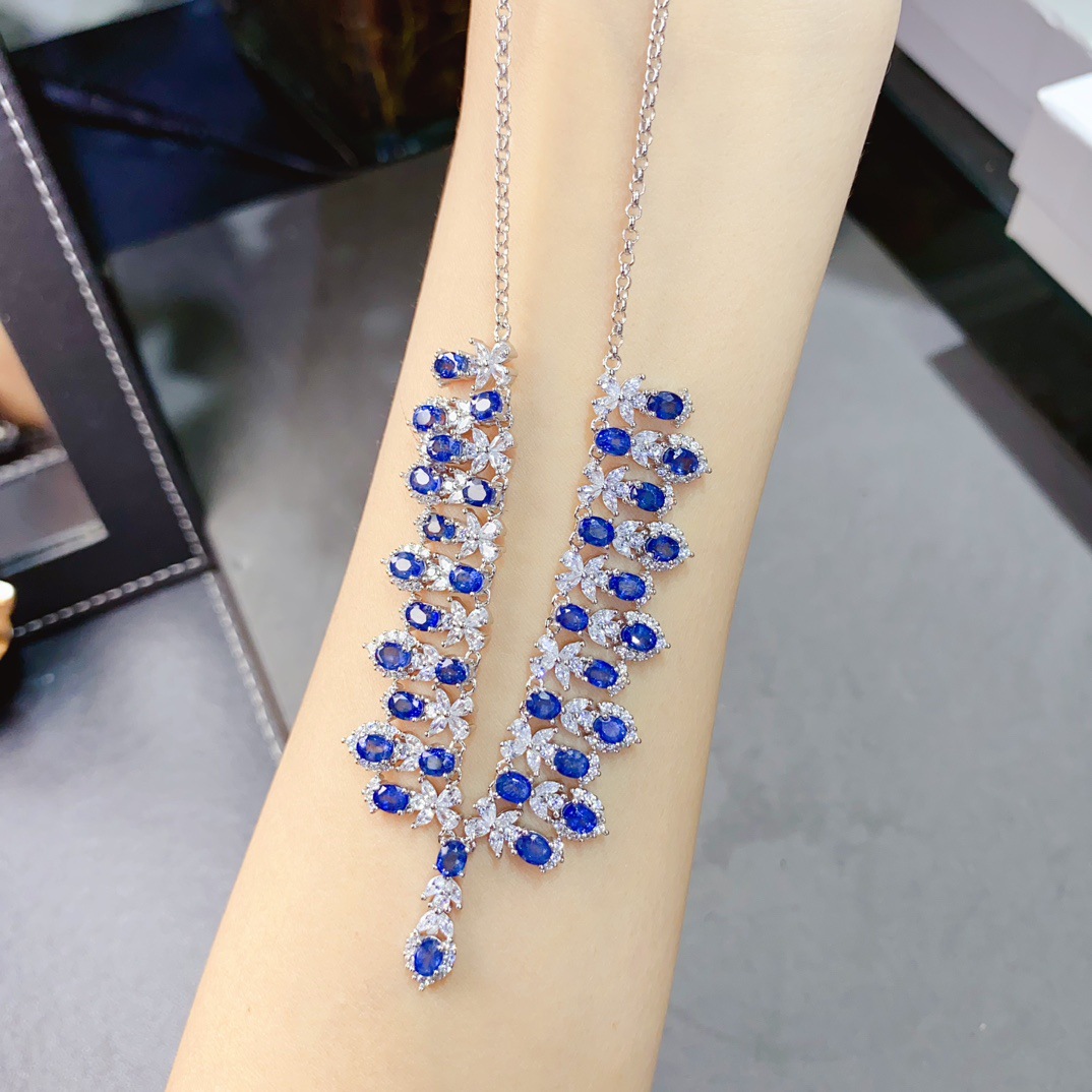 Ожерелье из натурального сапфира S925, инкрустированное серебром, основной камень 5*7