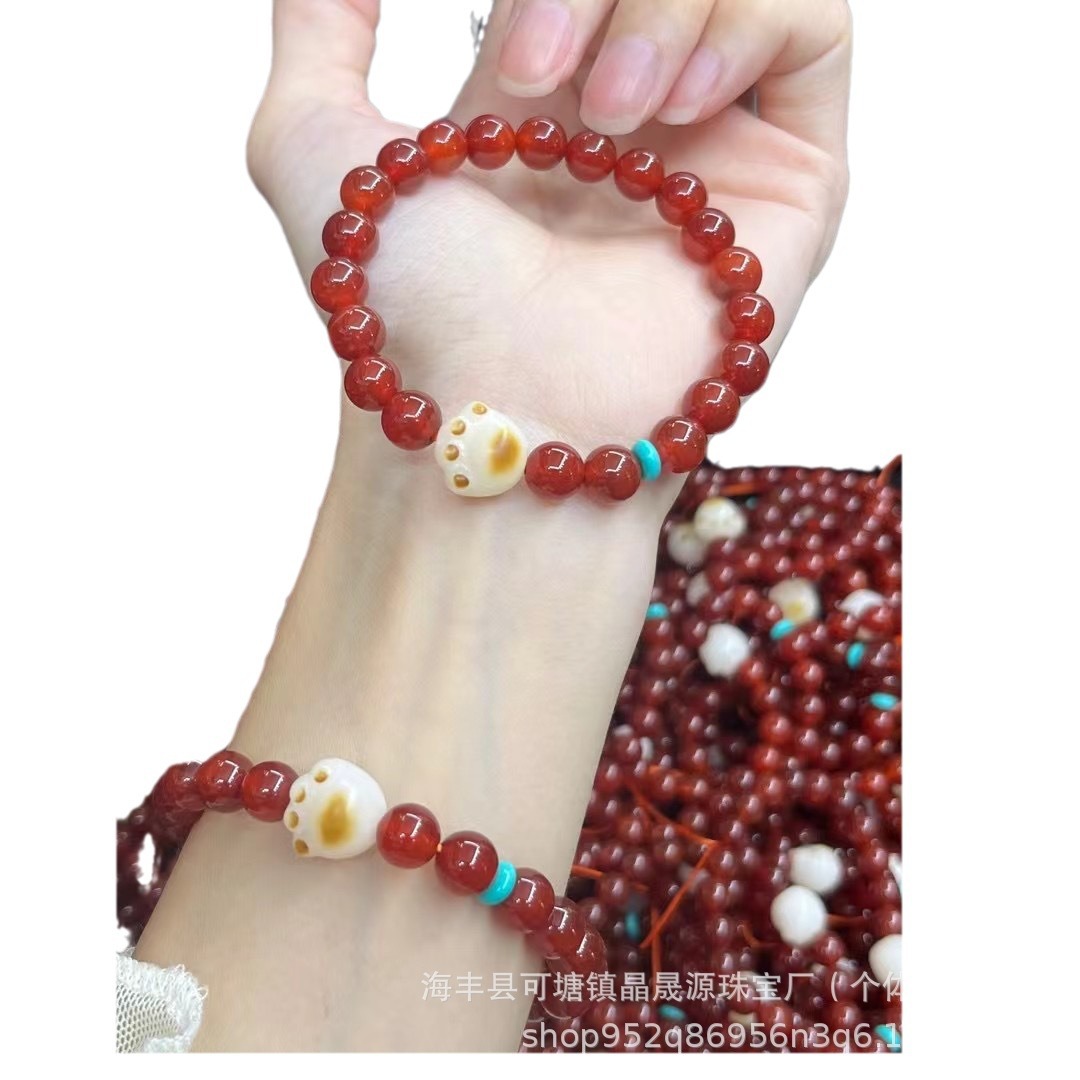 天然红色玛瑙手链南红手串搭配猫爪绿松夏天小红书网红直播福利款 批发量越大价格越低,可供直播间长期合作,欢迎来电私聊