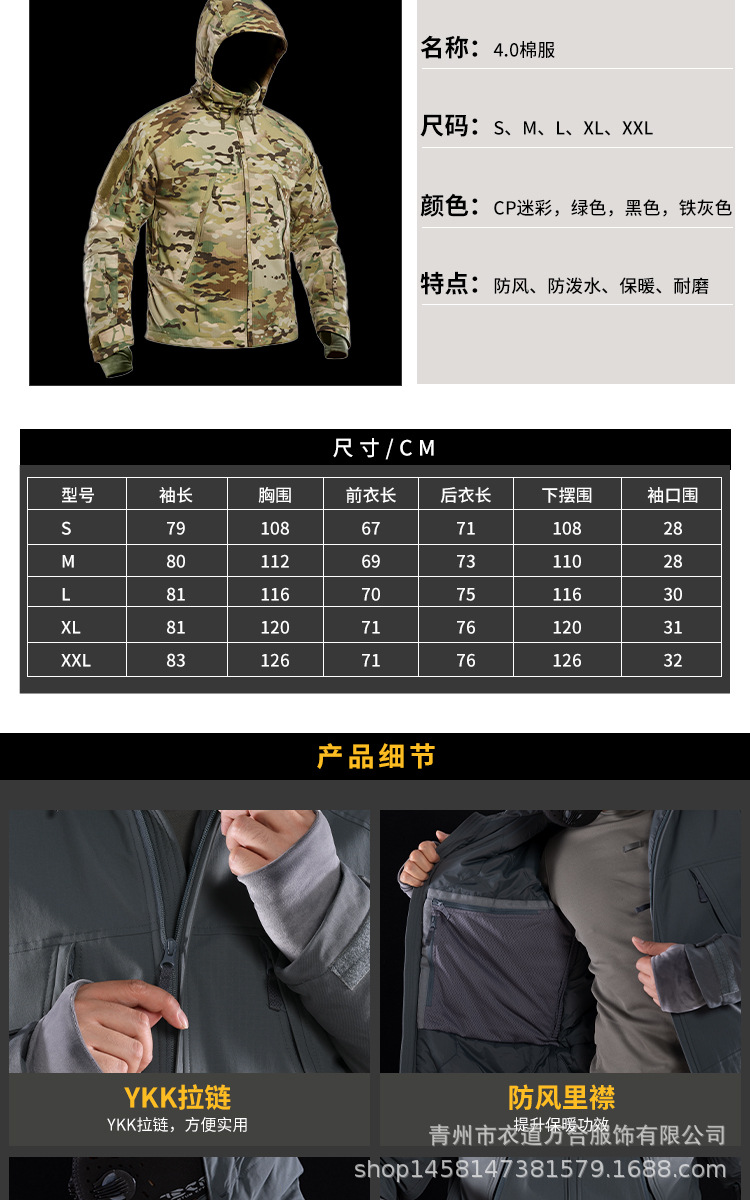 Терпение 4.0 Тактическая хлопчатобумажная одежда Мужская наружная одежда Хлопчатобумажная куртка зимняя полярная зимняя одежда