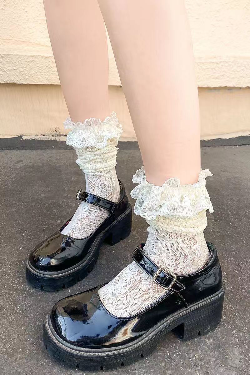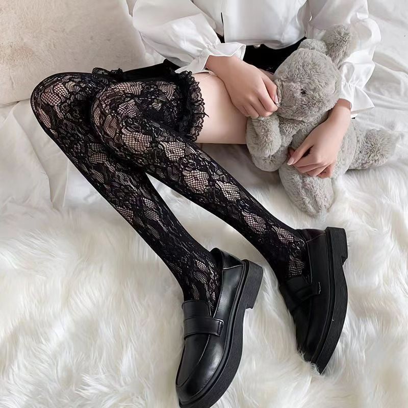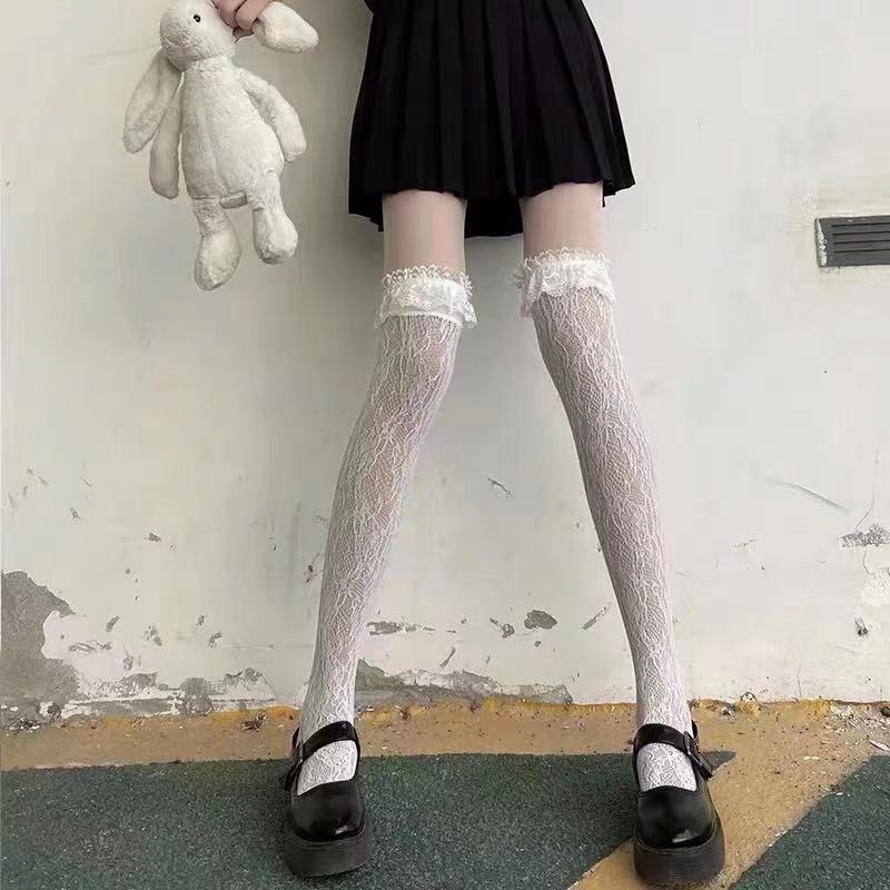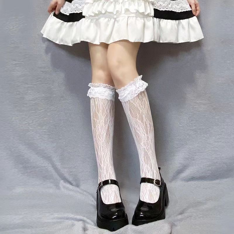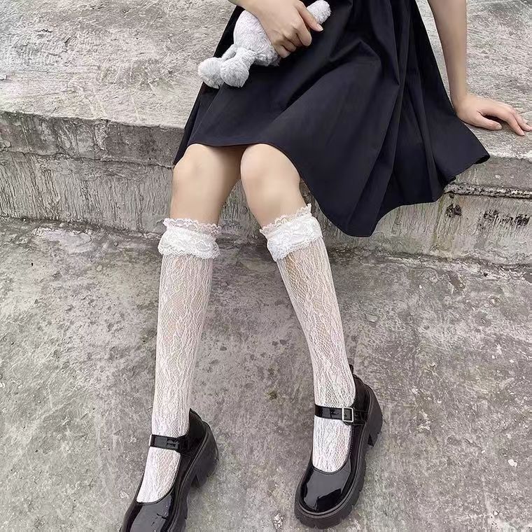 Белые кружевные носки в стиле Лолиты до середины икры JK, длинные кружевные чулки в японском стиле, волита с половиной ноги