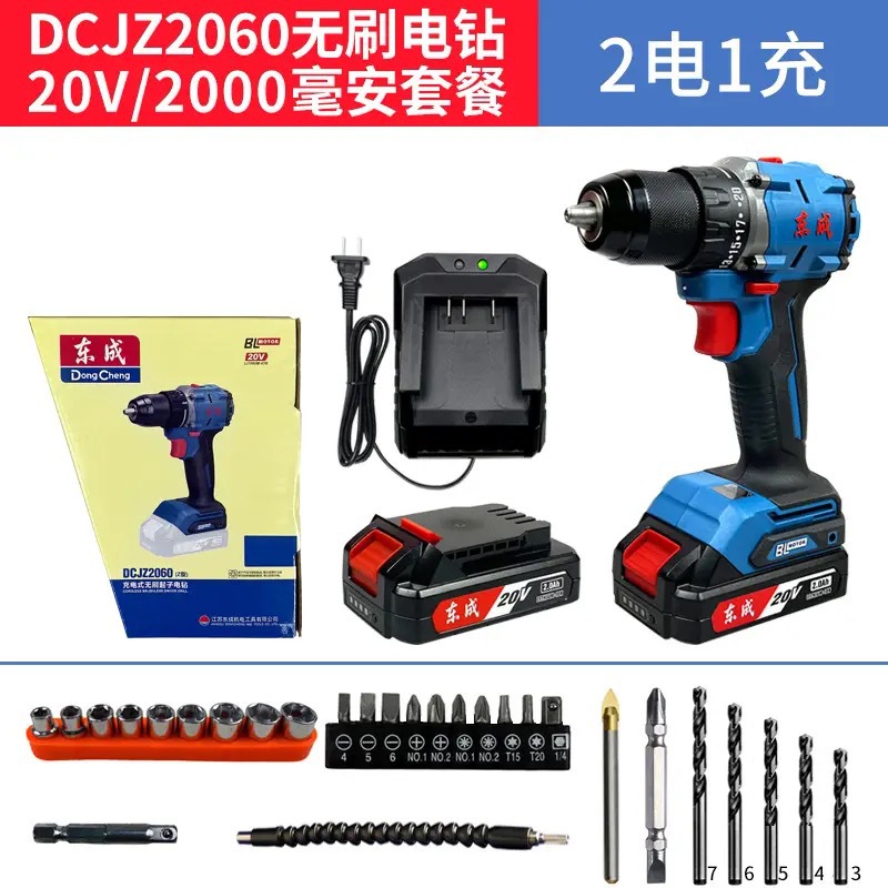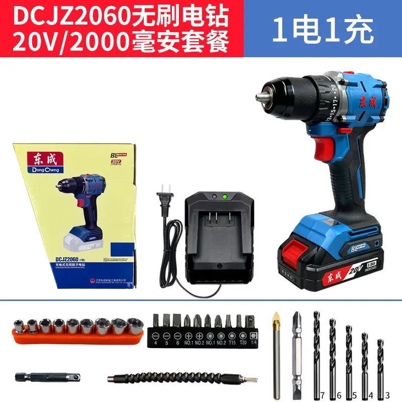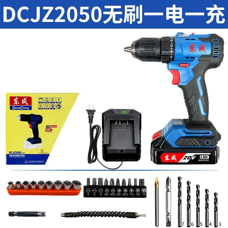 Аккумуляторная бесщеточная дрель-шуруповерт Dongcheng DCJZ2060, 20В, высокомощная, ручная.