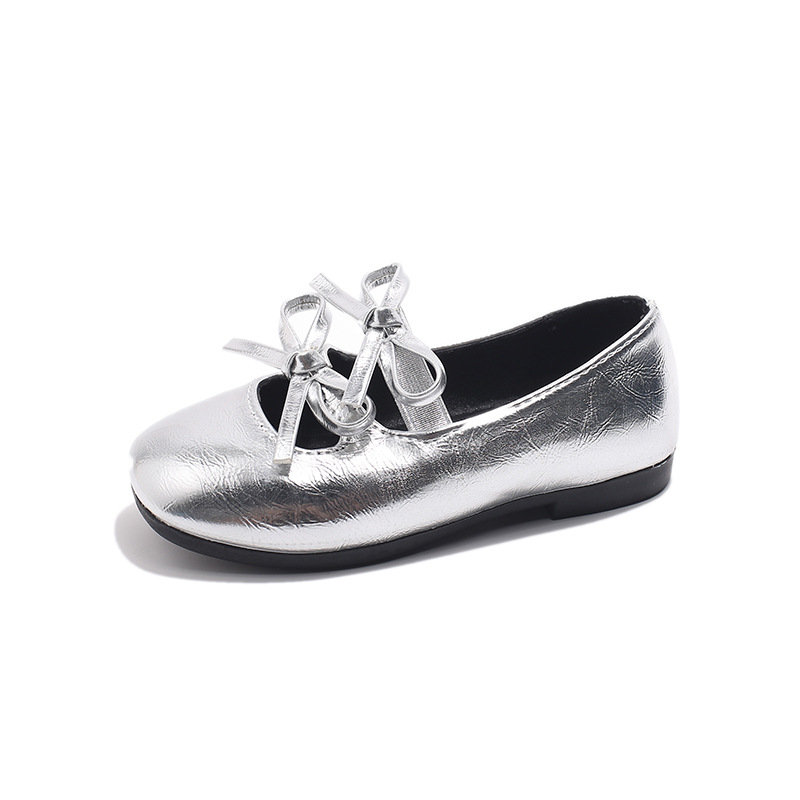 Детская обувь для девочек, маленькие кожаные туфли с квадратным носком, новая корейская версия весны и осени 2025 года, туфли с двойным бантом и неглубоким носком, внешняя торговля.