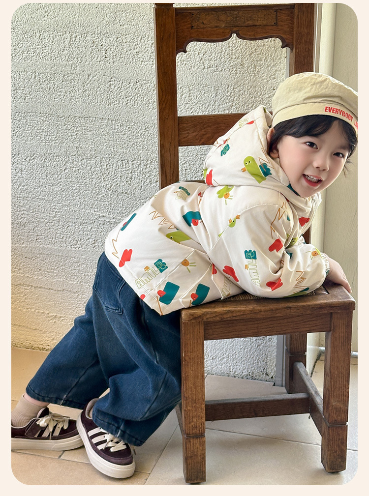 Новая детская куртка для мальчиков 2025 года: осенне-зимняя одежда, утепленная хлопковая, с капюшоном, стильная, с мультяшным принтом