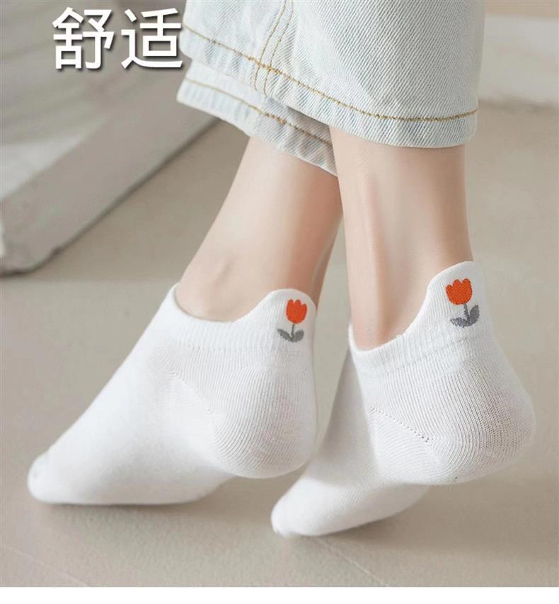 Вышитые белые носки женские носки весной и осенью тонкие японские милые носки с неглубокими носочками студенческие носки