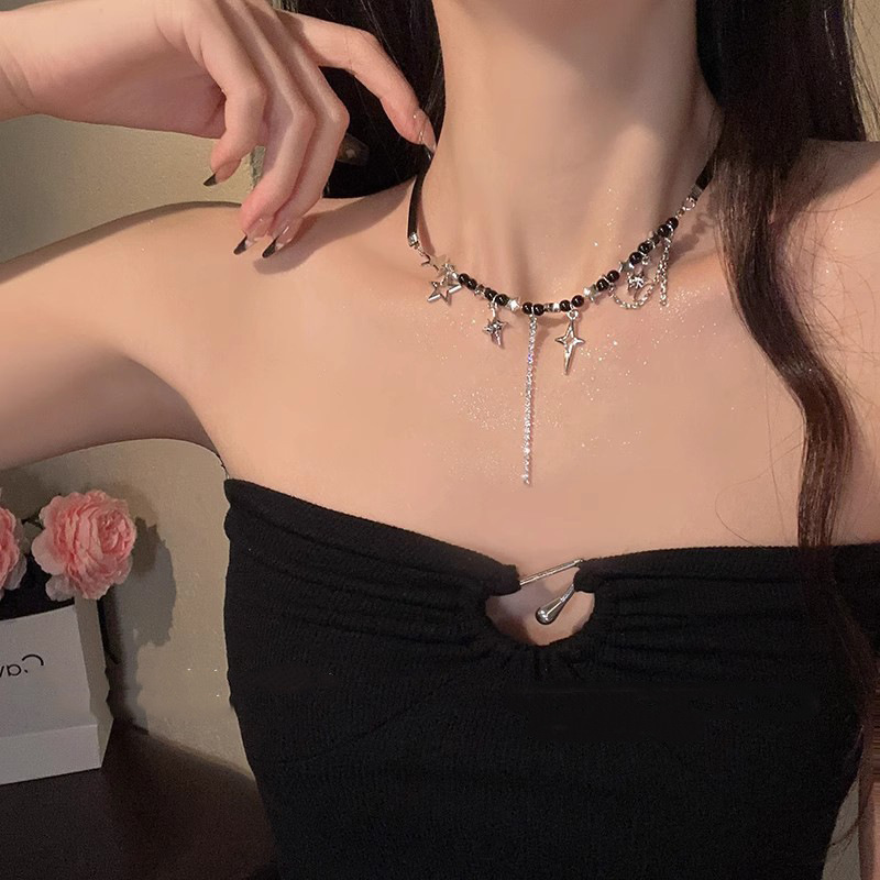 Черное четырехзвездное бисерное ожерелье для женщин высокого уровня дизайна чувство нишевые ключицы темпераментный шейный ремень choker аксессуары