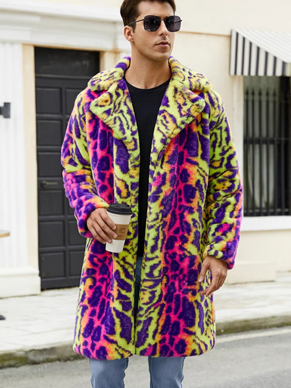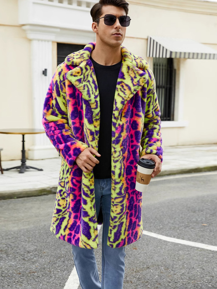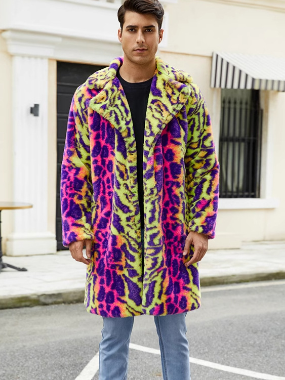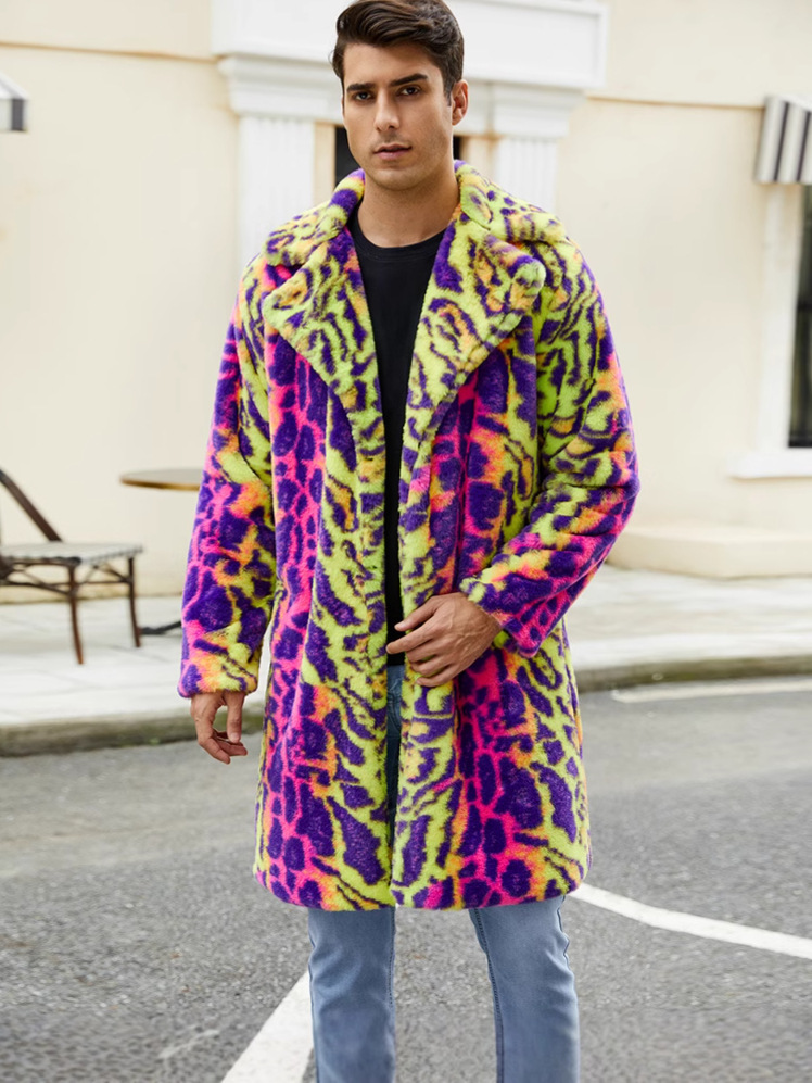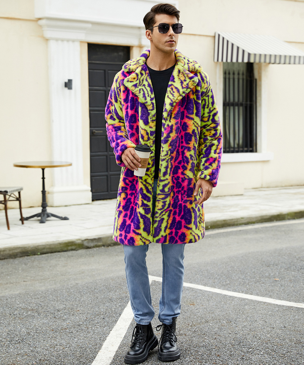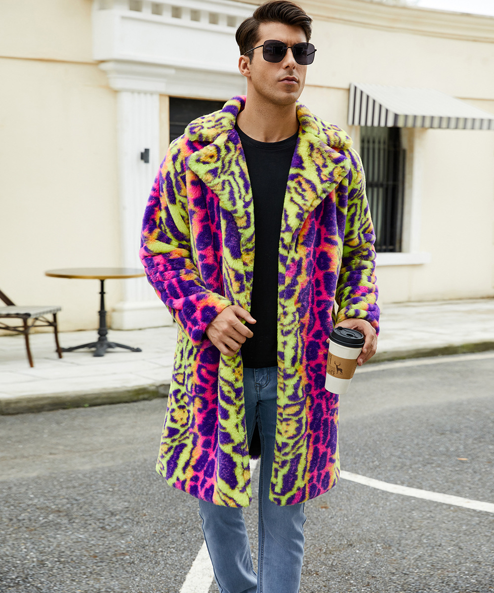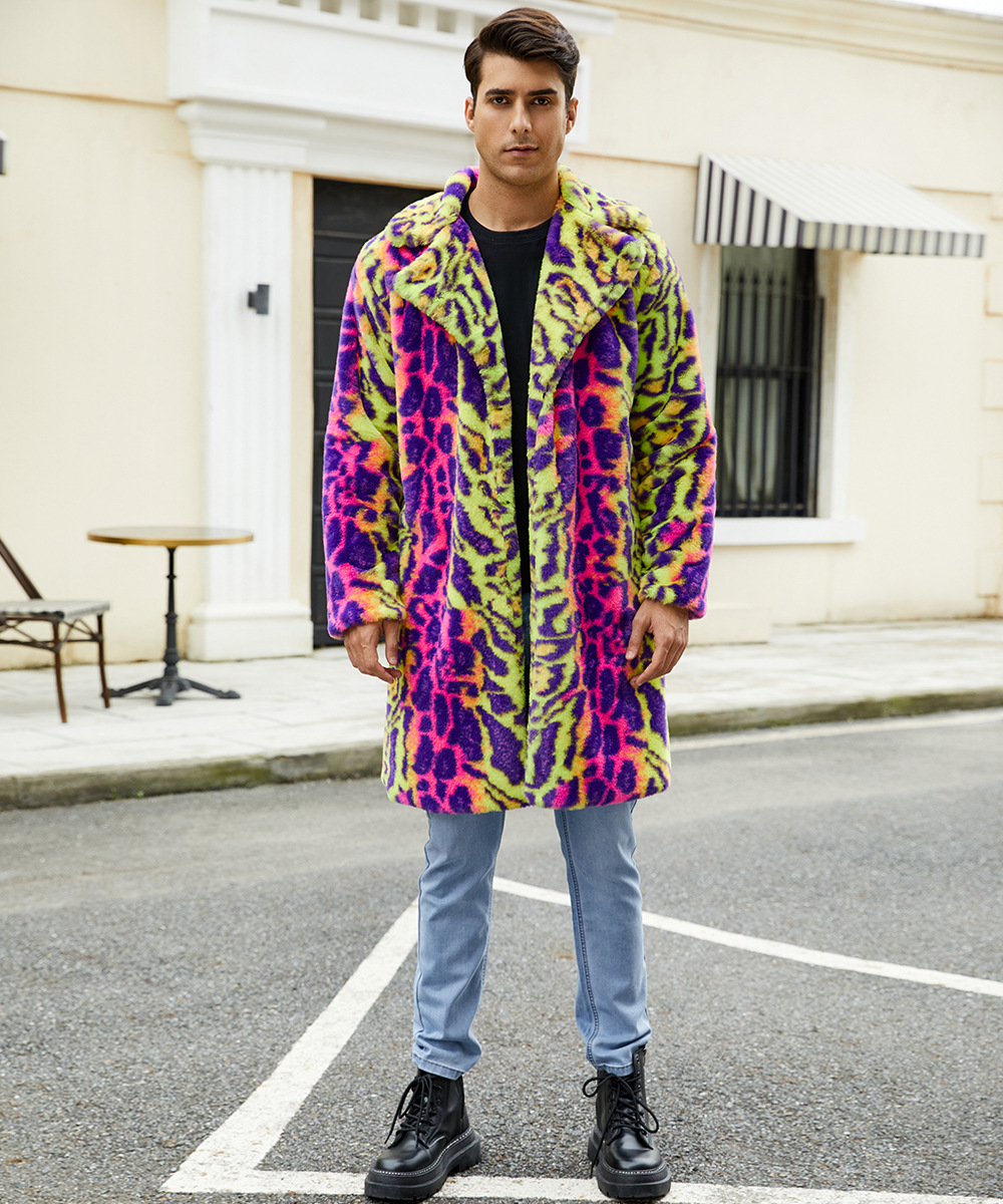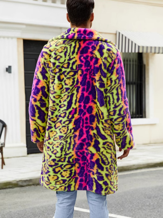 F0774 трансграничная европейская и американская мужская верхняя одежда из искусственного меха, осенне-зимняя теплая плюшевая верхняя одежда с леопардовым принтом, верхняя одежда контрастного цвета
