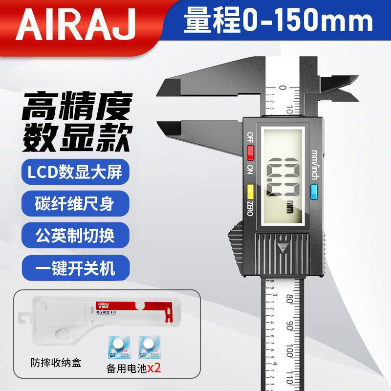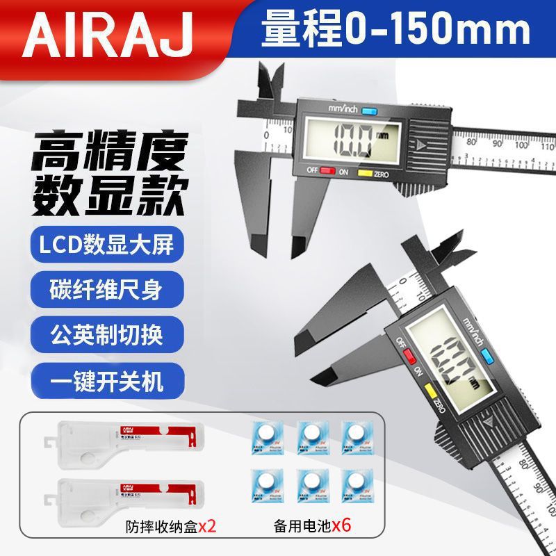 Высокоточный цифровой штангенциркуль из углеродного волокна 0-150 мм; Высокоточный цифровой суппорт из углеродного волокна 0–150 мм + 1 запасной аккумулятор; Высокоточный цифровой штангенциркуль из углеродного волокна 0–150 мм + 2 запасных аккумулятора; Высокоточный цифровой штангенциркуль из углеродного волокна 0–150 мм + 3 запасных аккумулятора; Высокоточный цифровой суппорт из углеродного волокна 0-150 мм + ящик для хранения + 1 аккумулятор; Высокоточный цифровой штангенциркуль из углеродного волокна 0-150 мм + ящик для хранения + 2 батарейки; Высокоточный цифровой штангенциркуль из углеродного волокна 0-150 мм + ящик для хранения + 3 батарейки; Высокоточный цифровой штангенциркуль из углеродного волокна 0–150 мм + 2 ящика для хранения + 6 батарей