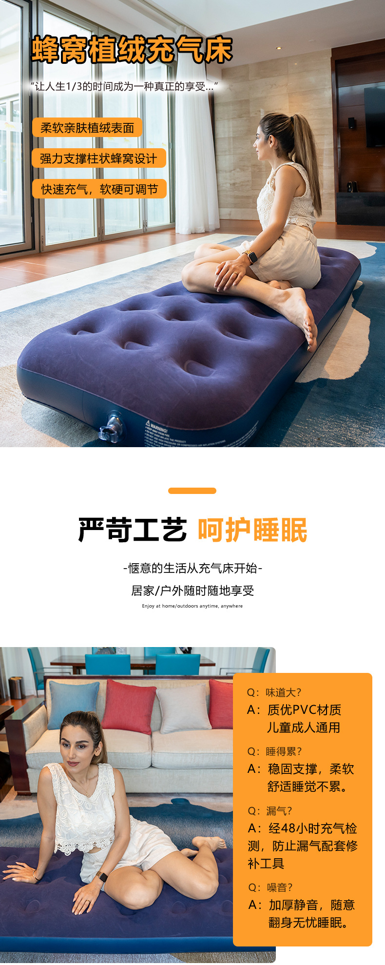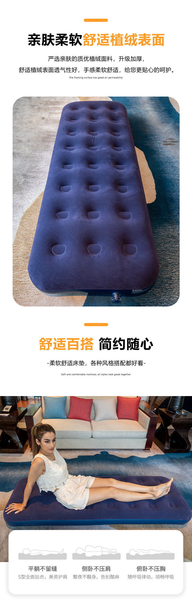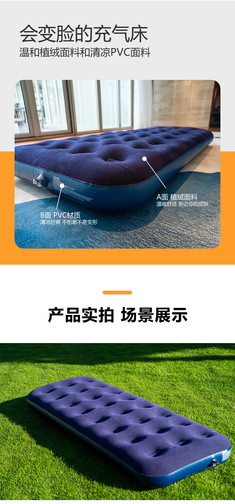 Надувной матрас портативный для кемпинга, палатка, спальный коврик, напольная кровать, домашний флокированный надувной матрас, ПВХ надувной матрас
