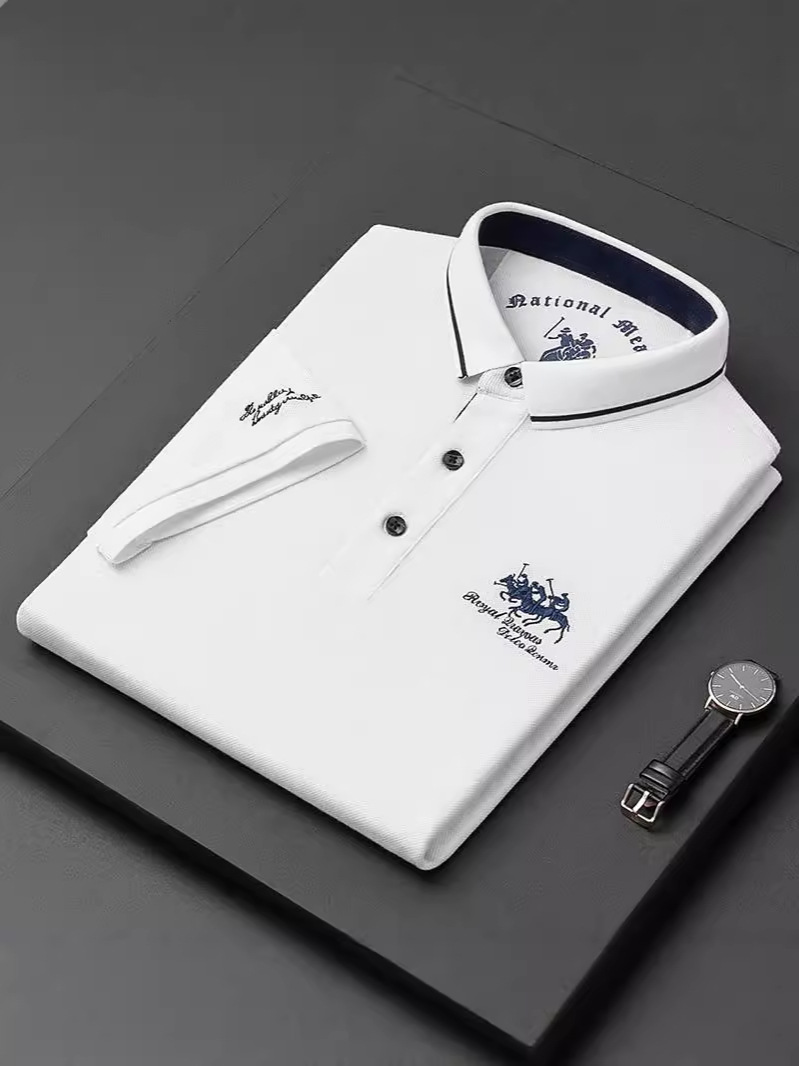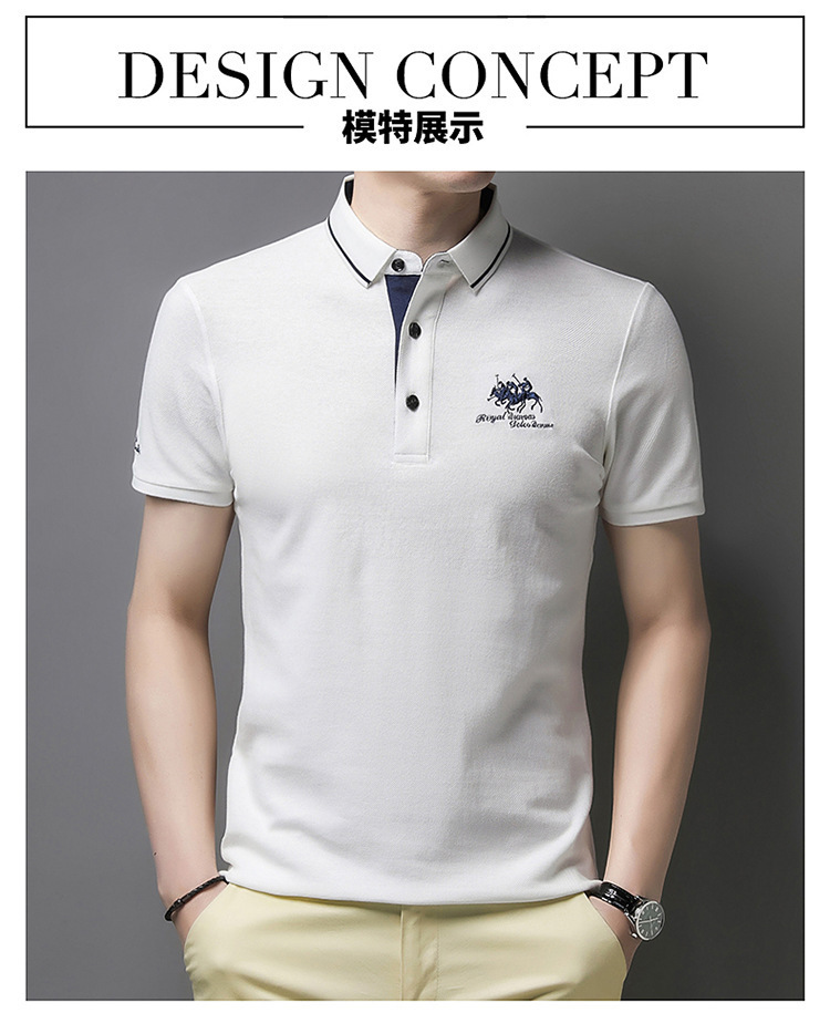 Трансграничные футболки с короткими рукавами, мужская новая летняя мода, мужская сплошная вышивка, рубашка POLO, повседневная футболка