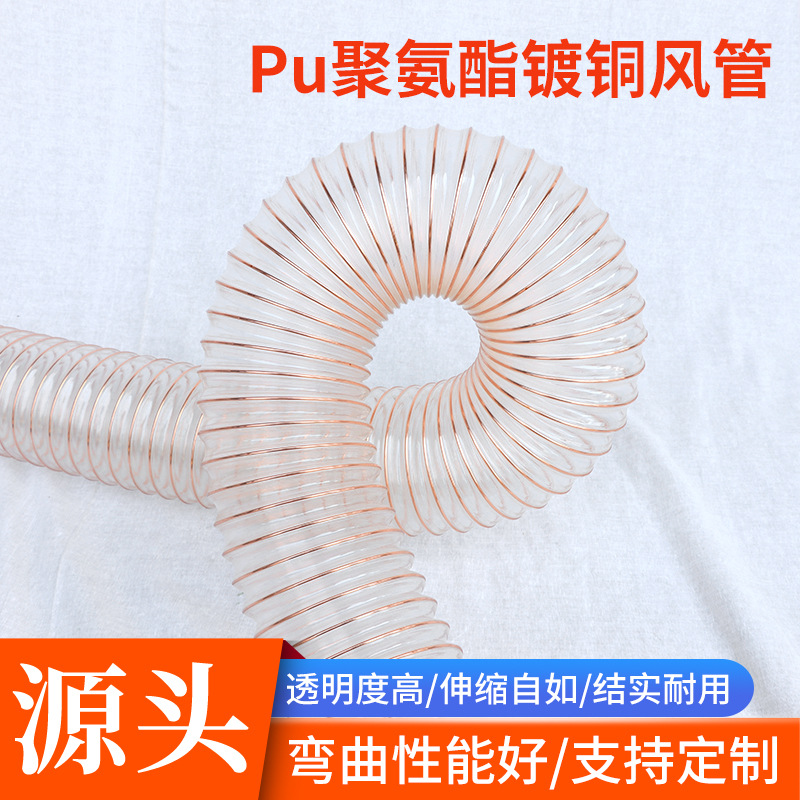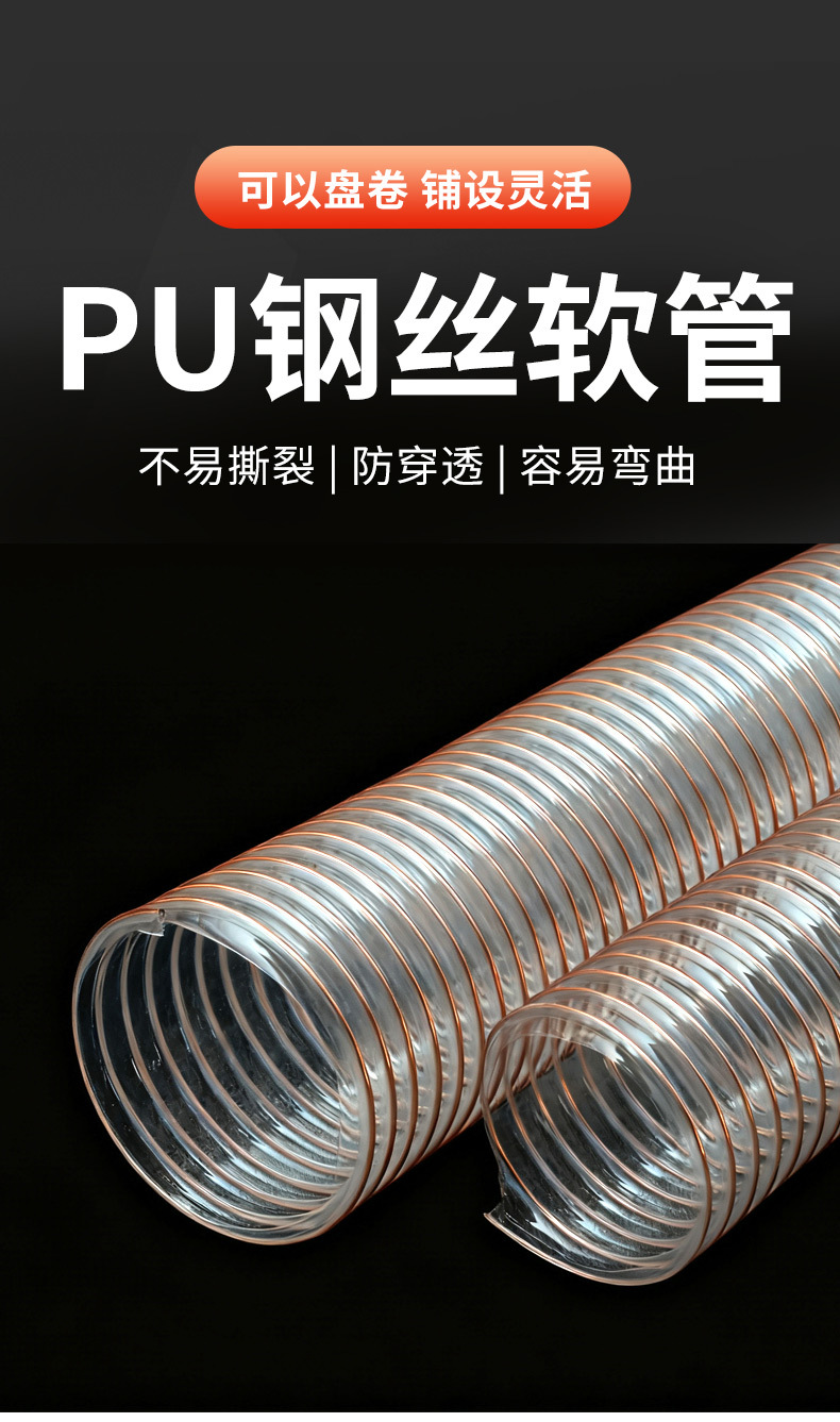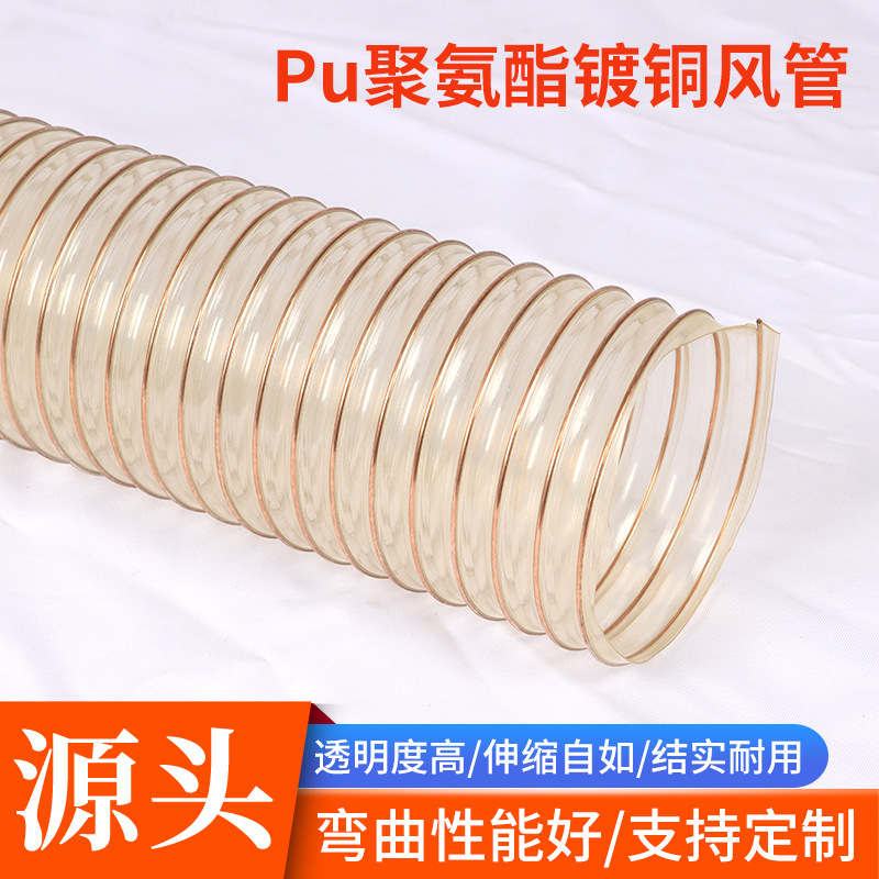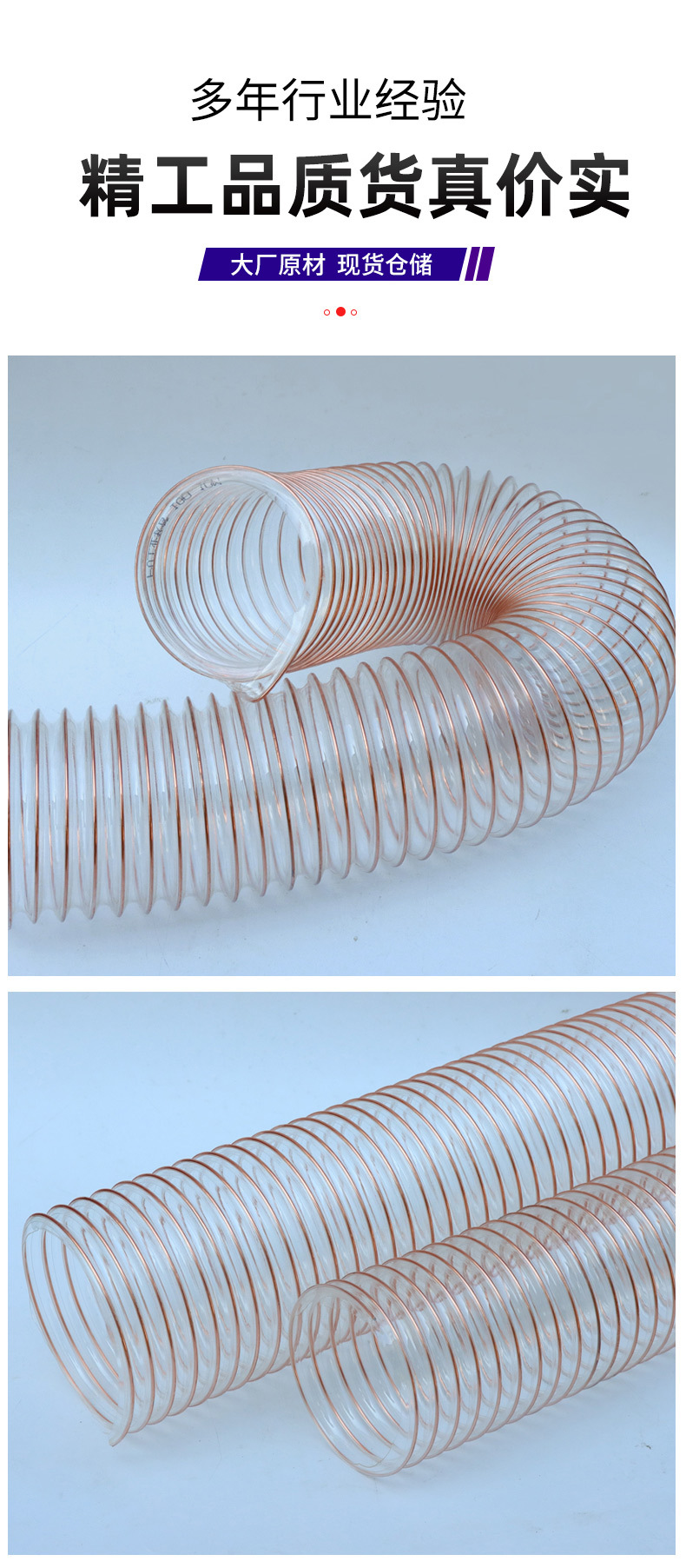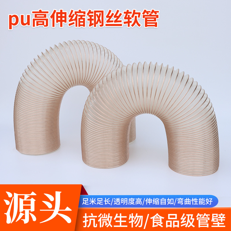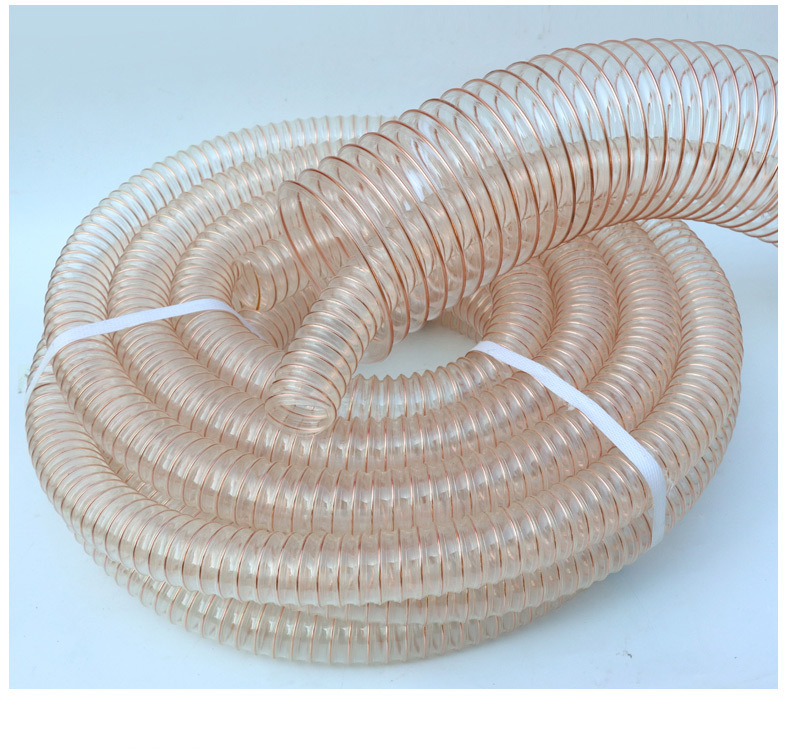 Полиуретановый прозрачный шланг со стальной оплеткой для деревообрабатывающих пылесосов, телескопический вентиляционный шланг из ПУ для отрезных станков