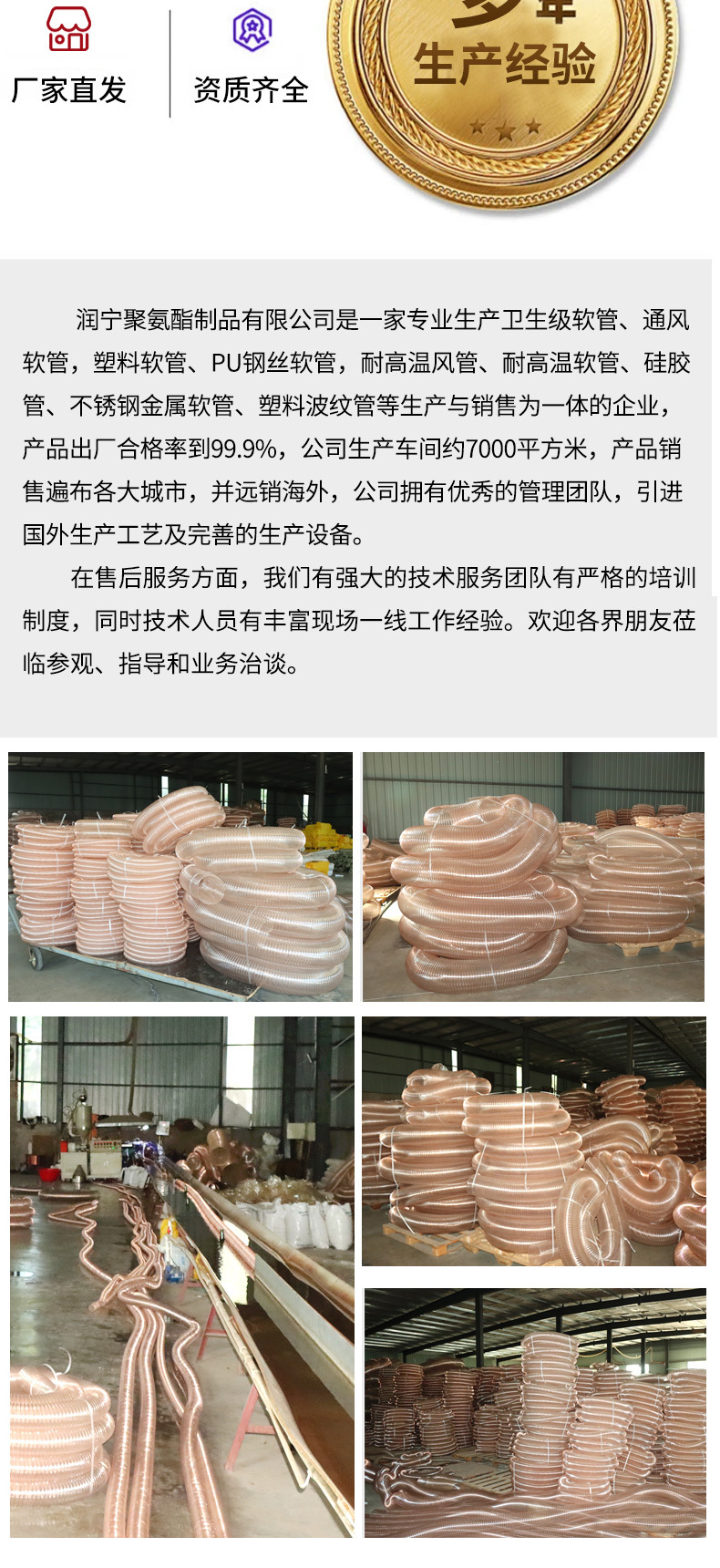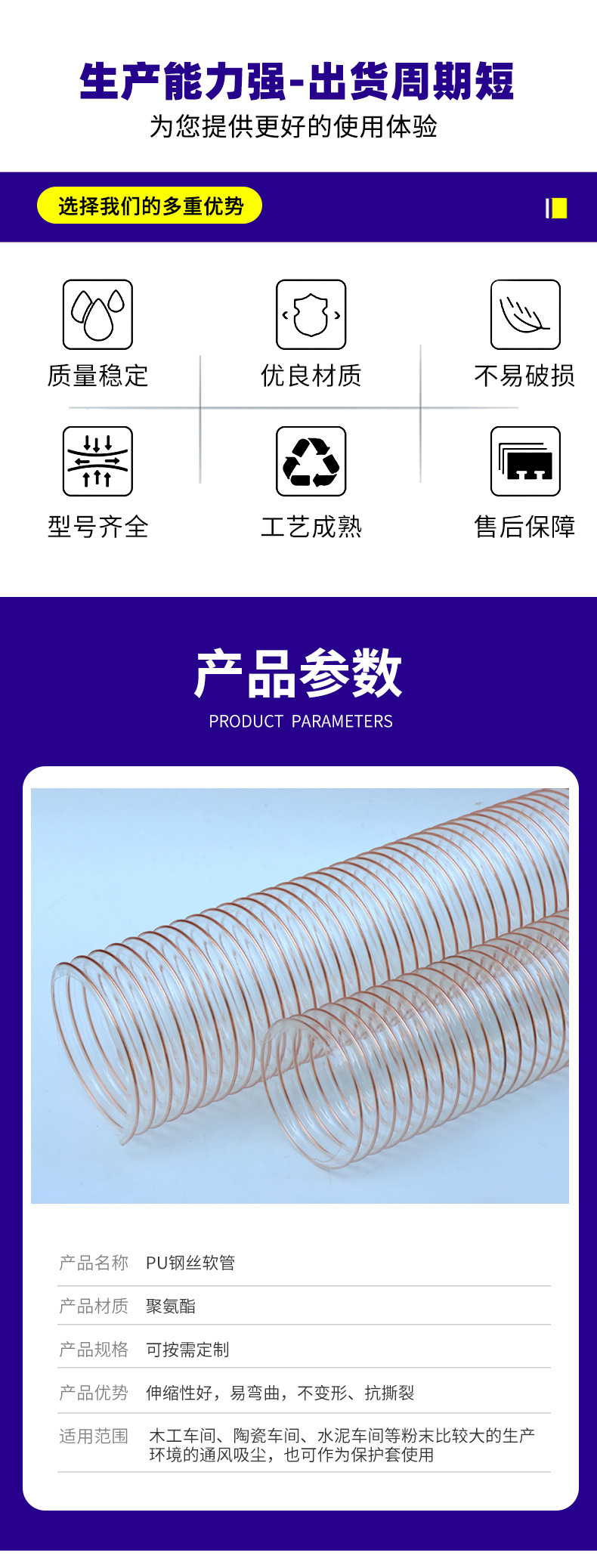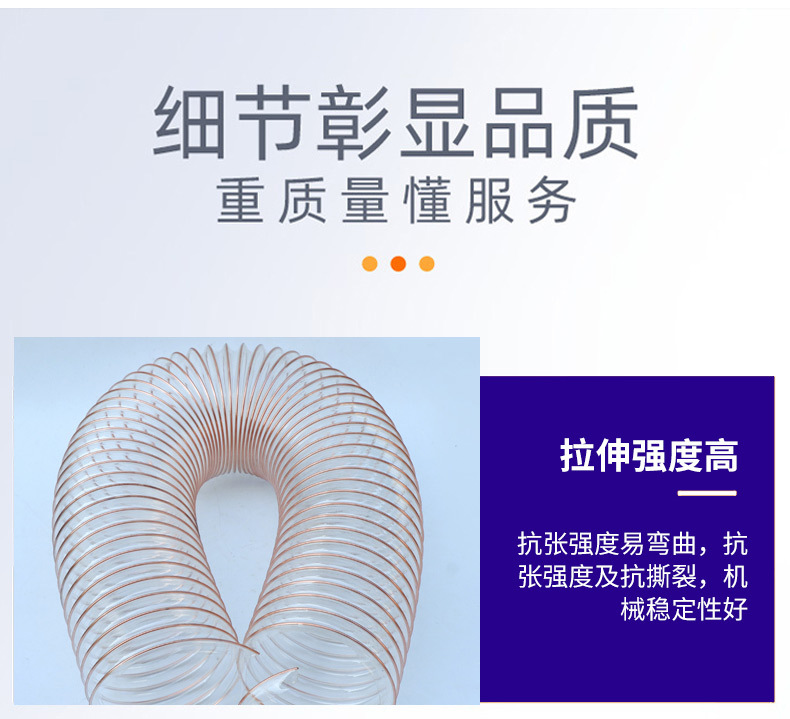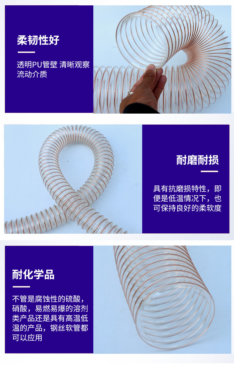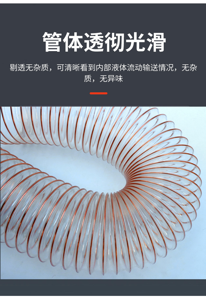 Полиуретановый прозрачный шланг со стальной оплеткой для деревообрабатывающих пылесосов, телескопический вентиляционный шланг из ПУ для отрезных станков