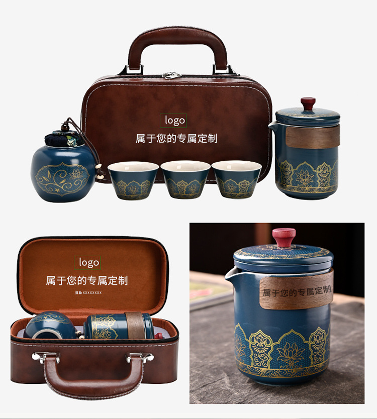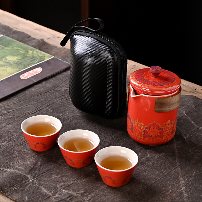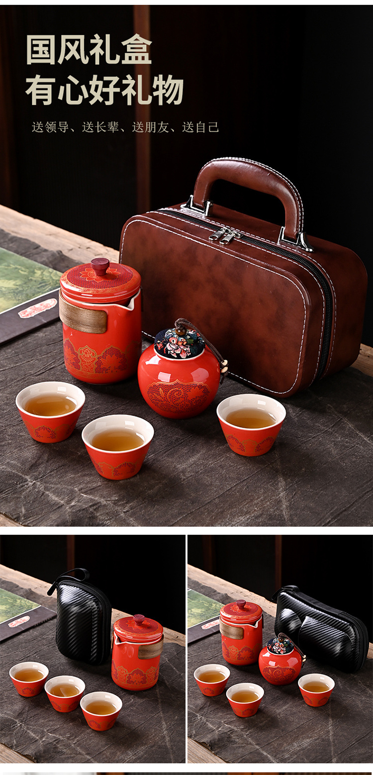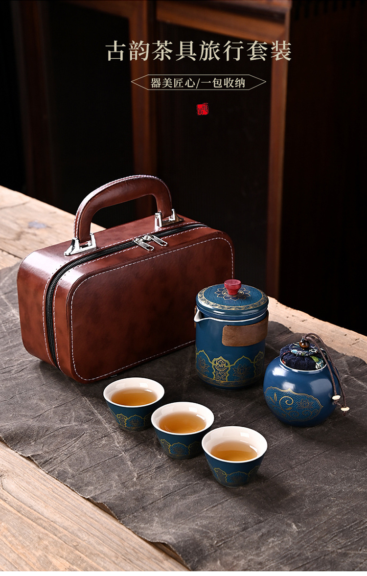Дорожный чайный набор, небольшой набор, портативный керамический набор для кунг-фу, уличный набор для быстрой чашки, сувенирный подарок в стиле древнего рифма, полный набор