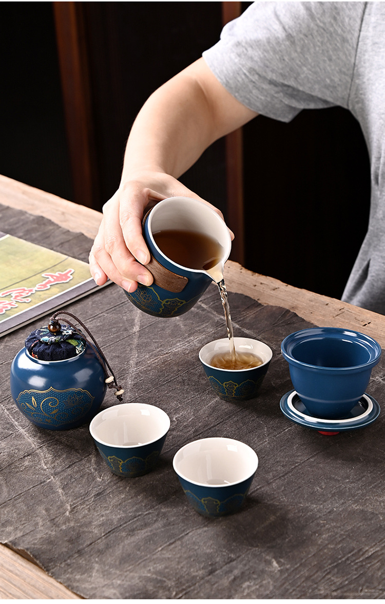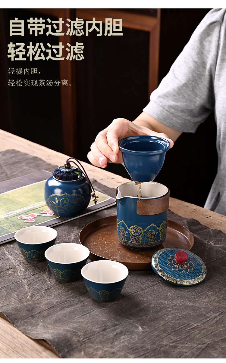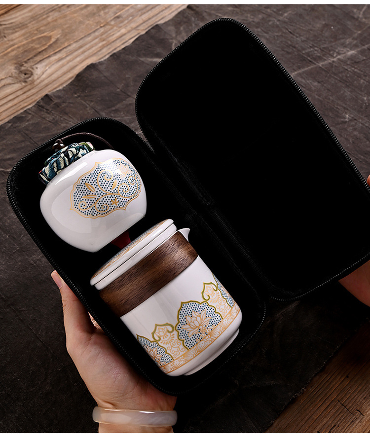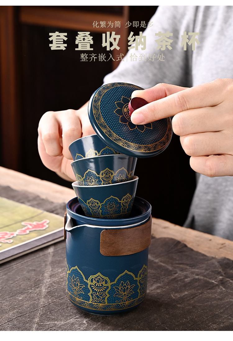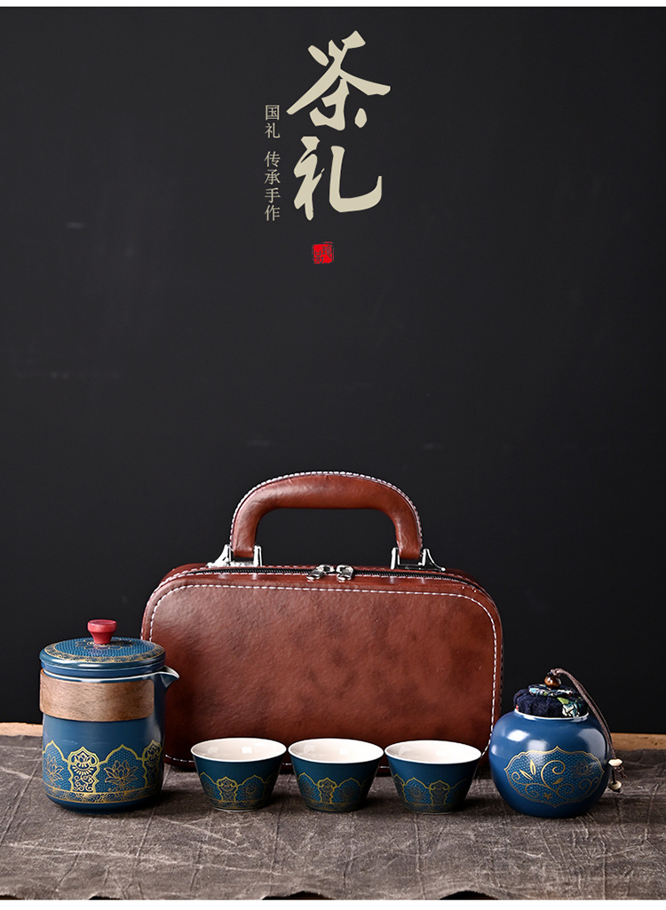Дорожный чайный набор, небольшой набор, портативный керамический набор для кунг-фу, уличный набор для быстрой чашки, сувенирный подарок в стиле древнего рифма, полный набор