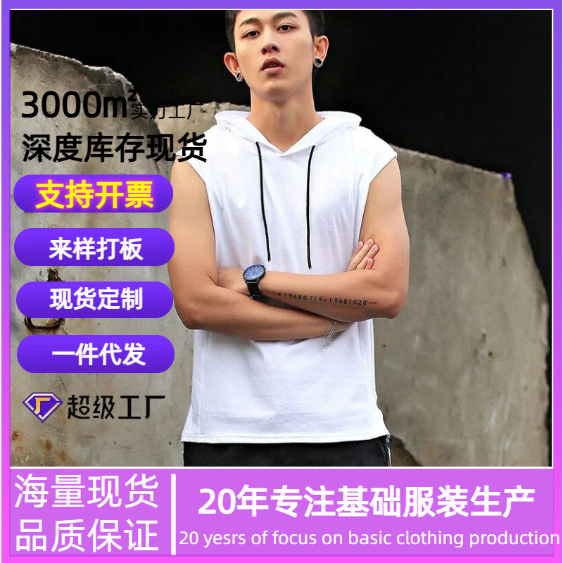 Трансграничная футболка без рукавов, мужская летняя жилетка с рукавами, модный жилет с капюшоном, жилет с капюшоном и короткими рукавами, футболка мужского стиля