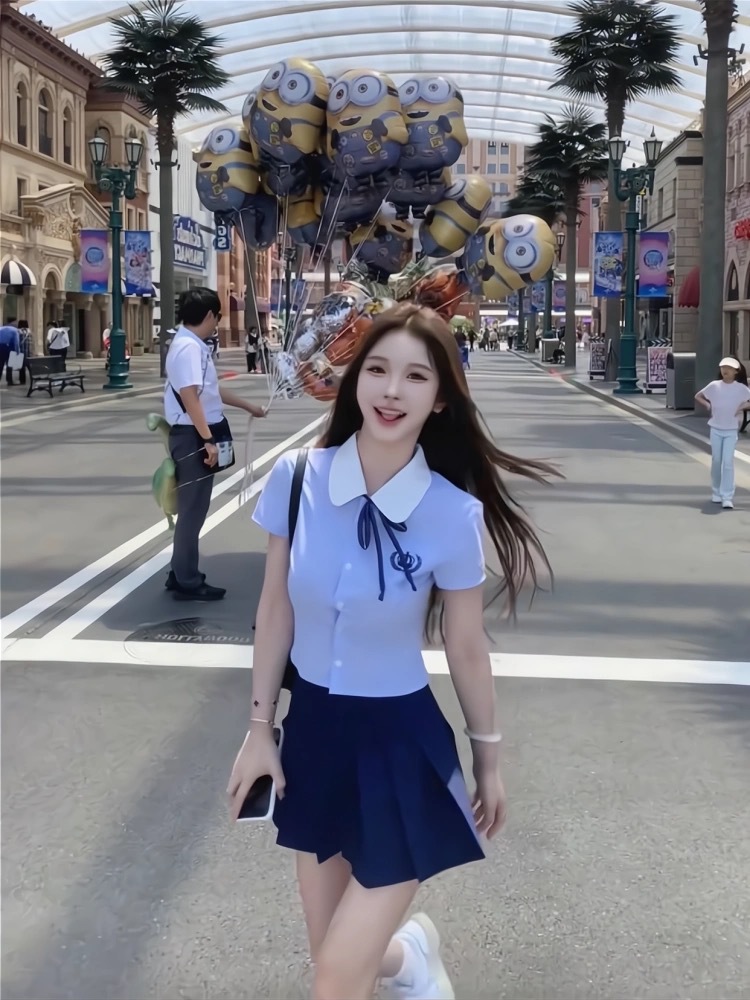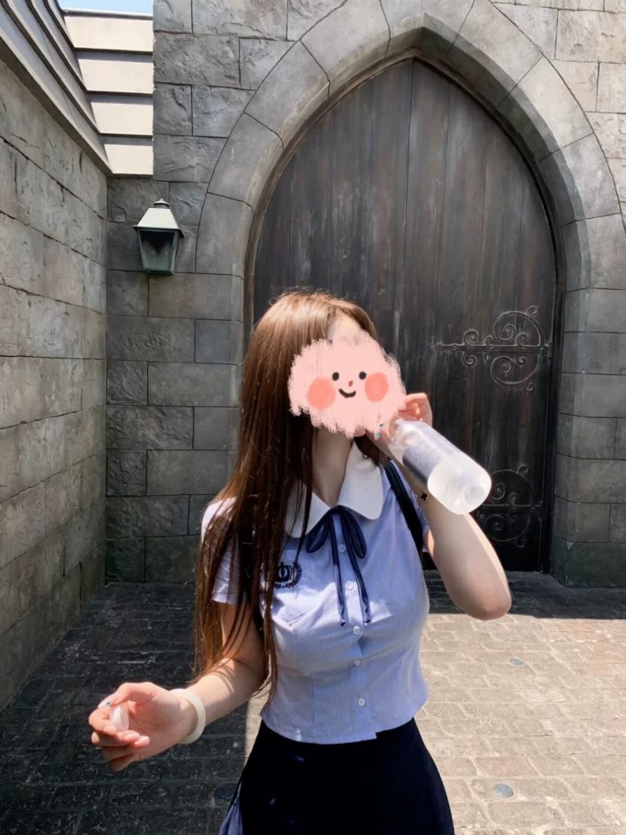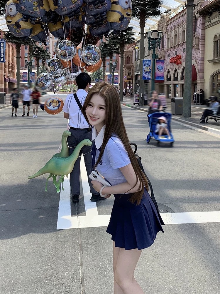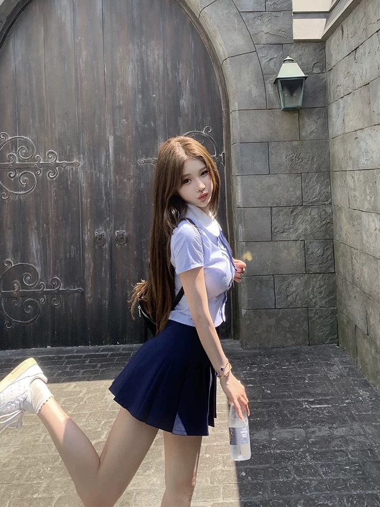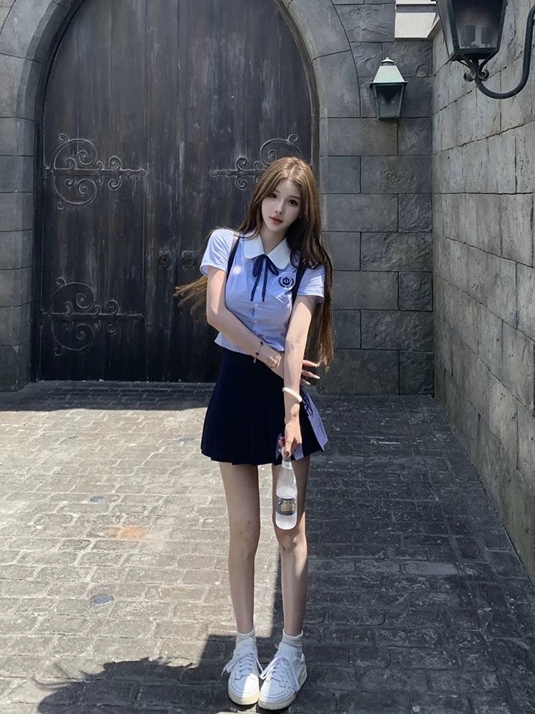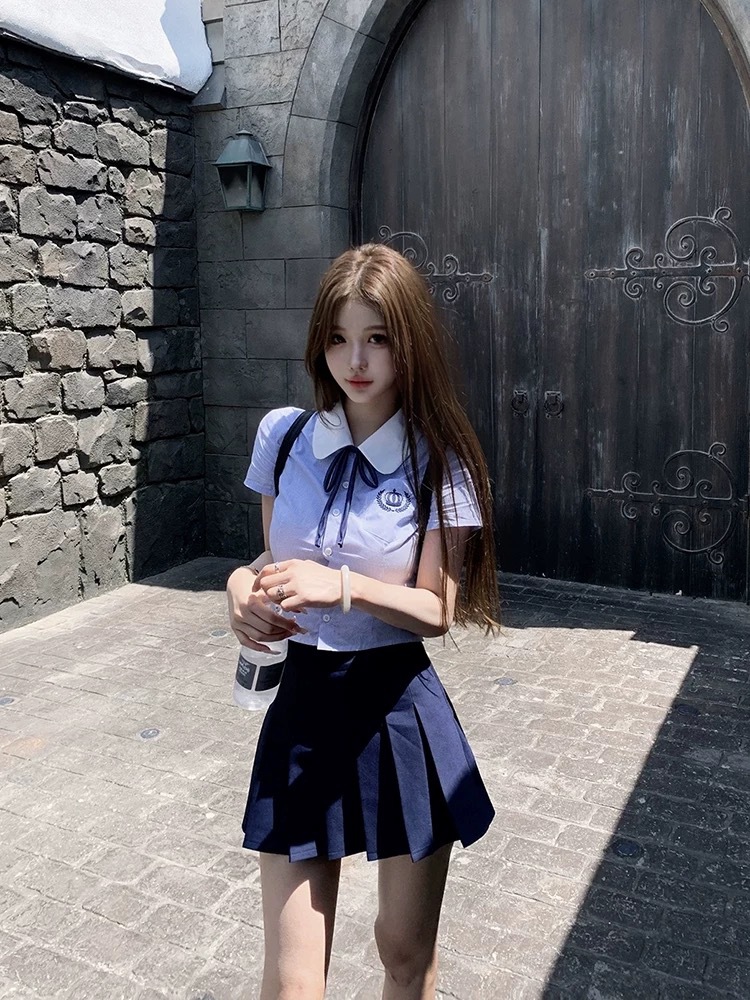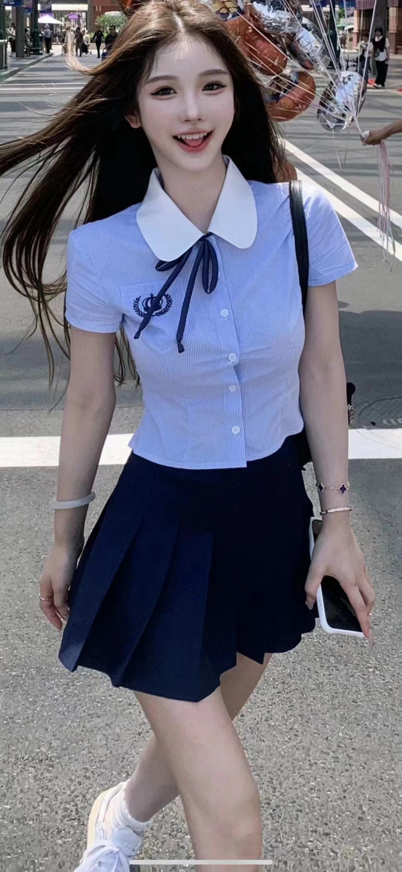 Синие полоски + воротник-шнур; Синие полоски + воротник + темно-синяя юбка; Синие полоски + галстук + черная юбка; Темно-синяя юбка Alone; Синяя полосатая рубашка Alone