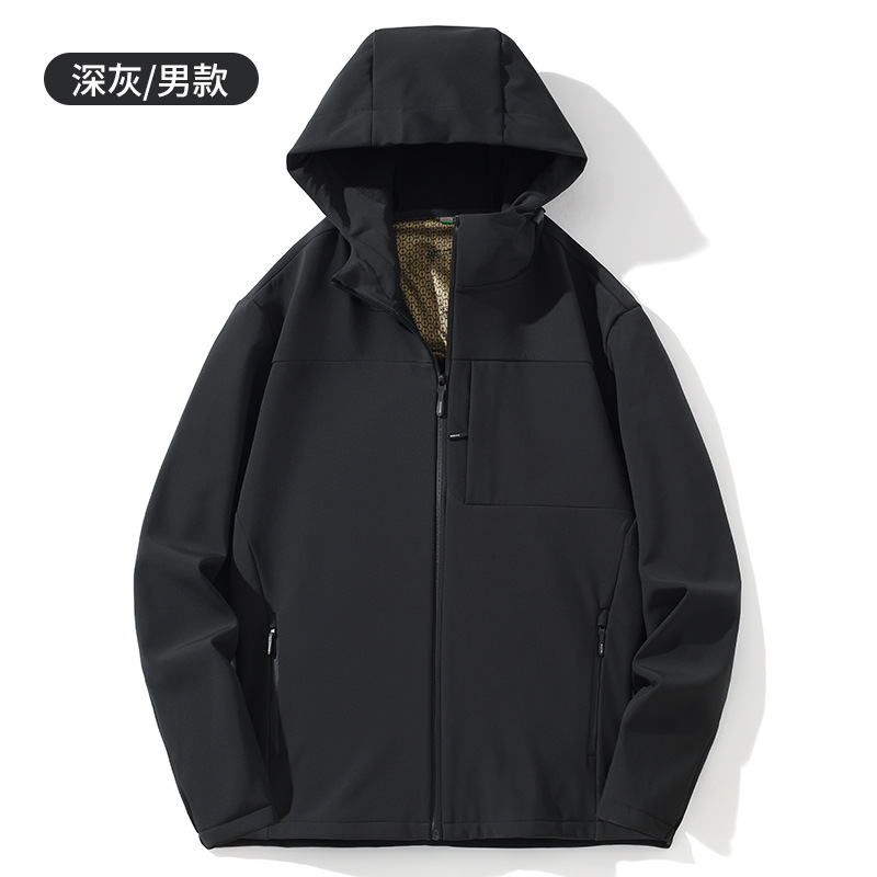 Мягкая оболочка куртка мужская весна и осень на открытом воздухе водонепроницаемая ветрозащитная куртка для отдыха плюс бархатная теплая куртка с капюшоном куртка толстая женщина