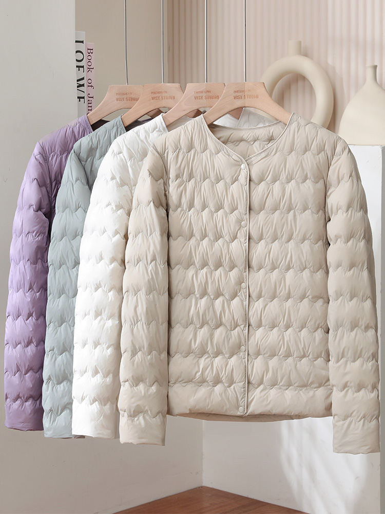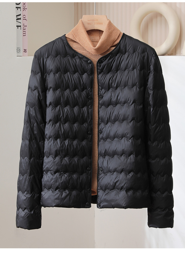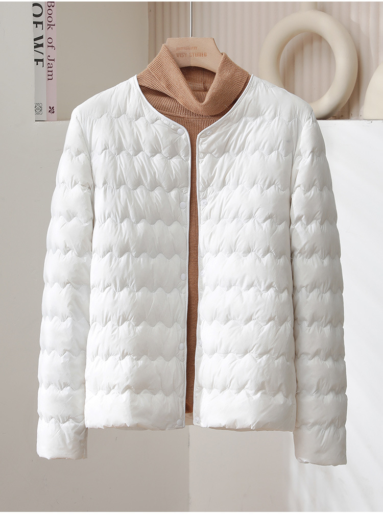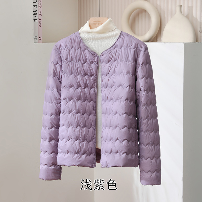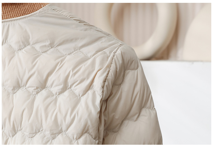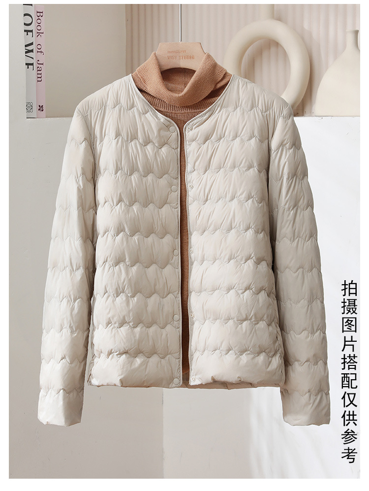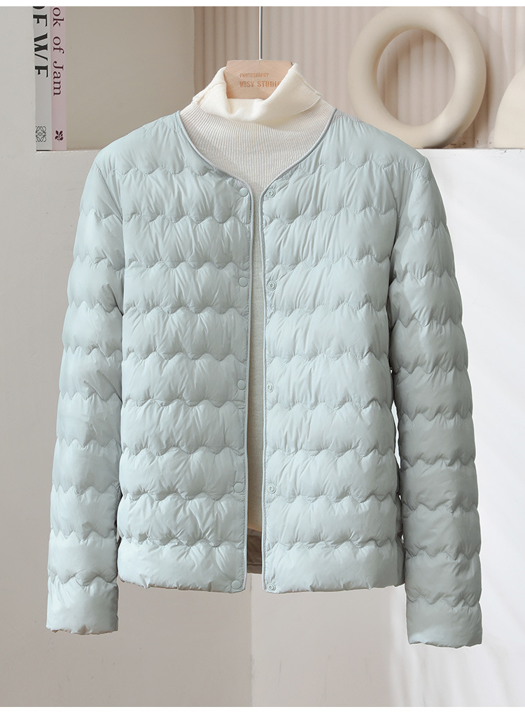 Трансграничная осень и зима новый тонкий и легкий пуховик женский короткий волнистый круглый воротник с изменяемым V-образным вырезом теплый внутренний пиджак