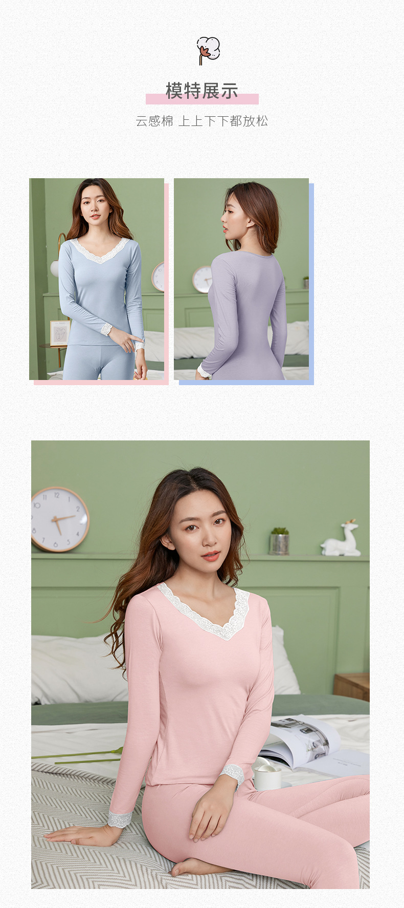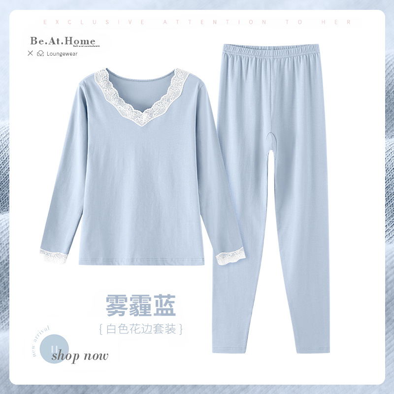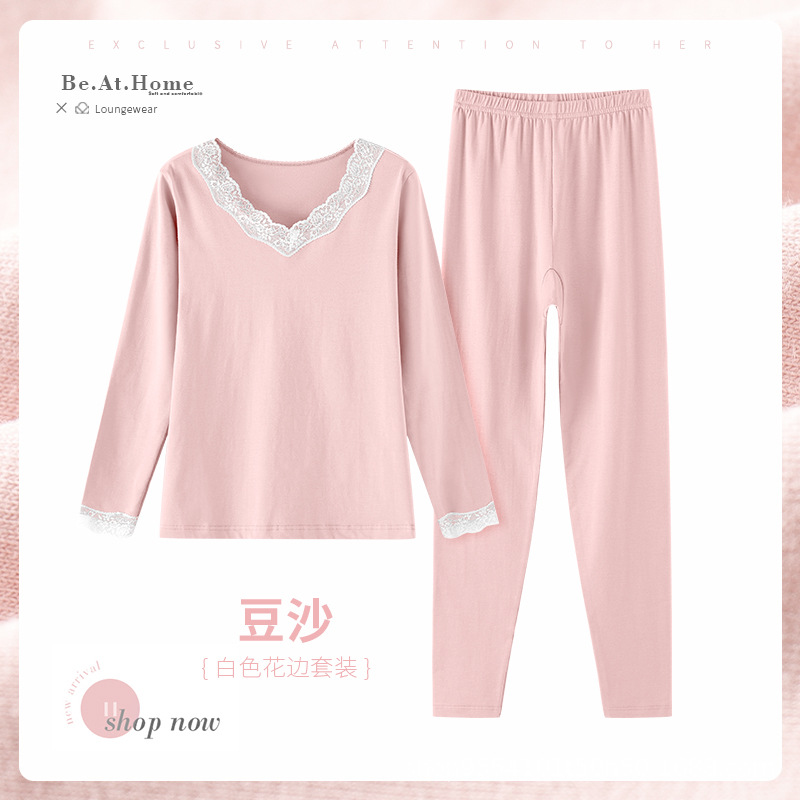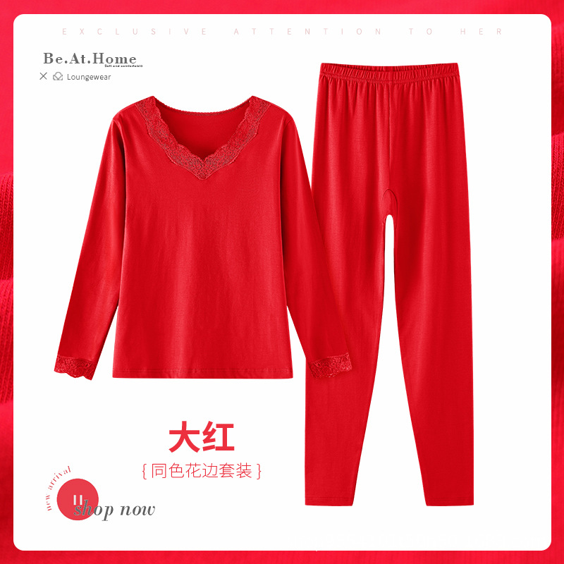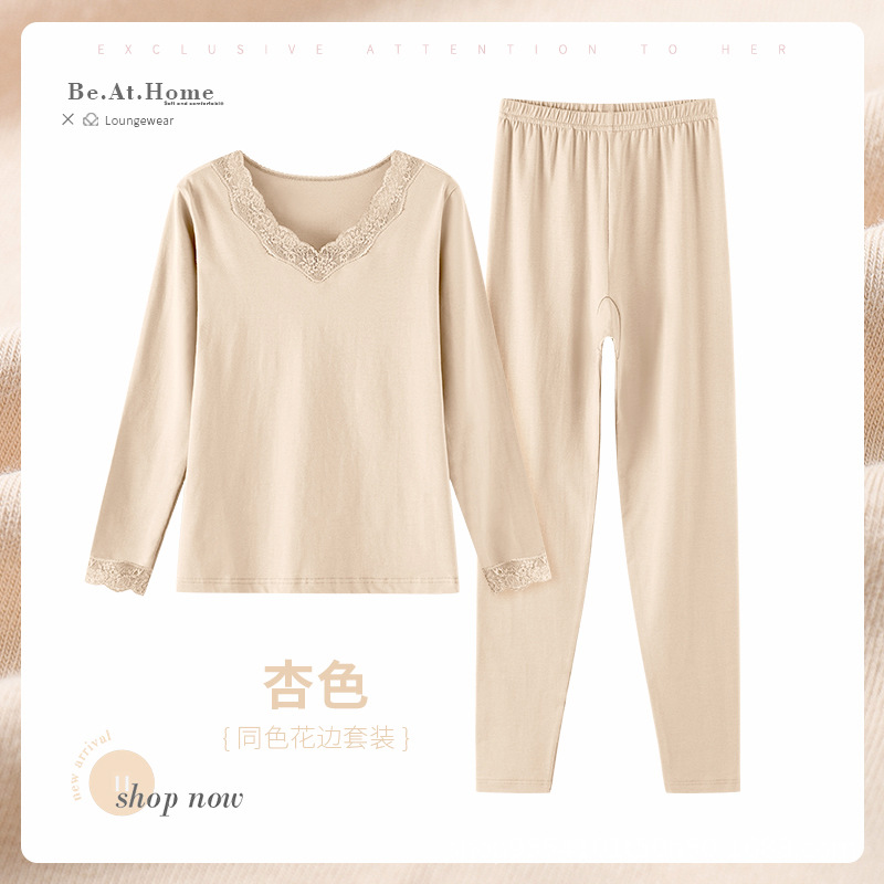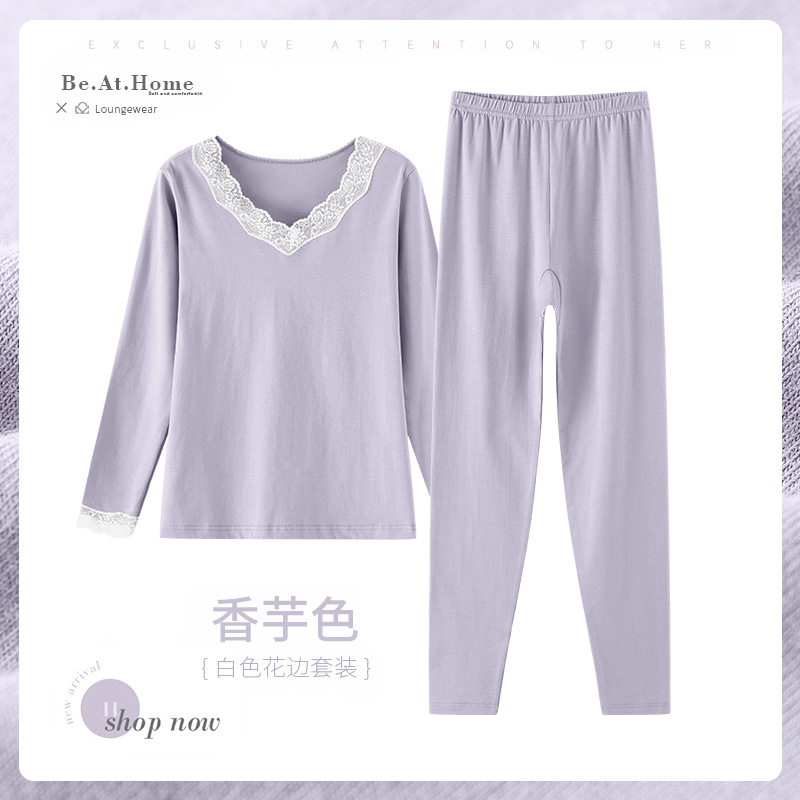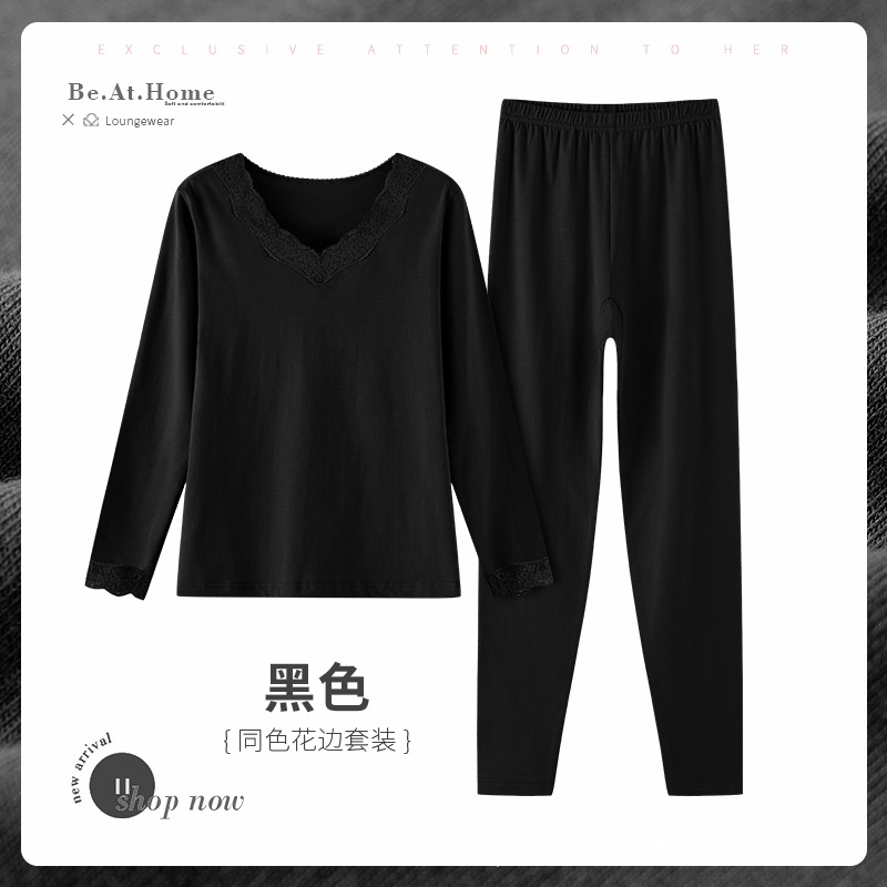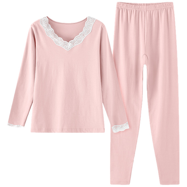 Осенний и зимний хлопчатобумажный кружевной осенний костюм для женщин комплект термобелья большой размер