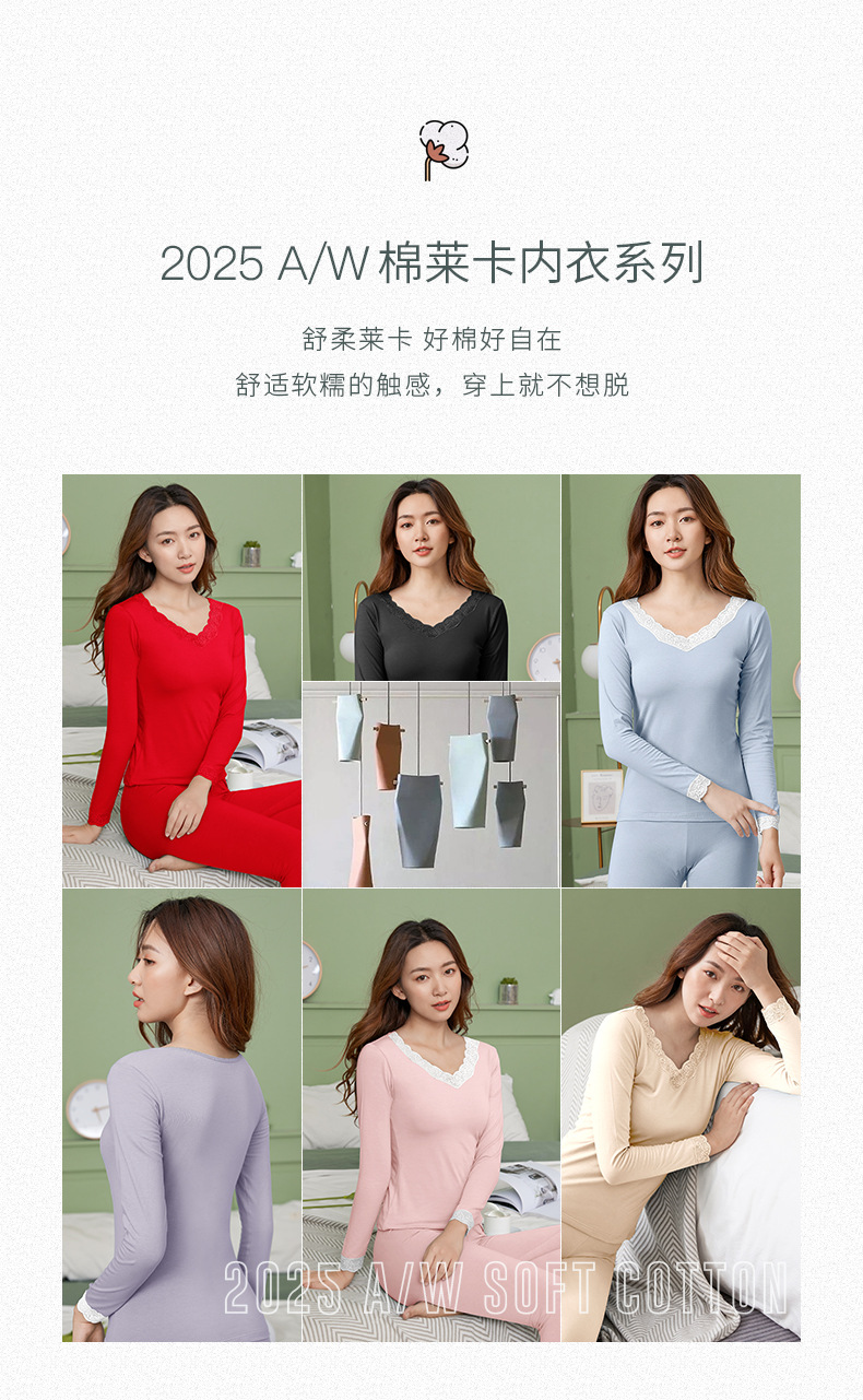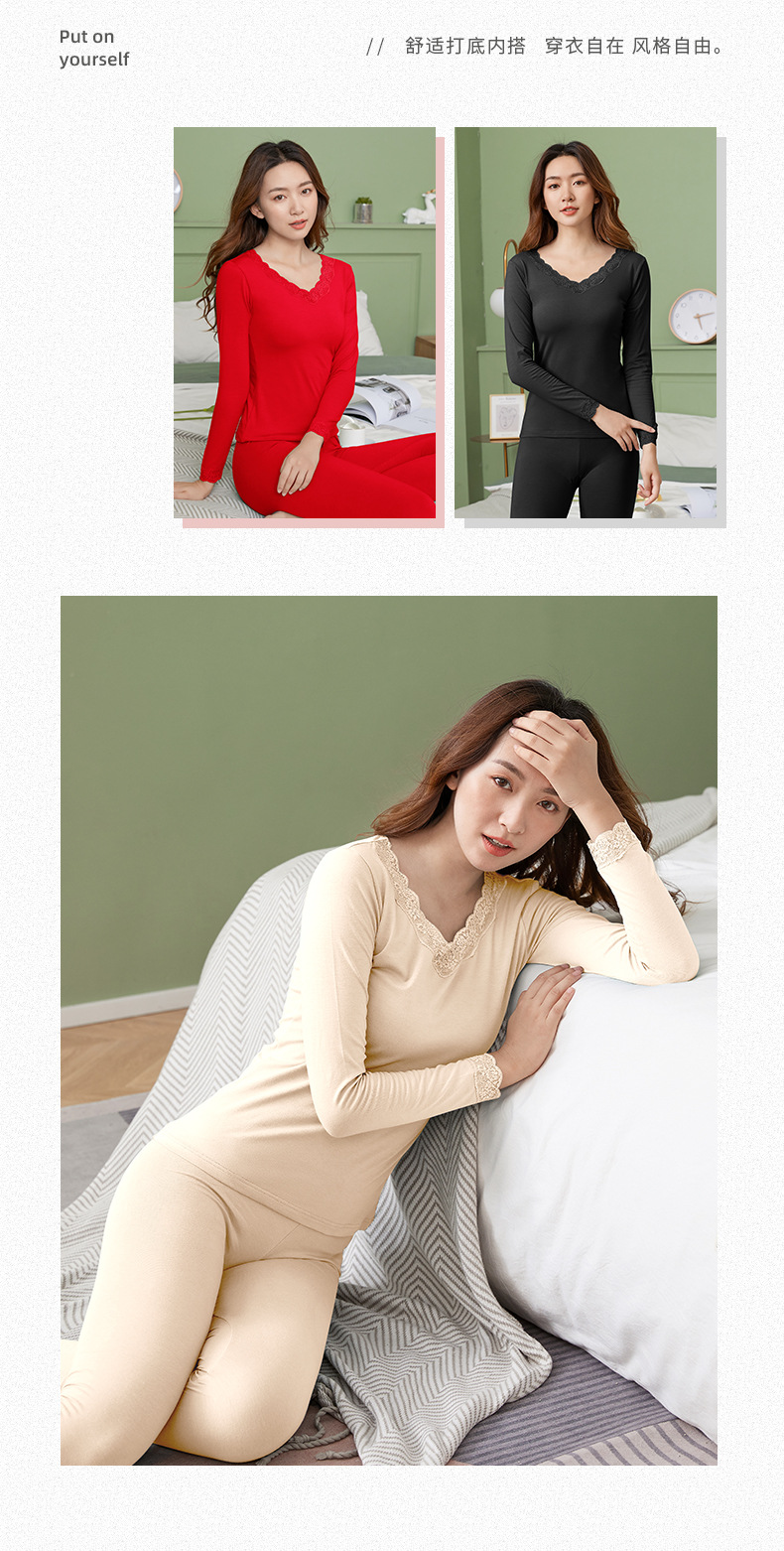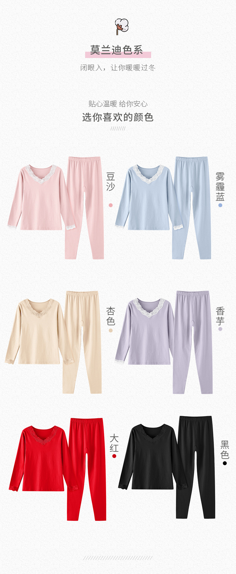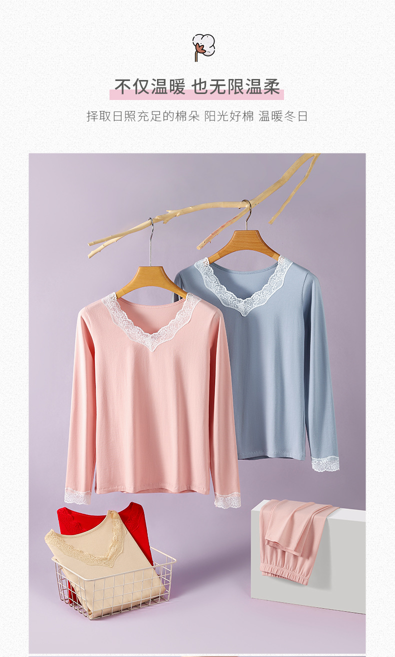Осенний и зимний хлопчатобумажный кружевной осенний костюм для женщин комплект термобелья большой размер