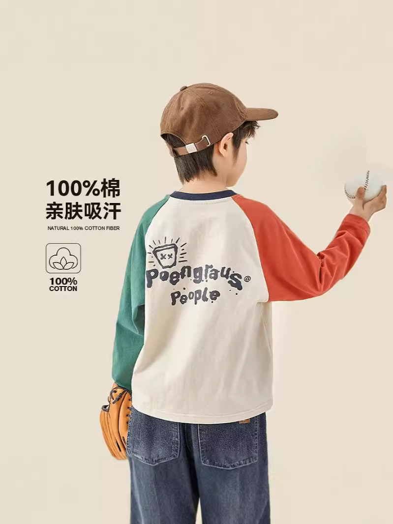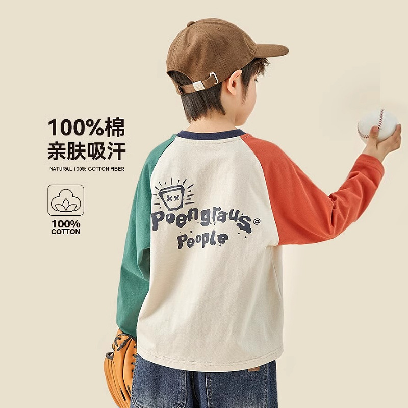 Детская футболка из чистого хлопка, весенне-осенняя повседневная детская толстовка реглан с длинными рукавами для мальчиков среднего и большого размера, топ из 100% хлопка