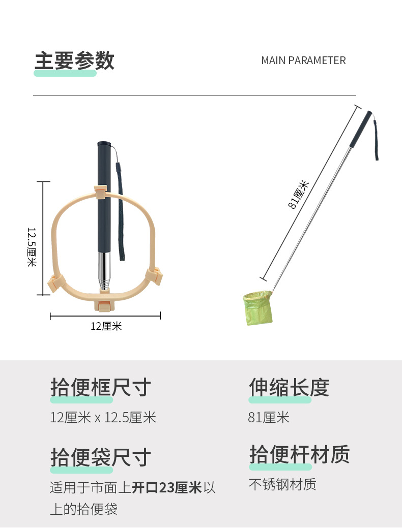 Устройство для сбора собачьих экскрементов для использования на улице, выдвижное и портативное.