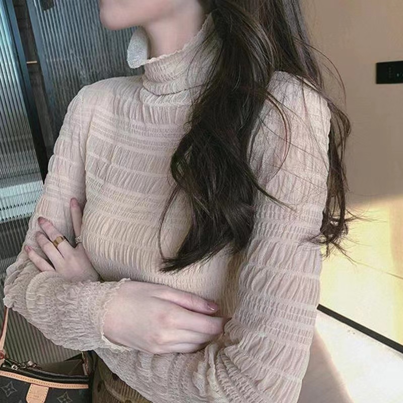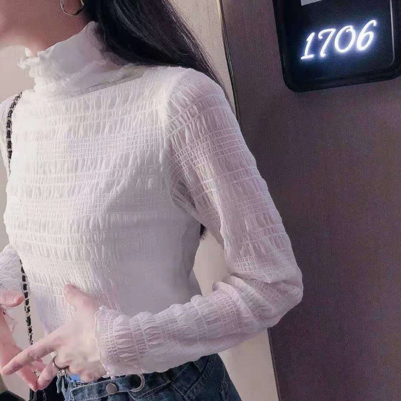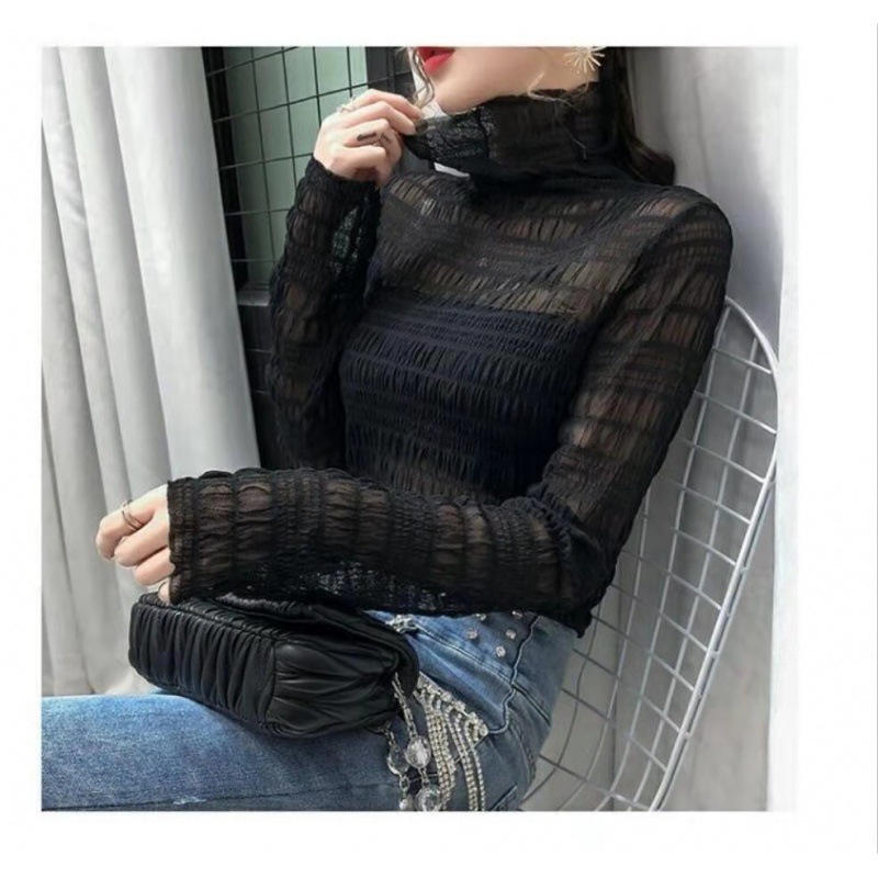 泡泡蕾丝打底衫 蕾丝打底衫 网纱打底衫