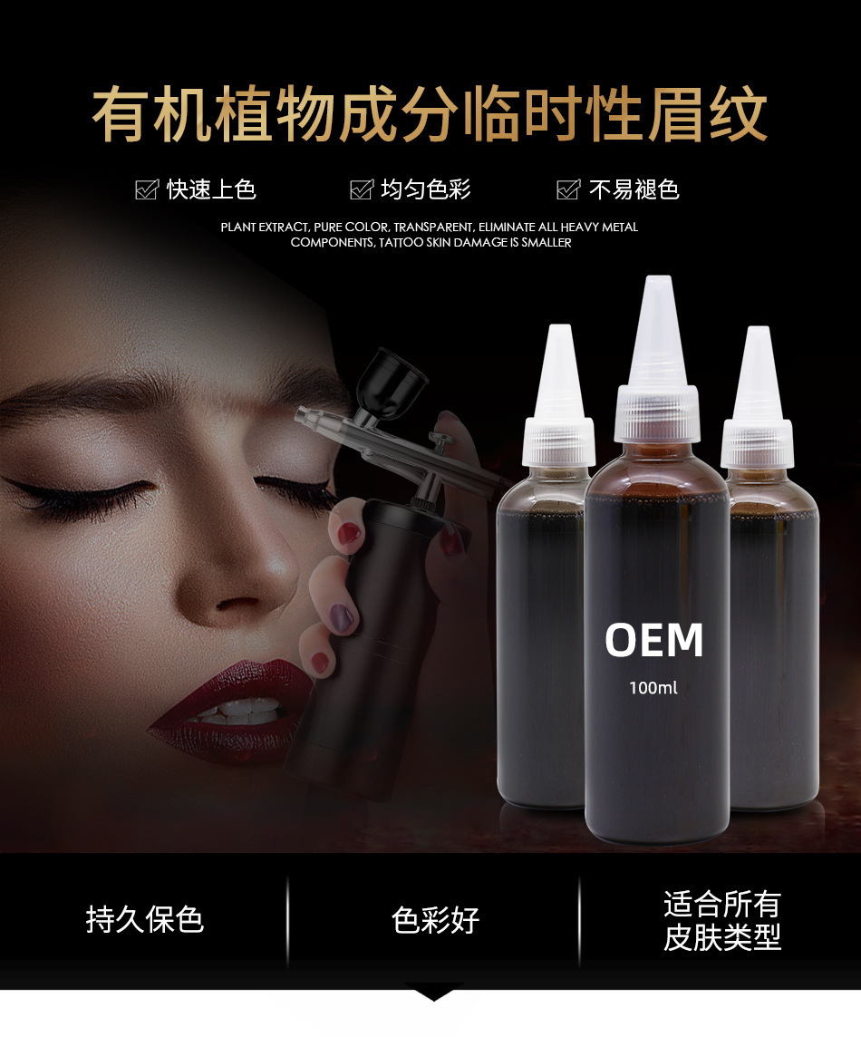 Пигмент для татуажа бровей, 6 цветов, фиксирующая жидкость для бровей, набор пигментов для аппарата-спрея, прямые продажи с завода, OEM