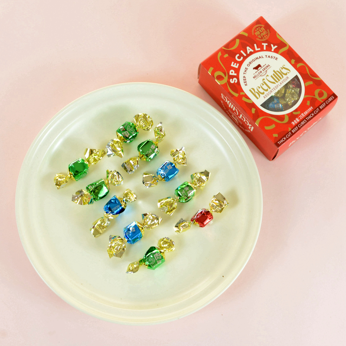 Кубики говядины Weikouai (разные вкусы), подарок на свадьбу и день рождения, закуски, красные, 25 г/примерно 10 штук