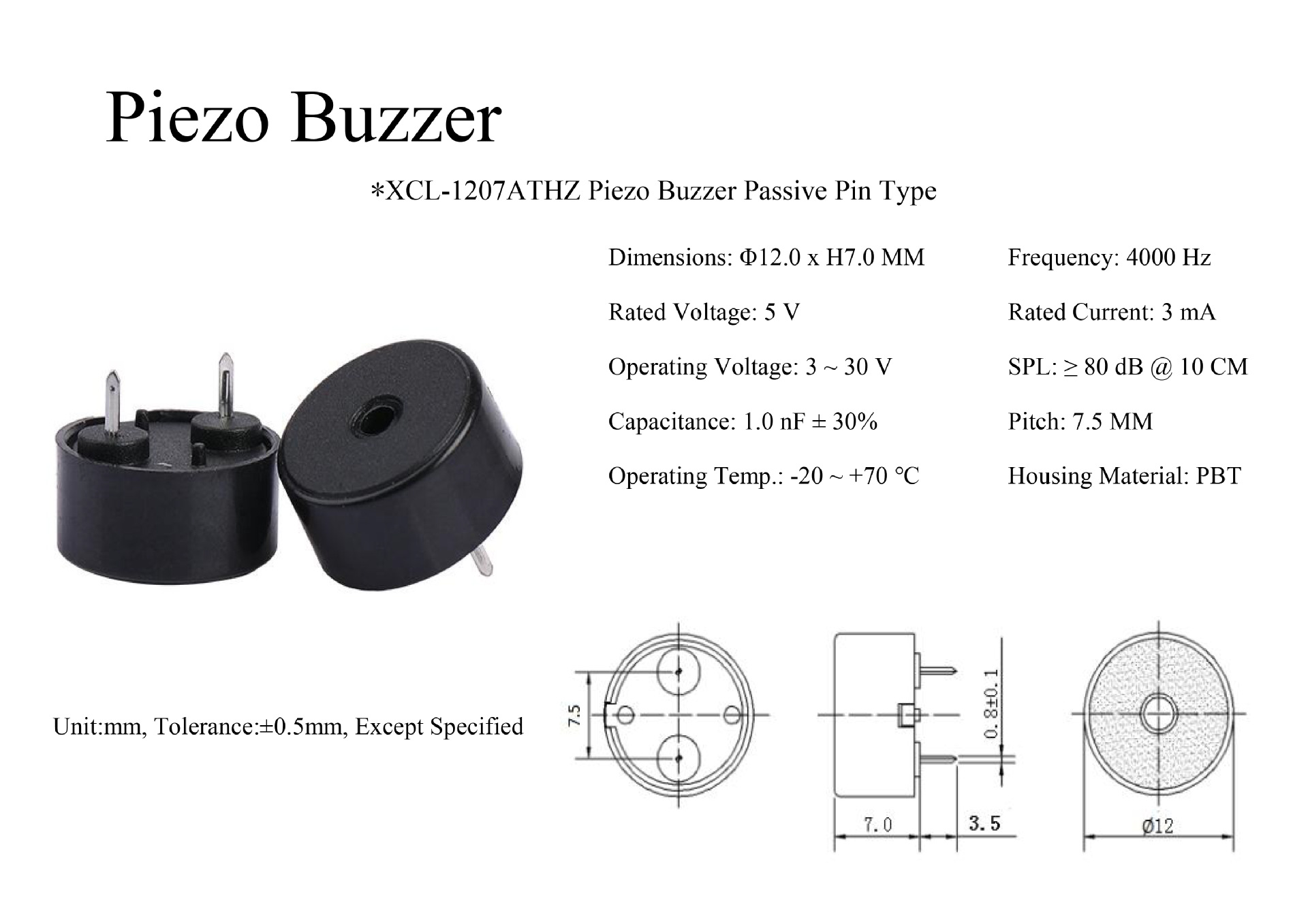 Пассивный пьезоэлектрический зуммер 1207 с пружинным контактом, 5В, шаг выводов 7,5 мм, для управления бытовой техникой, специальный зуммер.