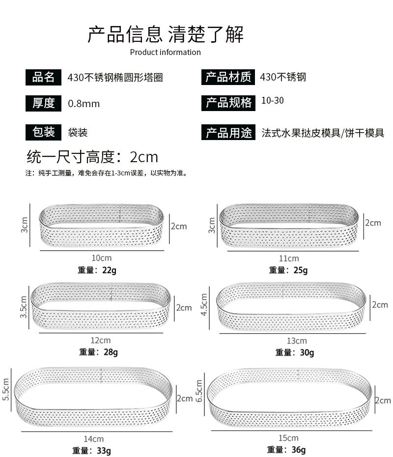 430 Нержавеющая сталь Французский перфорированная башня кольцо овальный с отверстием для пирога торт муссовый круг сырная форма