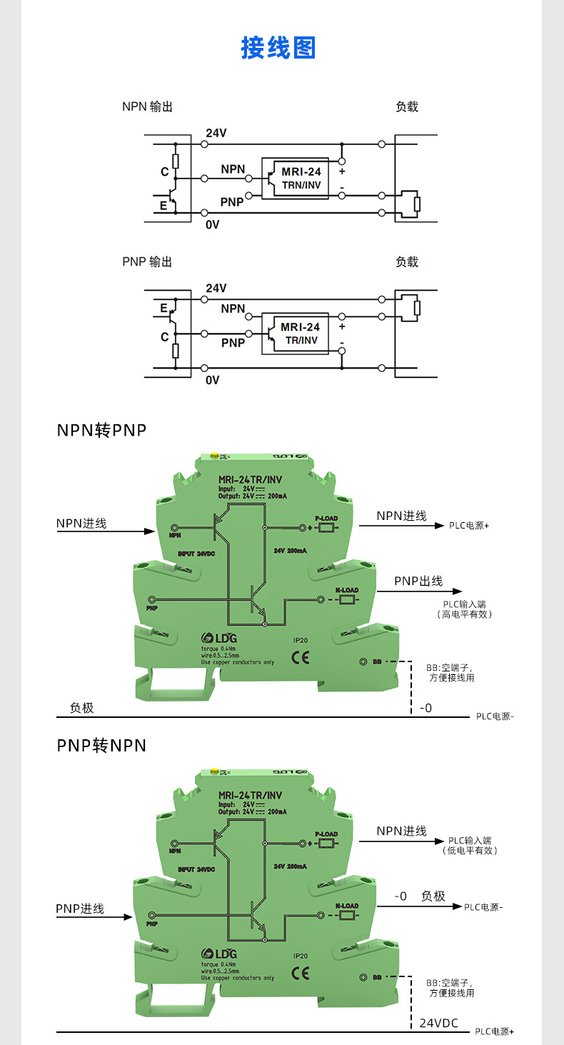 Модуль преобразования сигнала MRI-24TR/INV NPN в PNP, усилитель-датчик высокого и низкого уровня для ПЛК