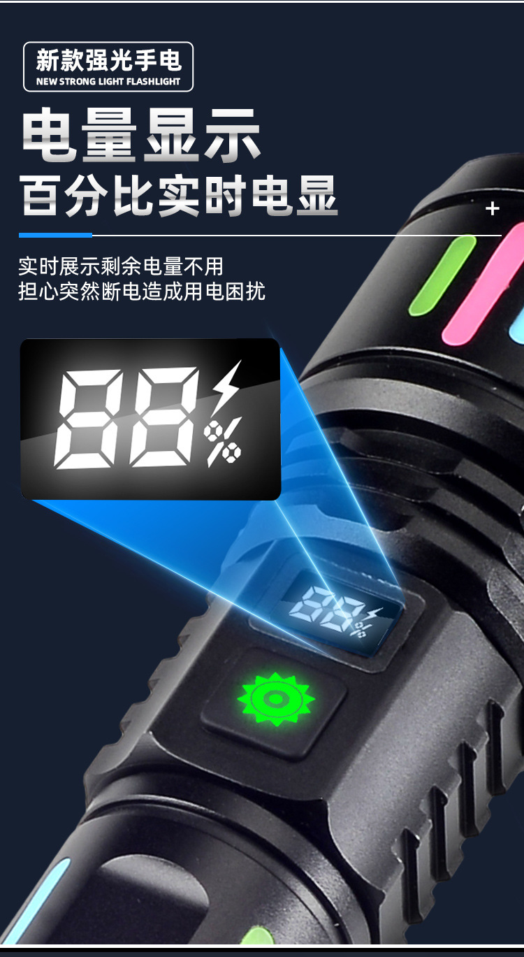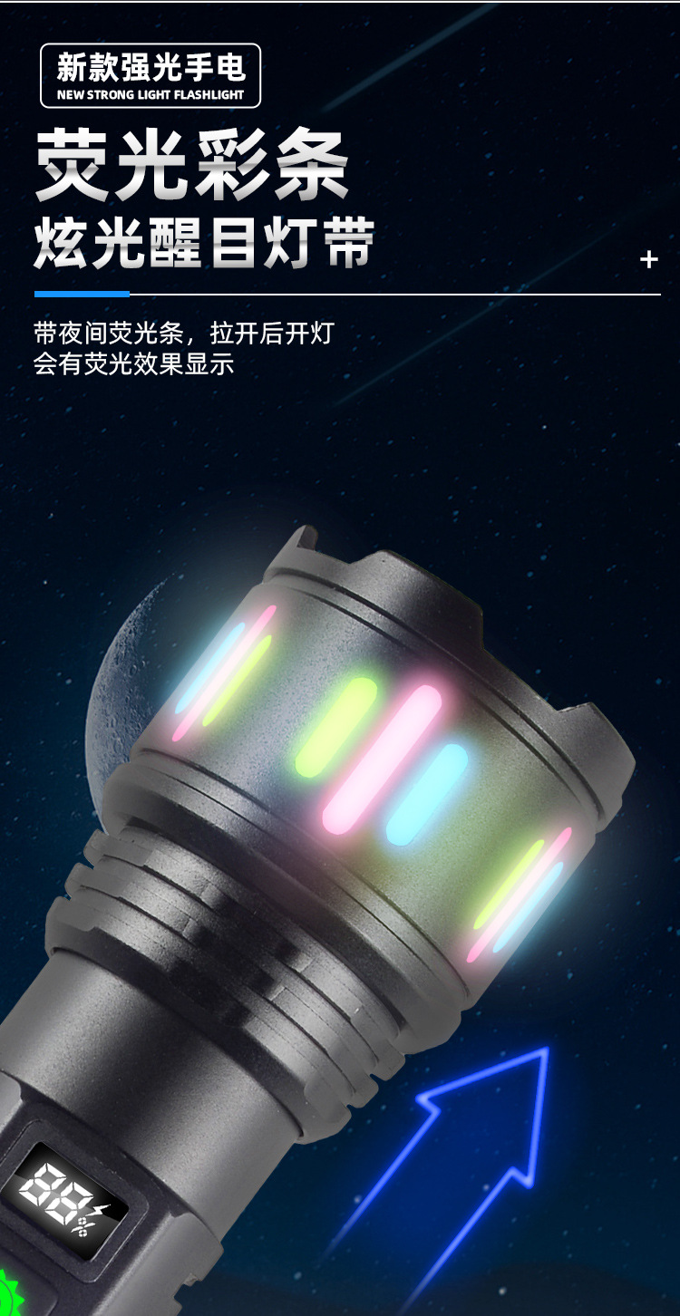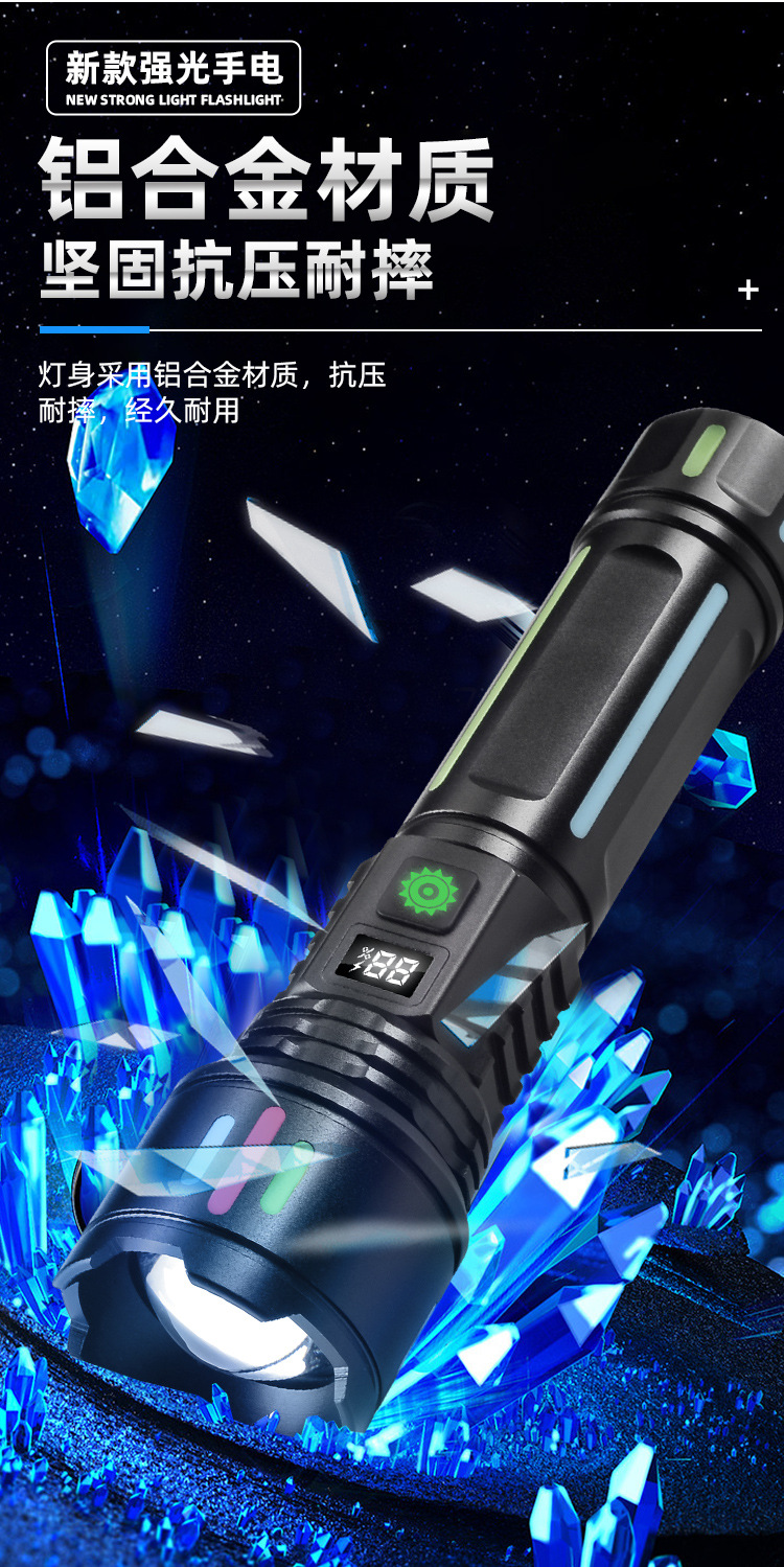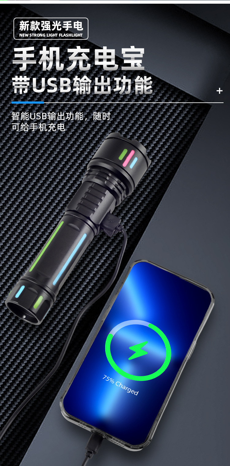 Новый уличный многофункциональный светодиодный фонарик с сильным светом и длительным сроком службы батареи USB перезаряжаемый портативный белый лазерный флуоресцентный фонарик