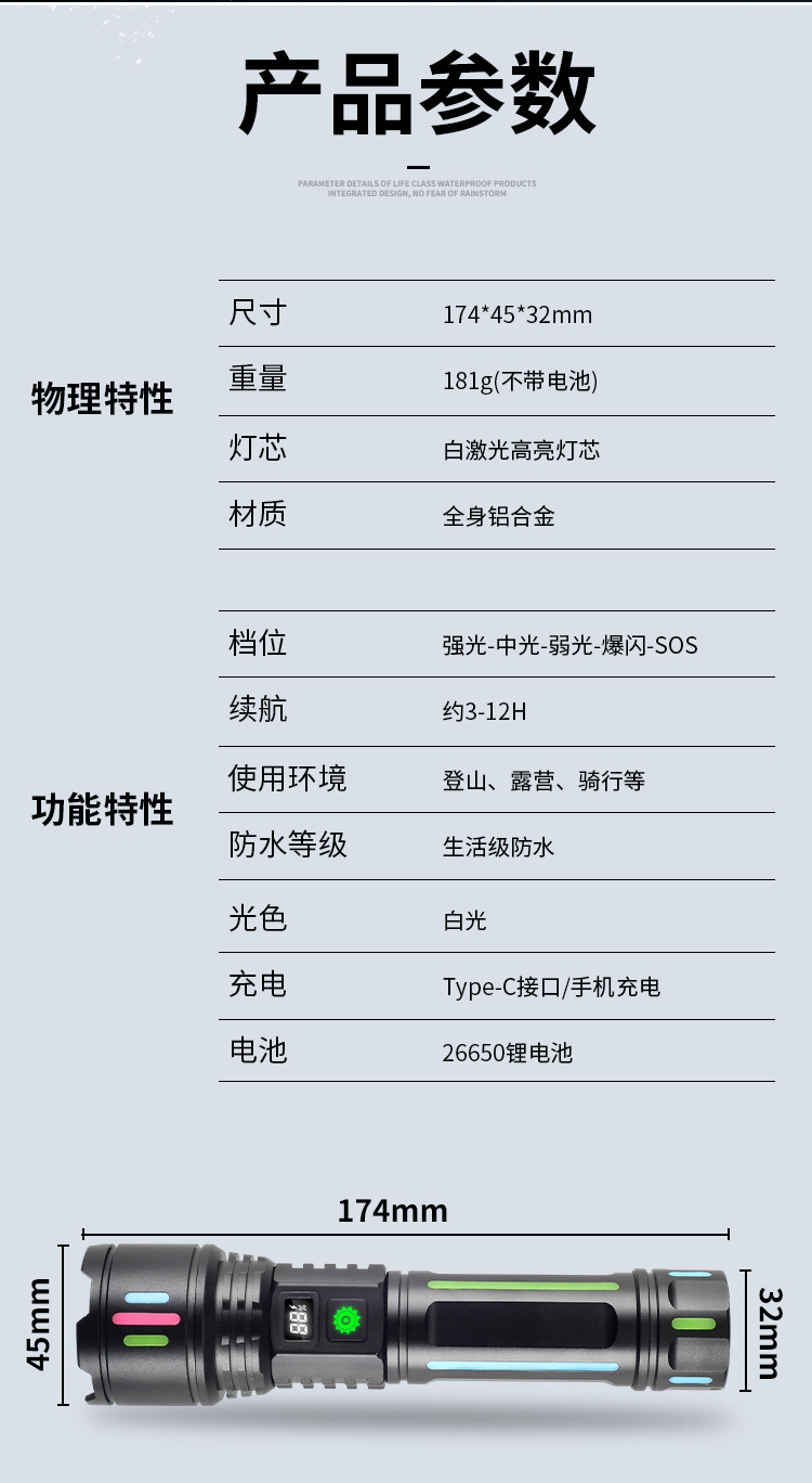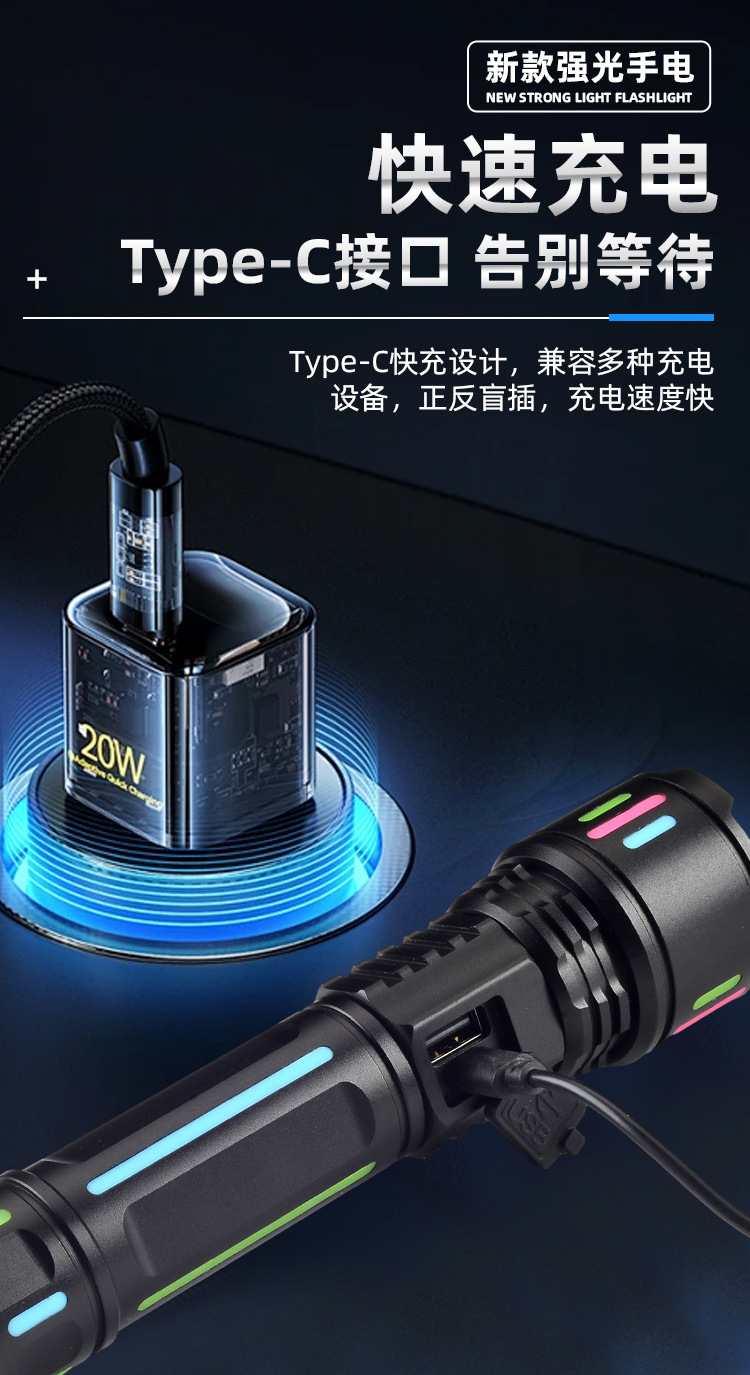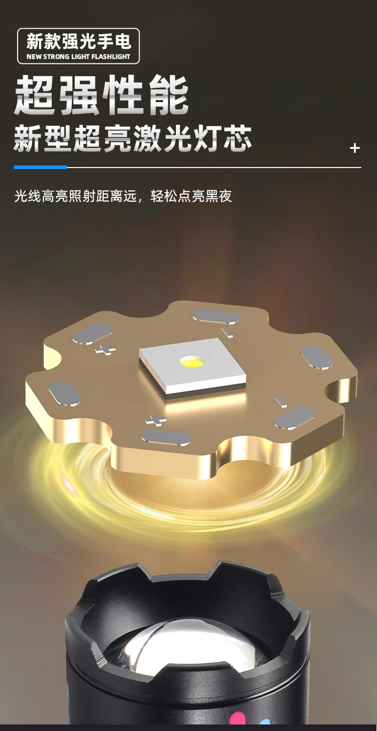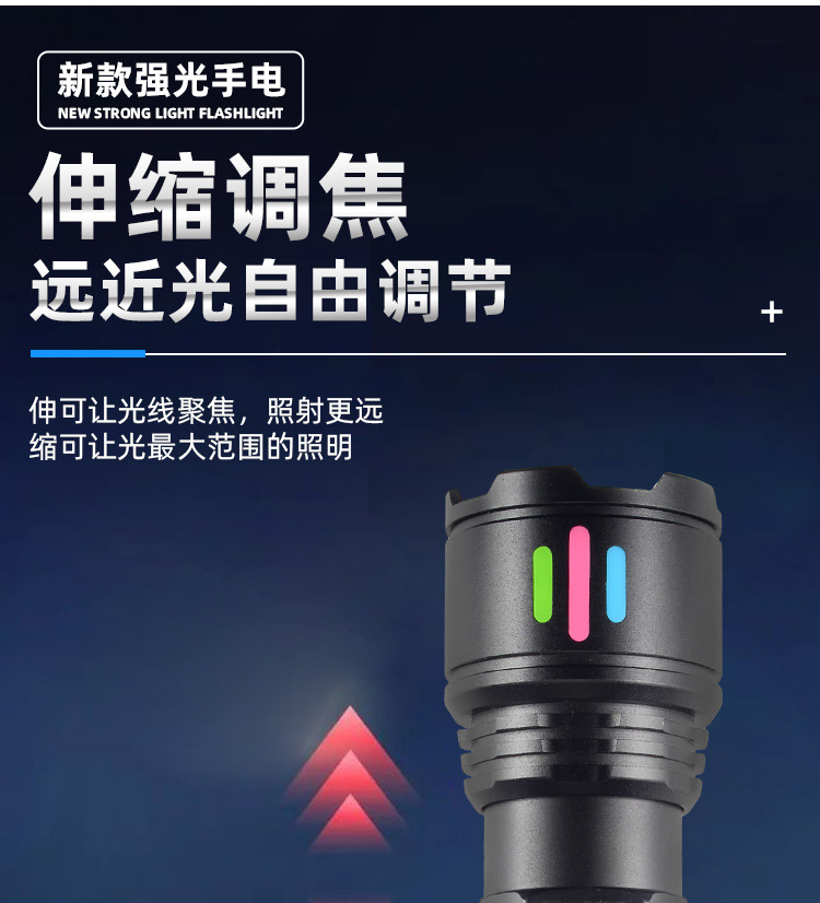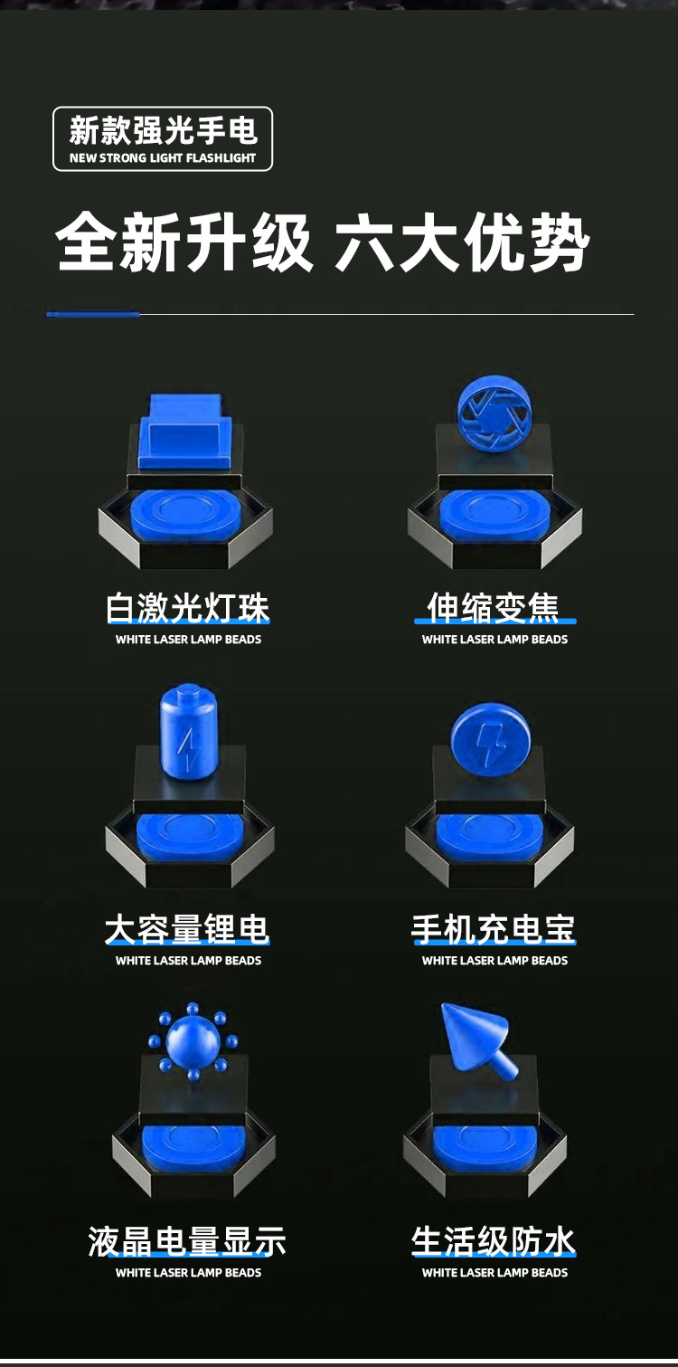 Новый уличный многофункциональный светодиодный фонарик с сильным светом и длительным сроком службы батареи USB перезаряжаемый портативный белый лазерный флуоресцентный фонарик