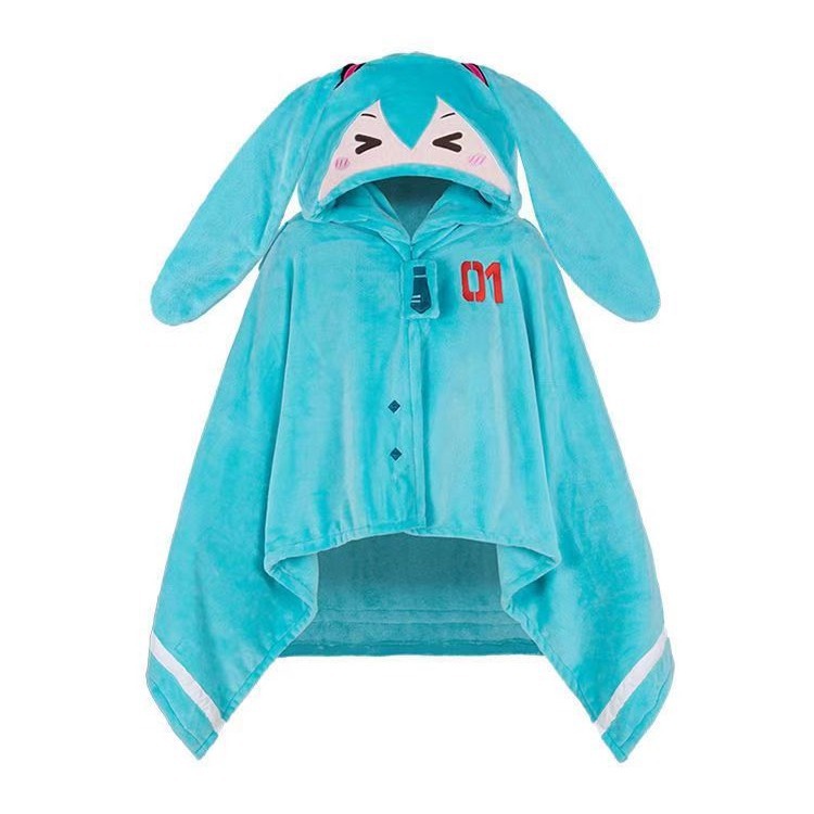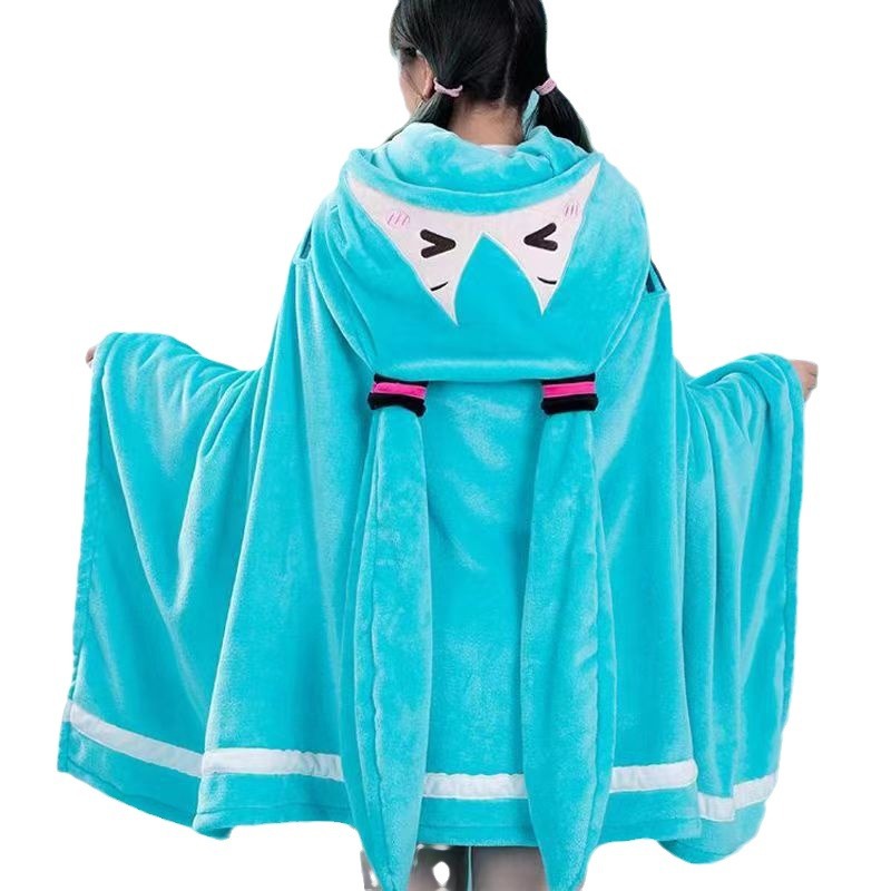 Оптовая продажа, плащ для девочек Hatsune Miku, милый маленький плащ с капюшоном из мультфильма, фланелевое теплое одеяло с кондиционером, обеденный перерыв