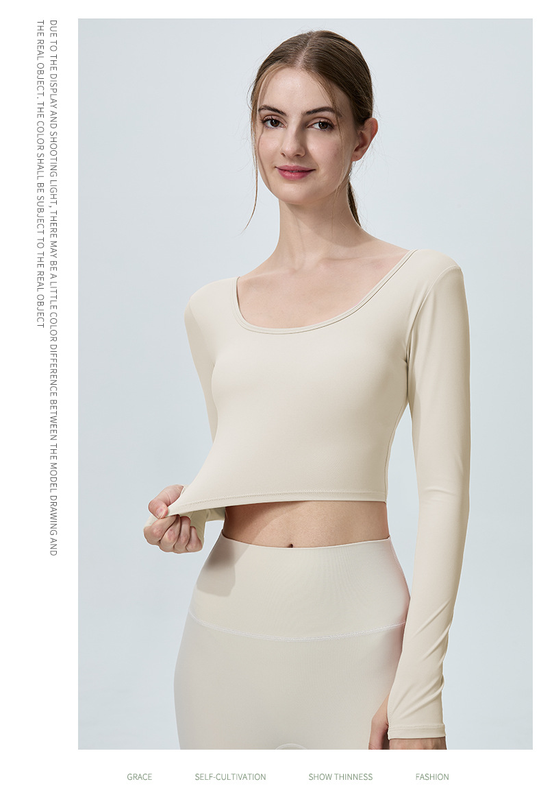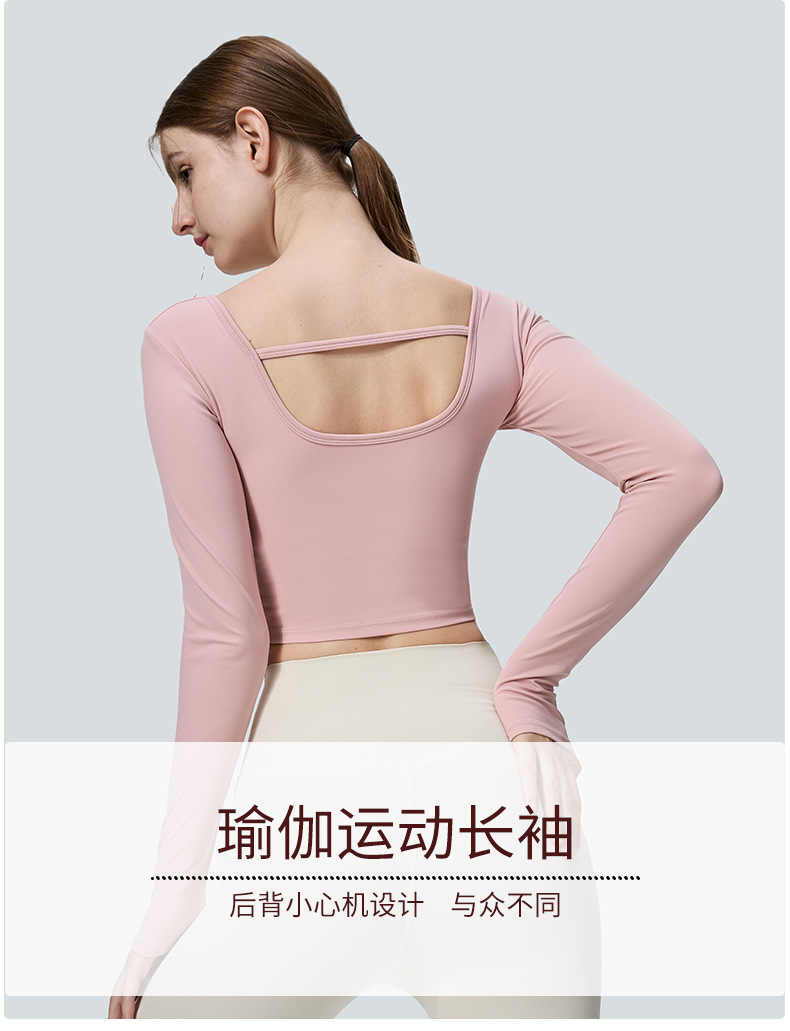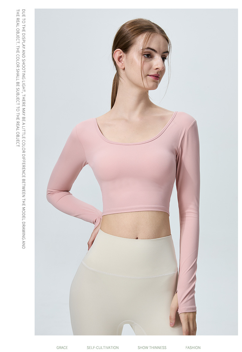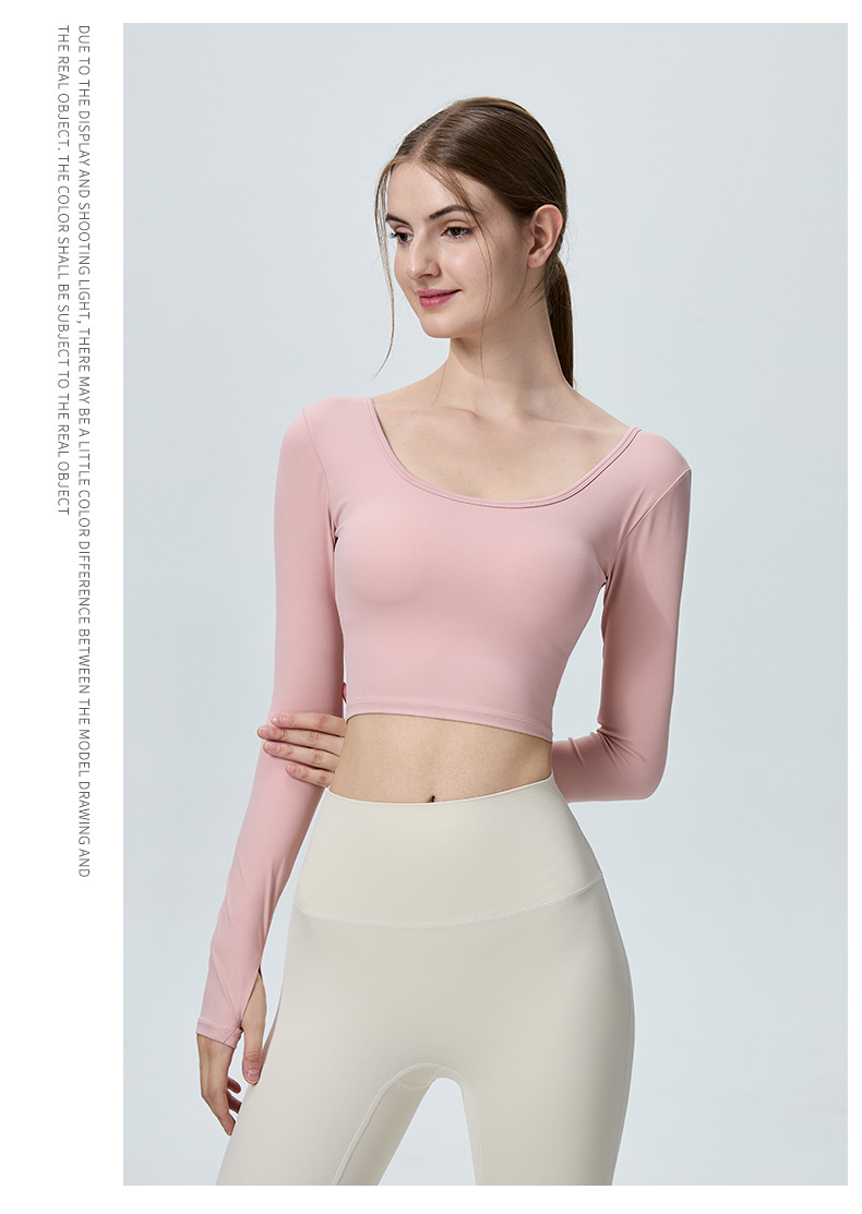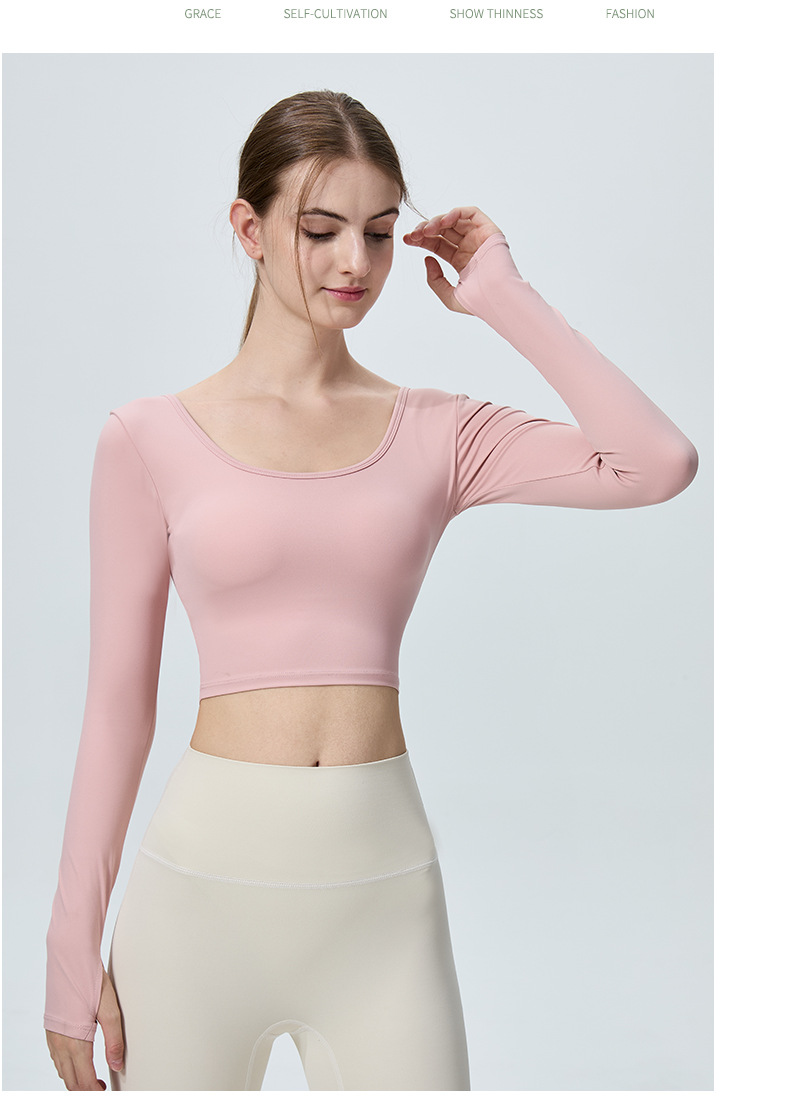 Спортивный топ высокого уровня женский тонкий костюм для йоги с нагрудными подушками для бега фитнес с длинными рукавами U-образная футболка на спине