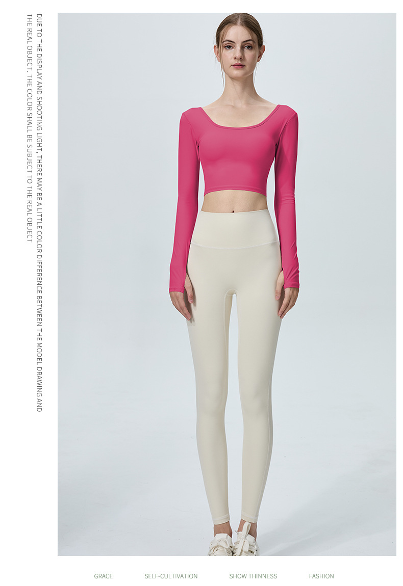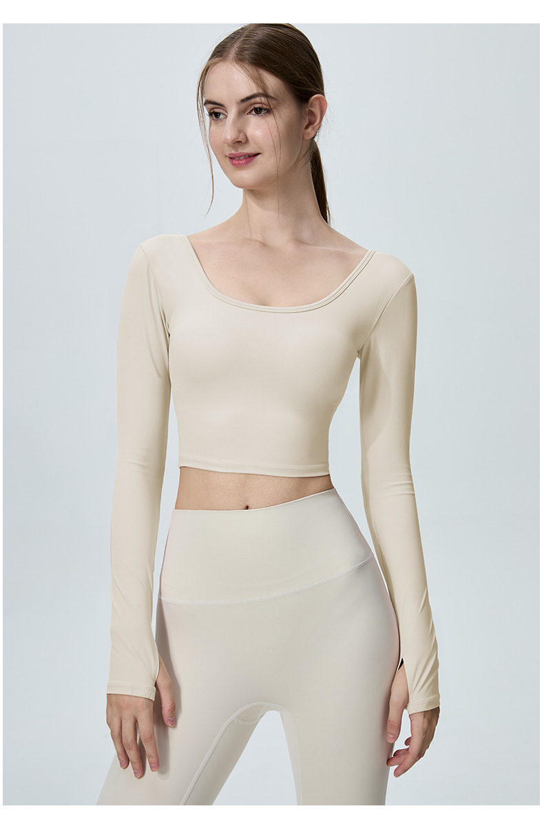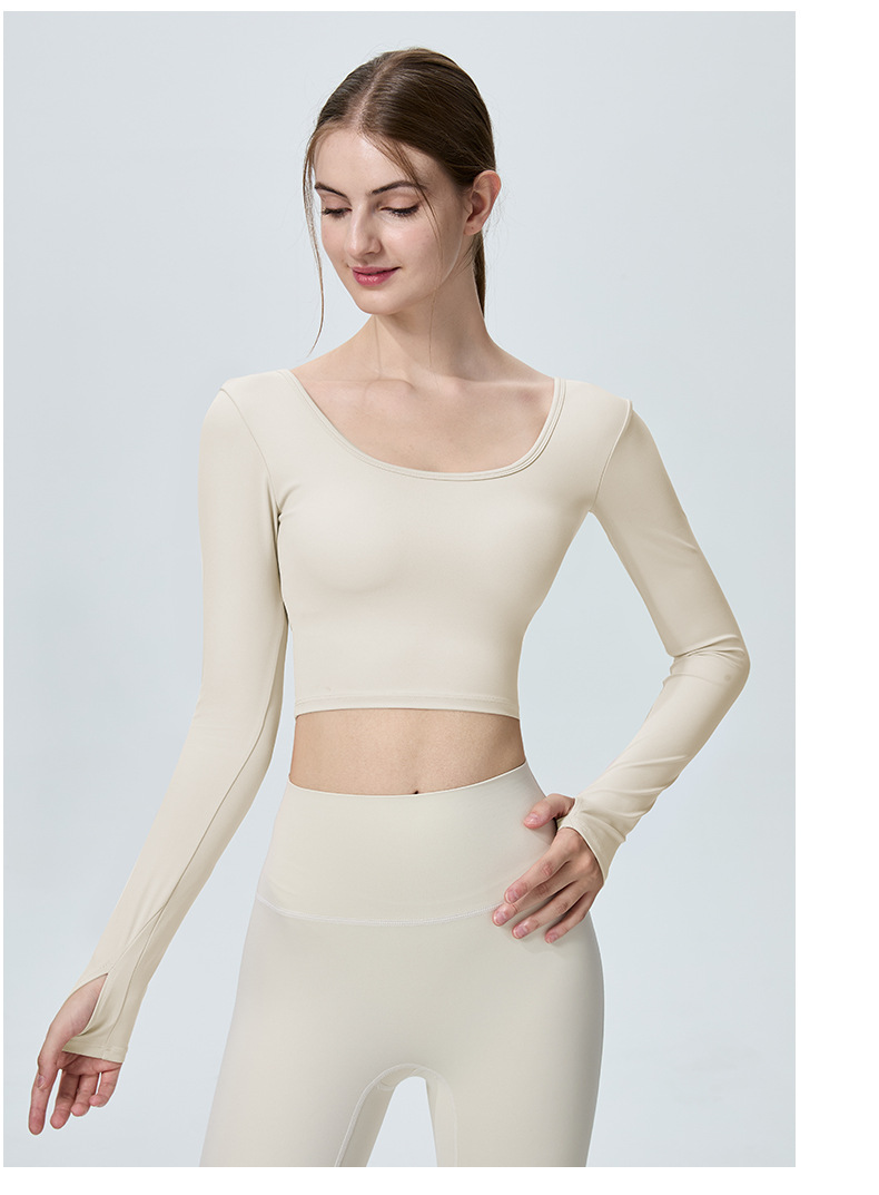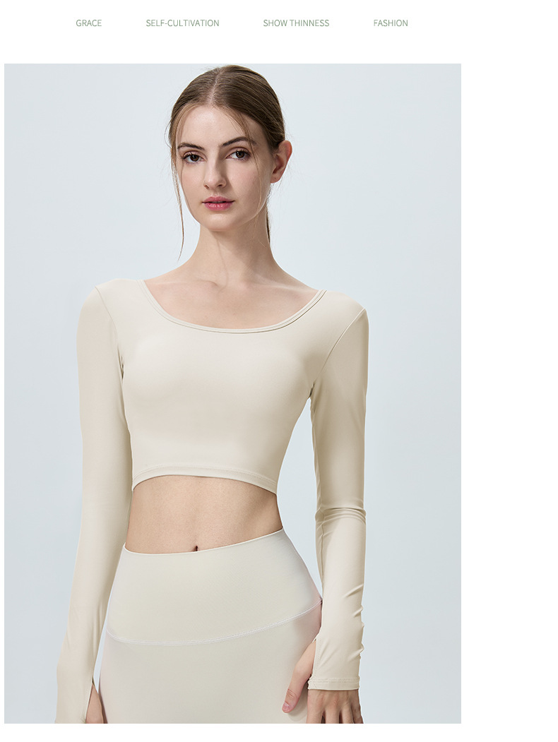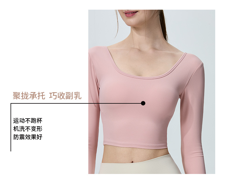 Спортивный топ высокого уровня женский тонкий костюм для йоги с нагрудными подушками для бега фитнес с длинными рукавами U-образная футболка на спине
