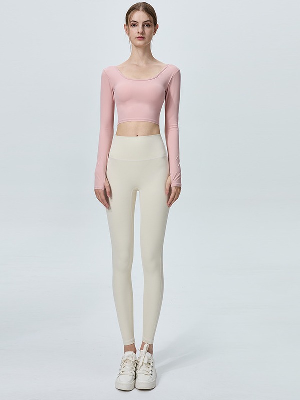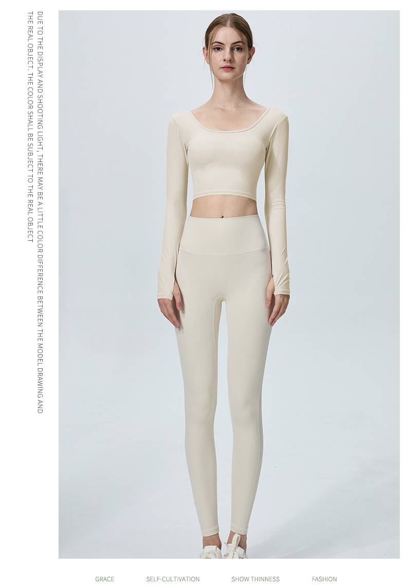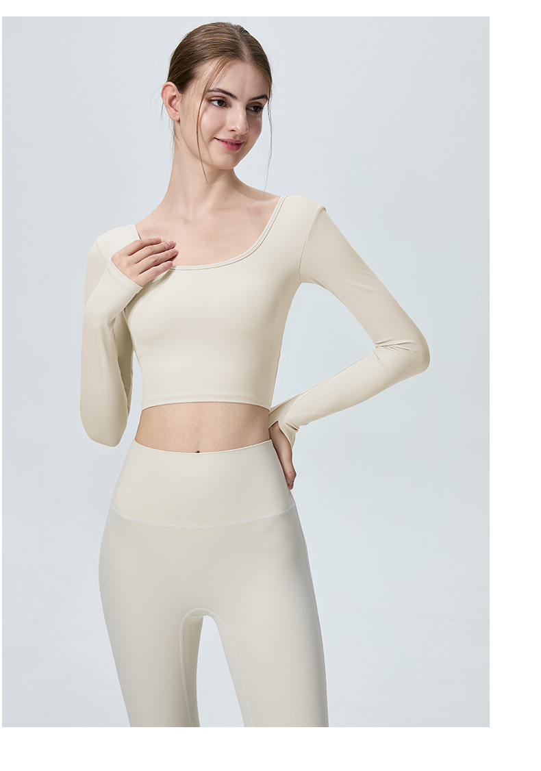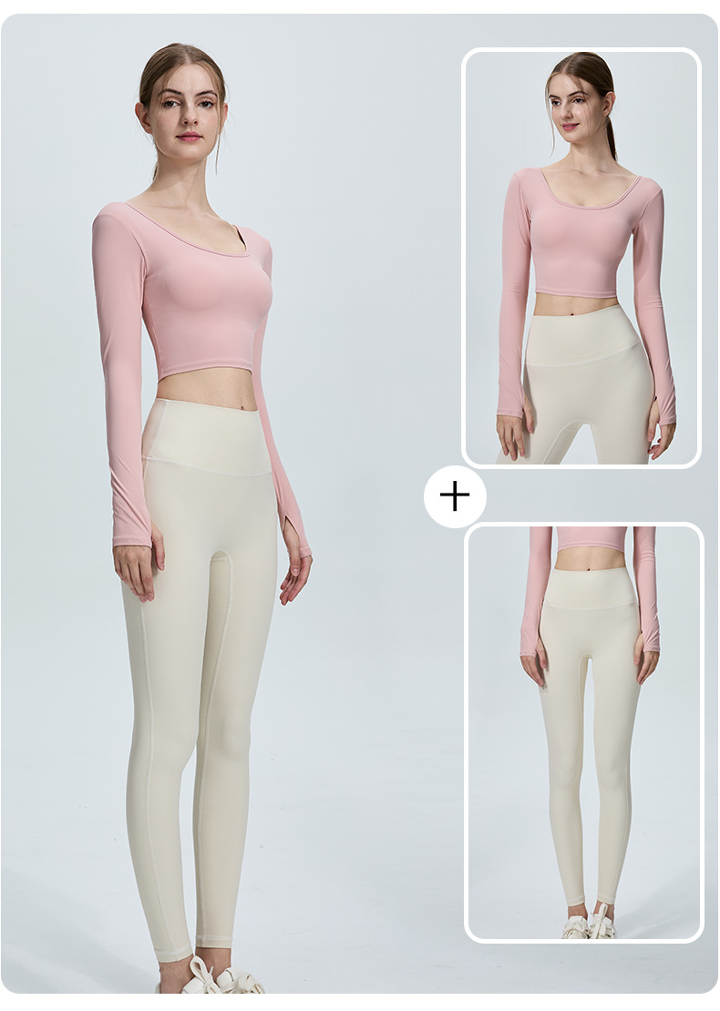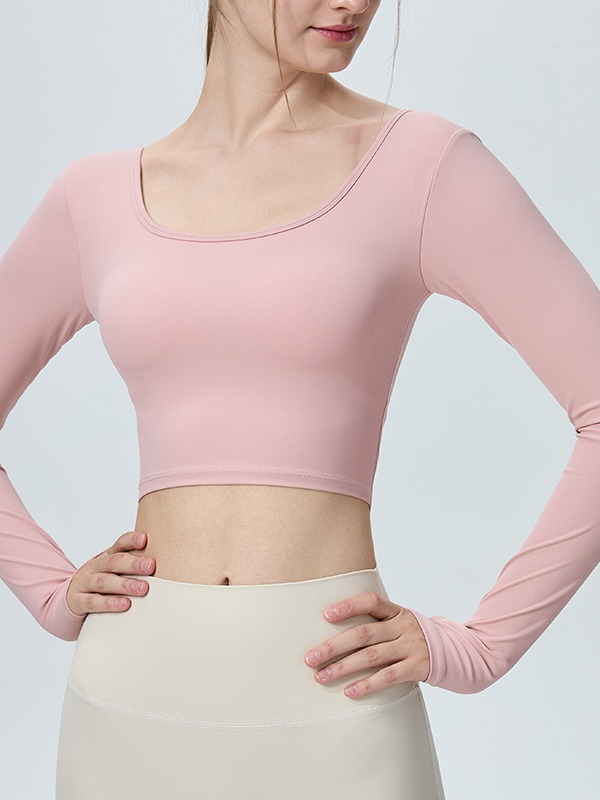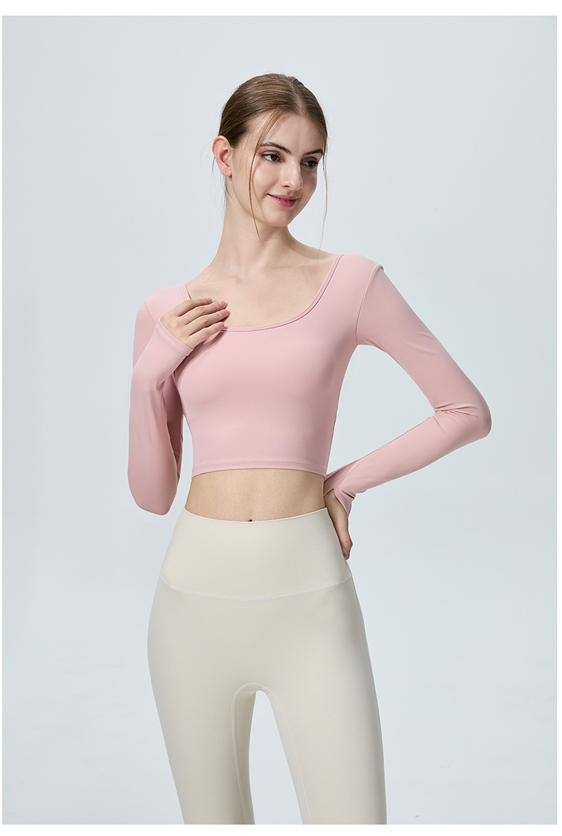 Спортивный топ высокого уровня женский тонкий костюм для йоги с нагрудными подушками для бега фитнес с длинными рукавами U-образная футболка на спине