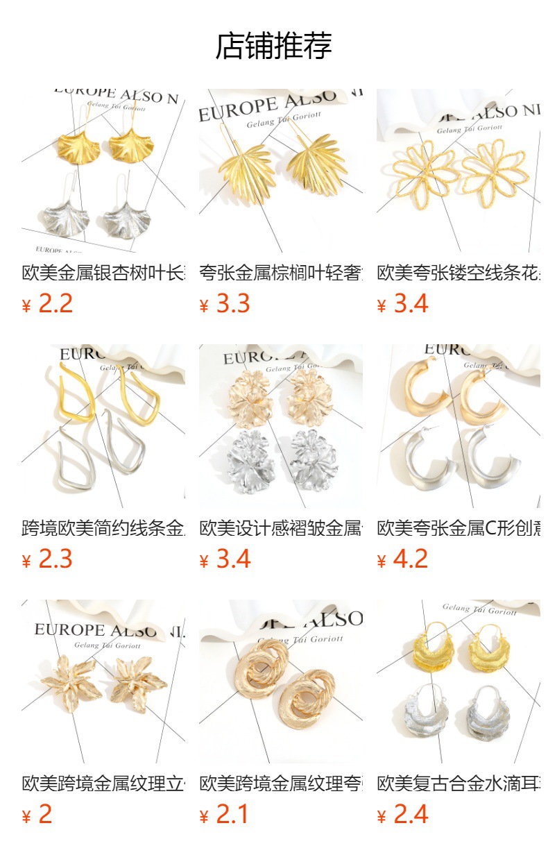 Европейский и американский тяжелый сплав текстурированный дизайн симметричный цветок дамы темперамент роскошная индивидуальность трансграничные дикие серьги